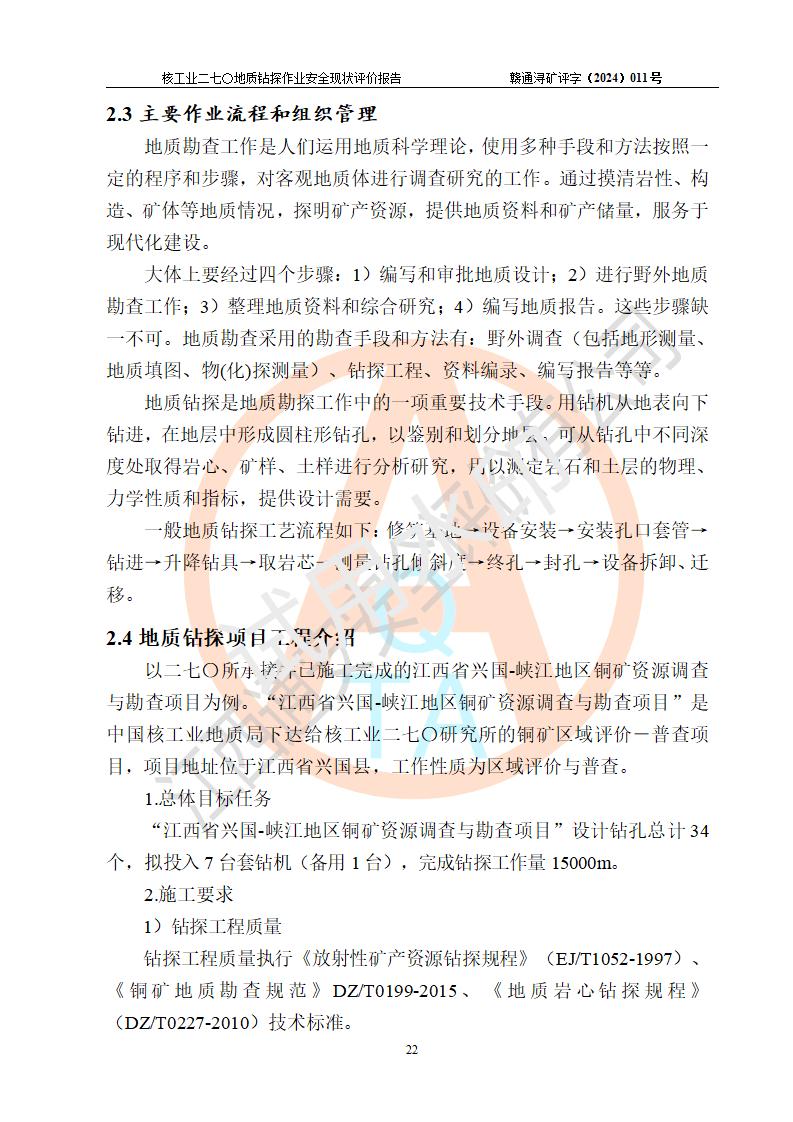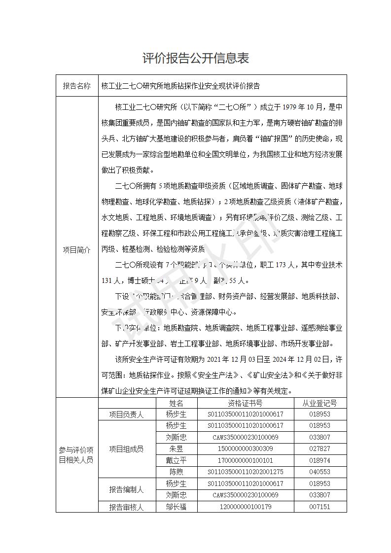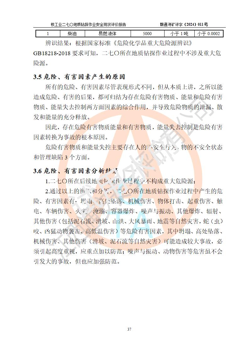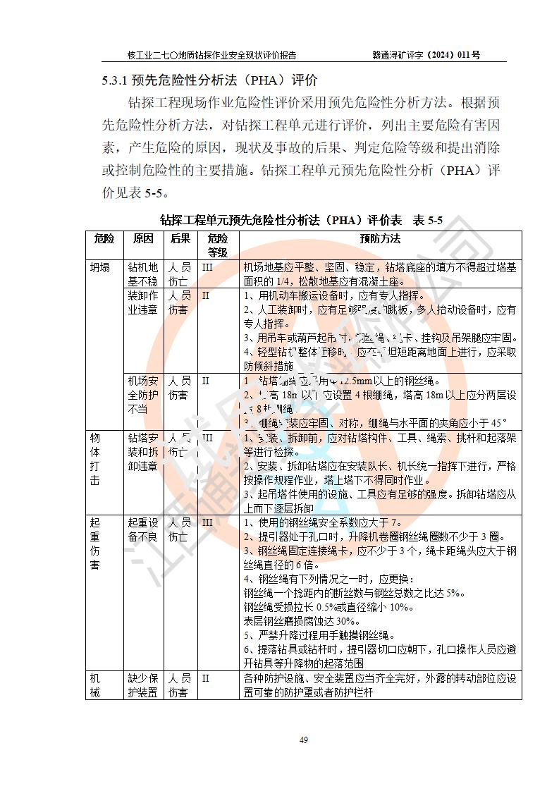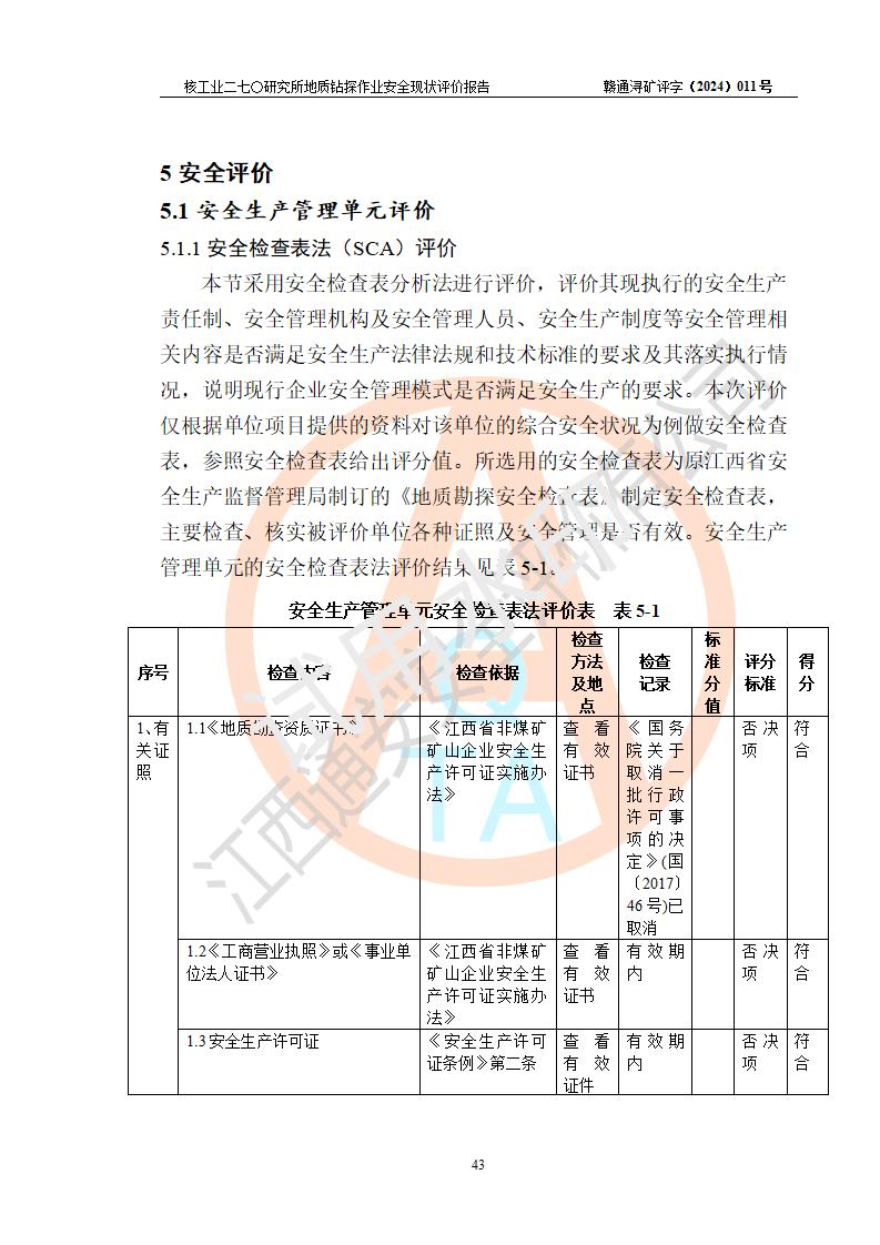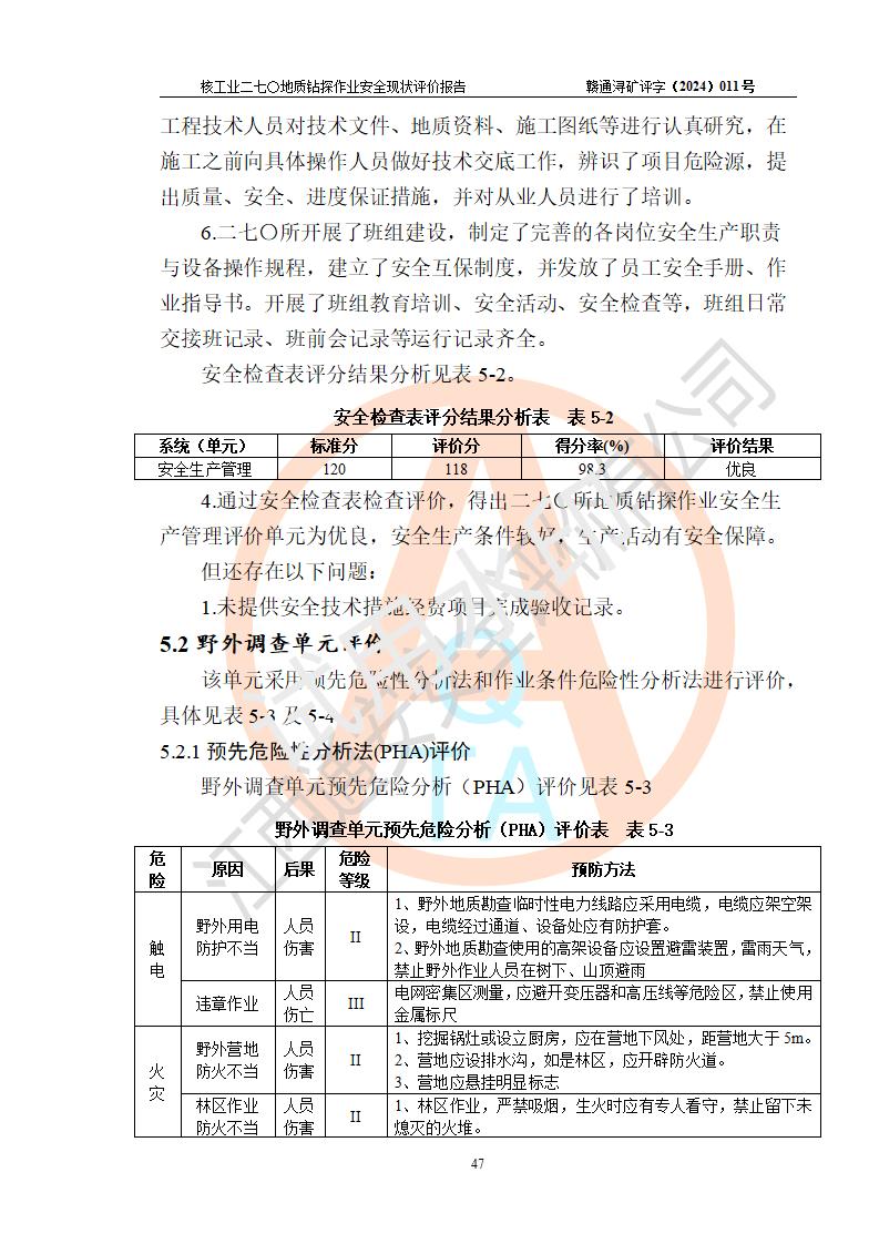 核工業(yè)二七〇研究所地質(zhì)鉆探作業(yè)安全現(xiàn)狀評價報告