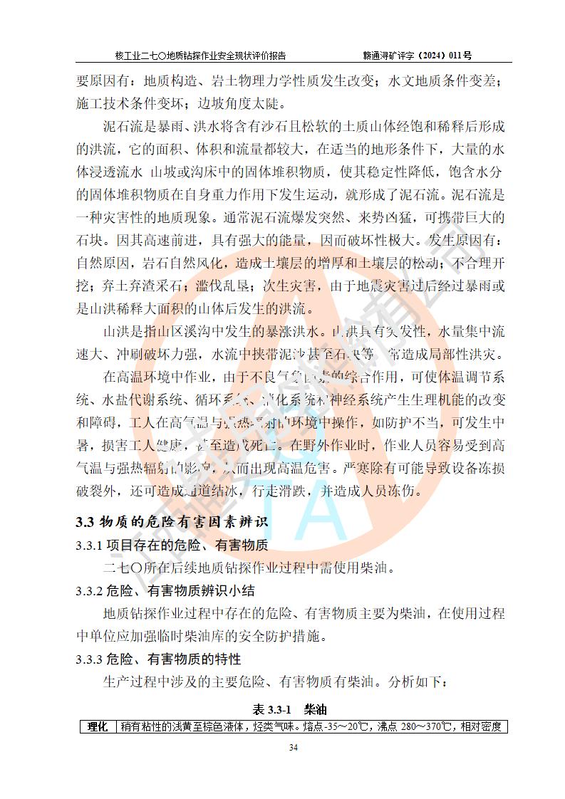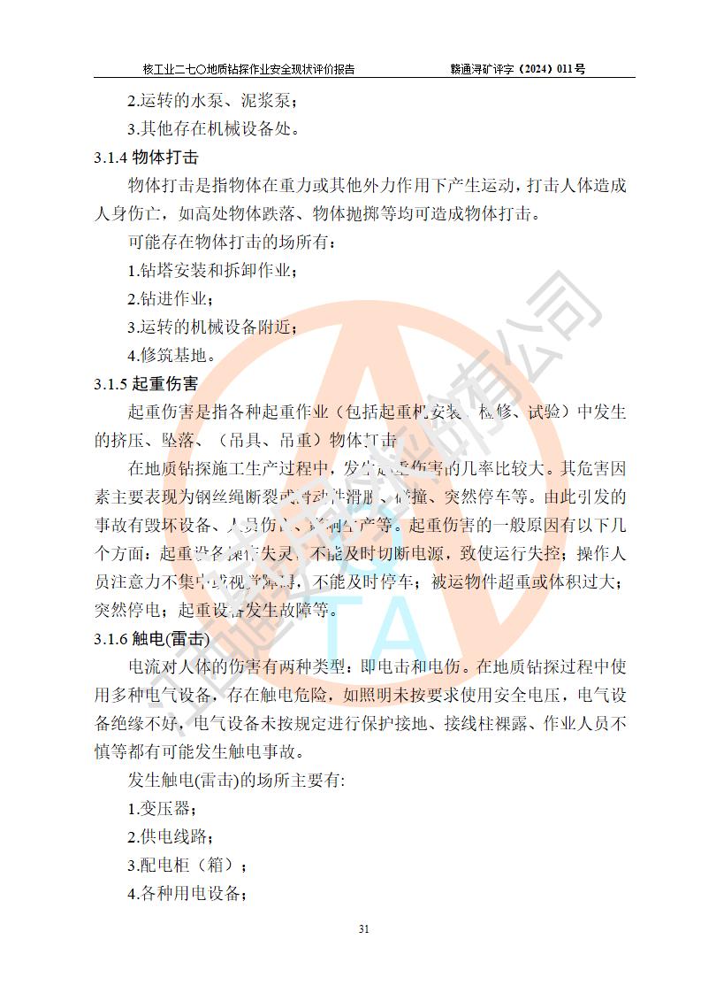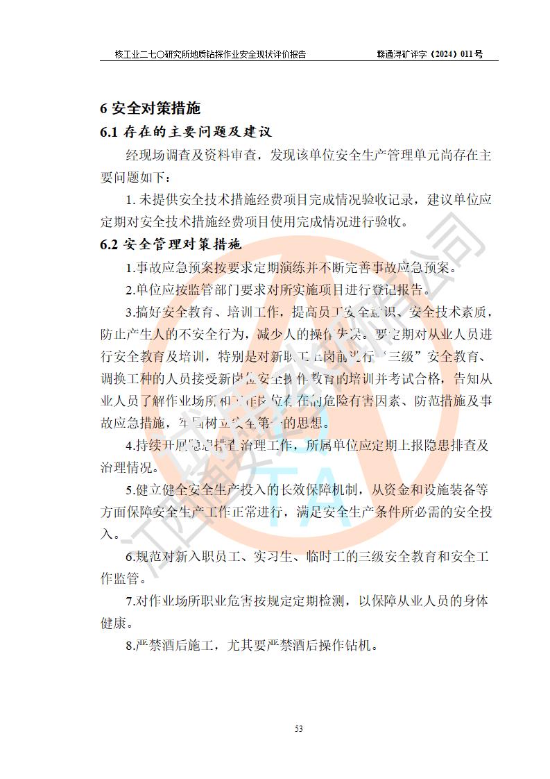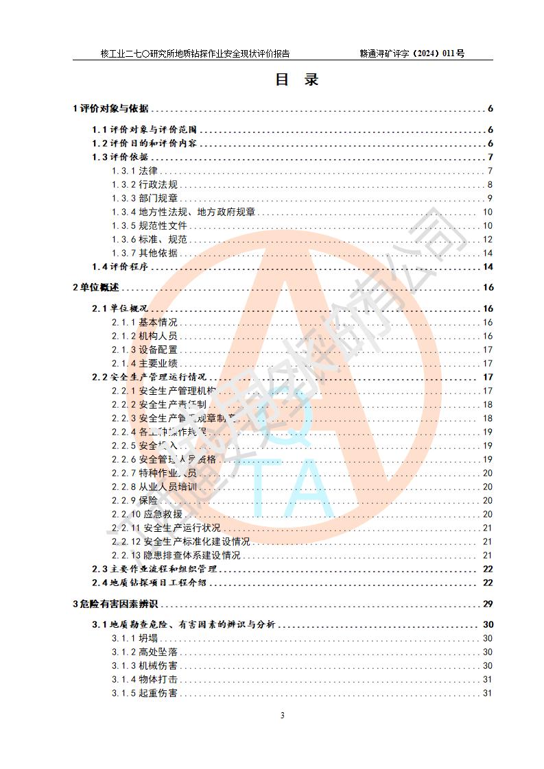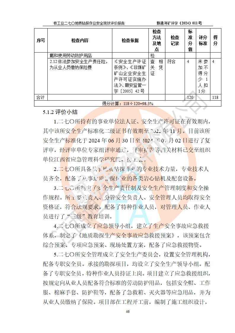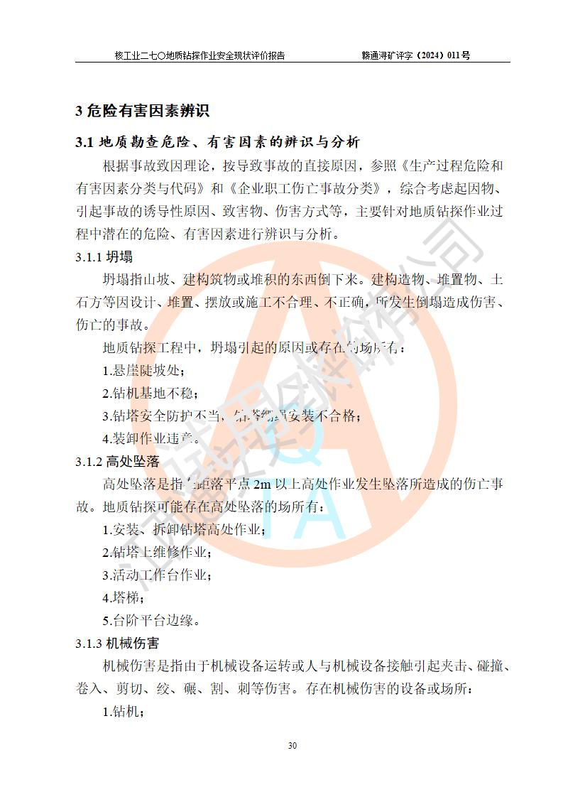 核工業(yè)二七〇研究所地質(zhì)鉆探作業(yè)安全現(xiàn)狀評價報告