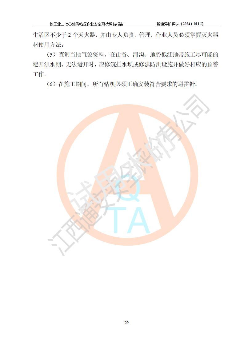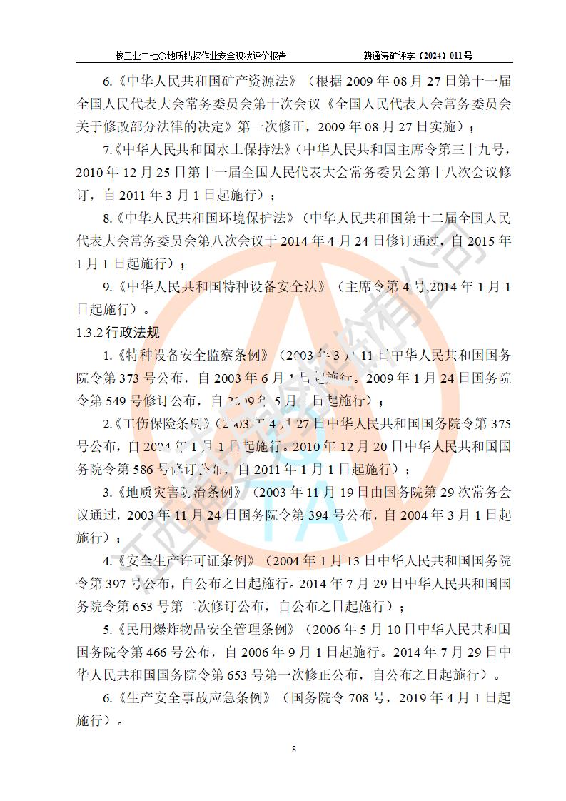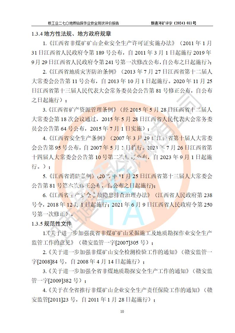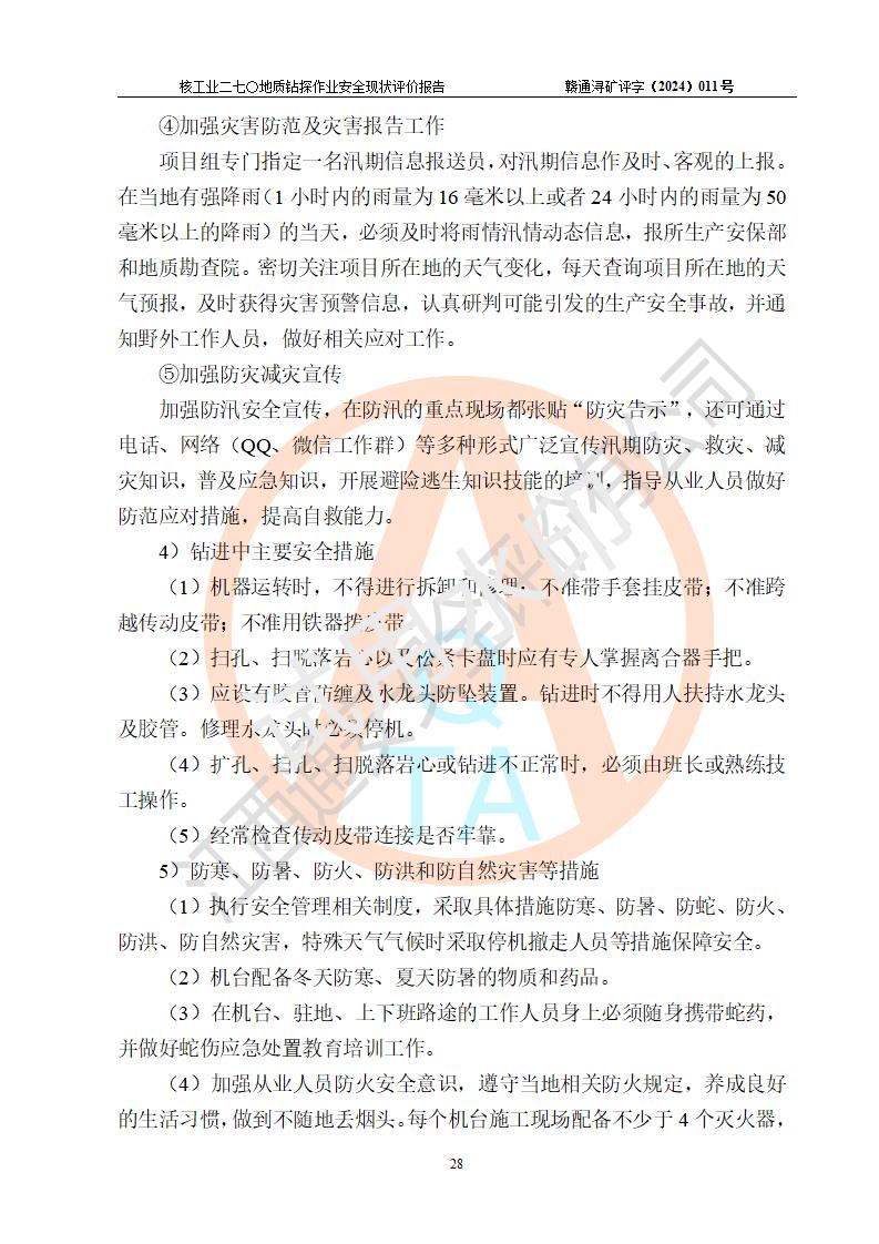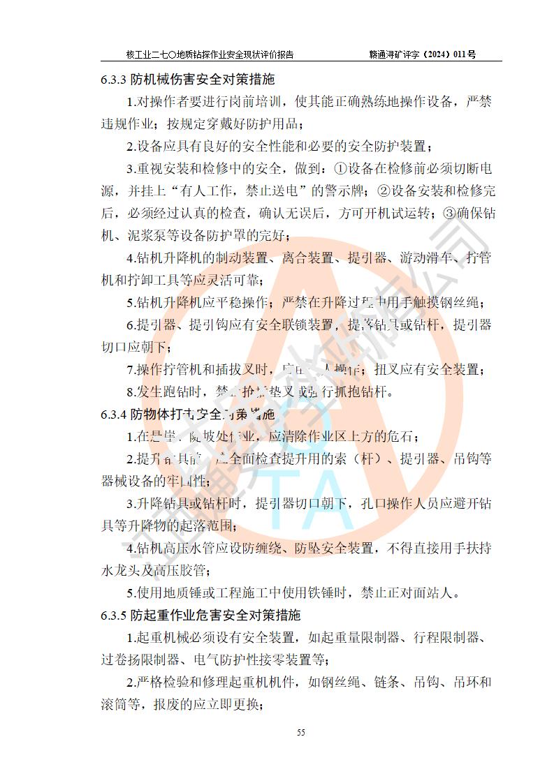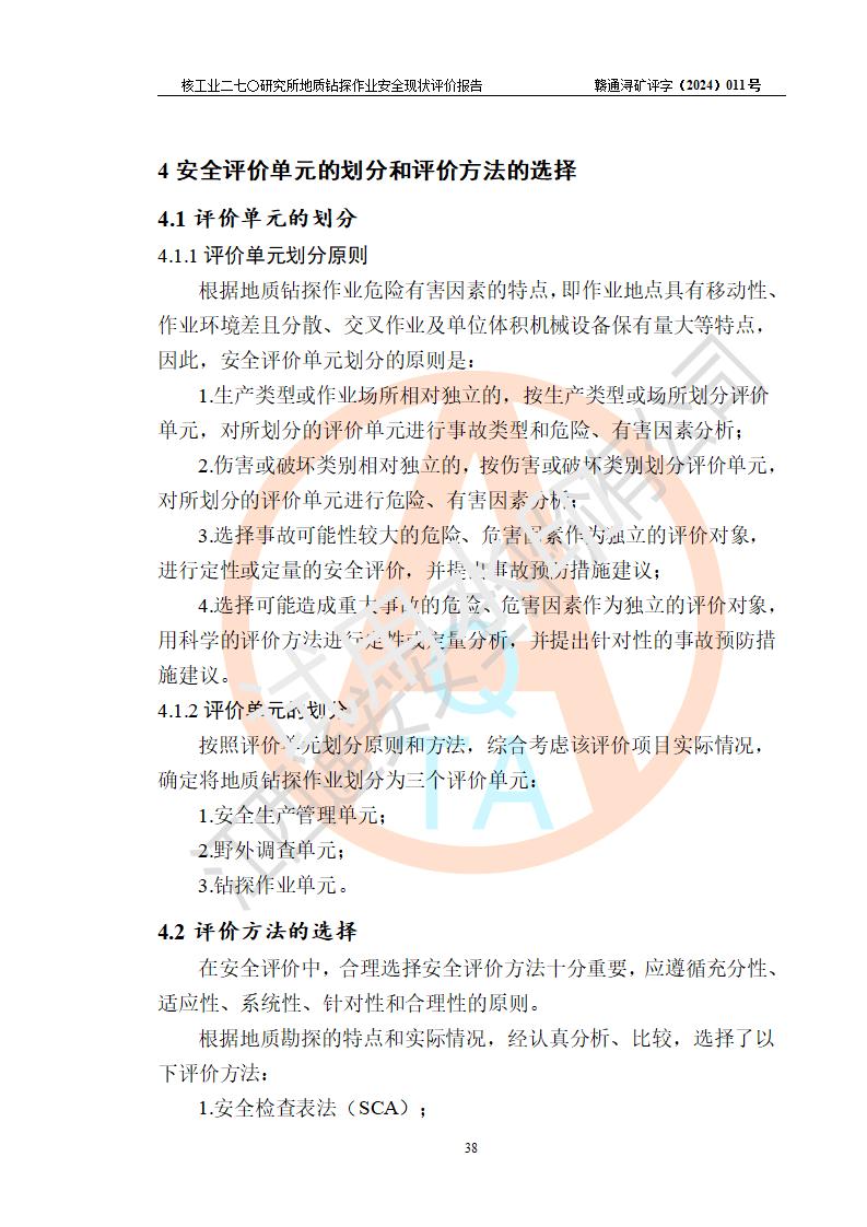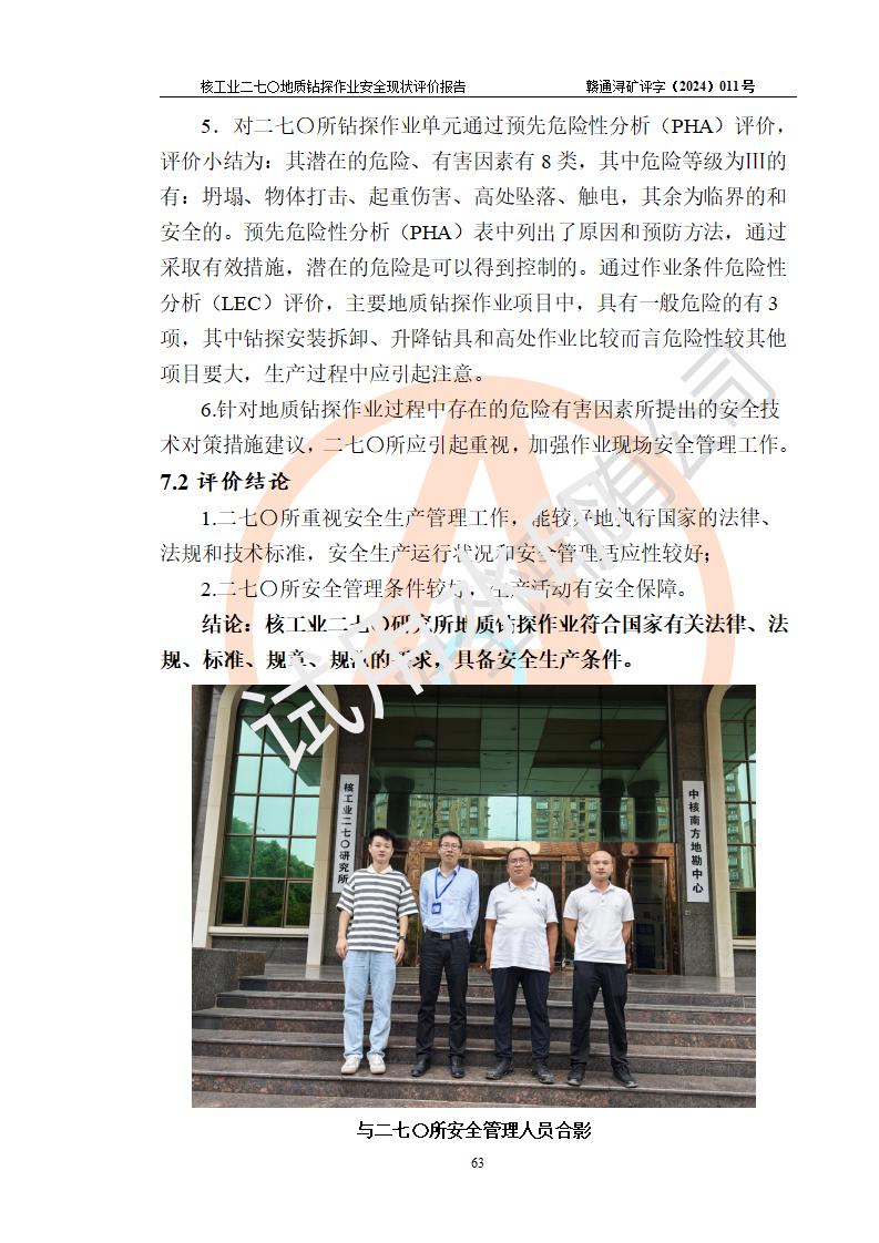 核工業(yè)二七〇研究所地質(zhì)鉆探作業(yè)安全現(xiàn)狀評價報告