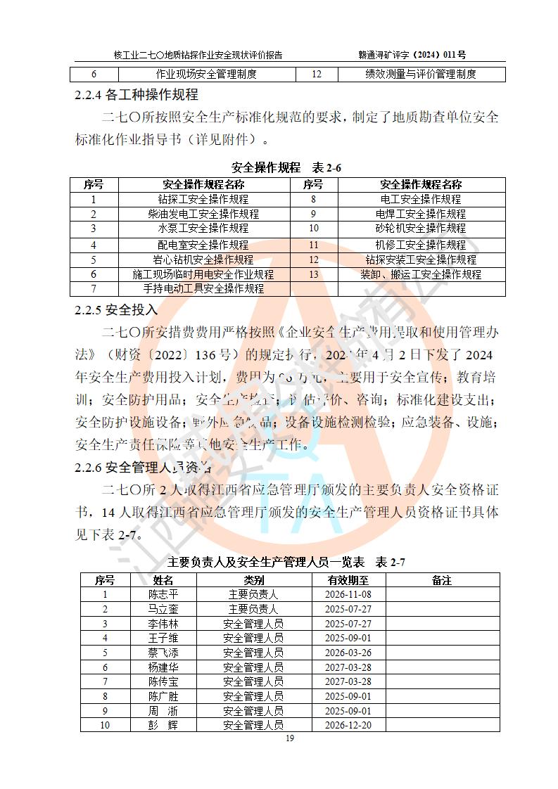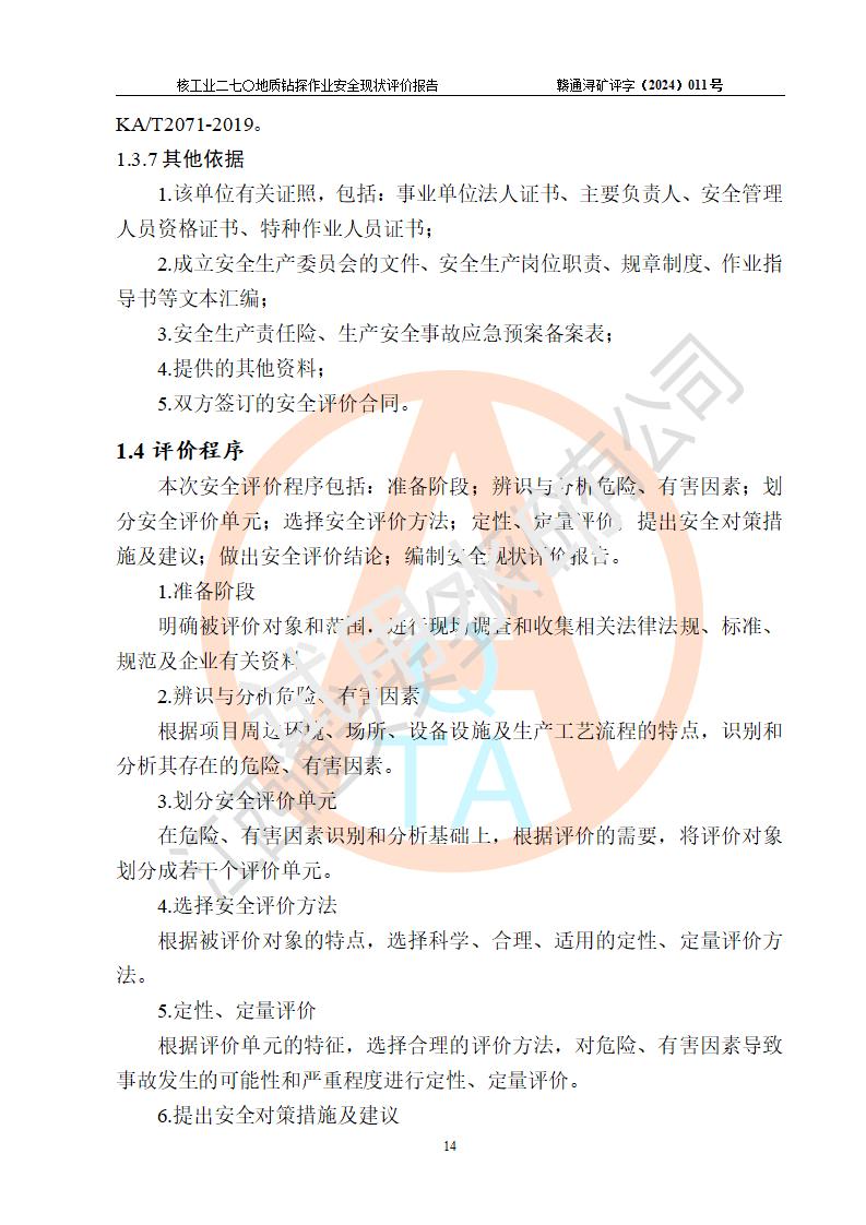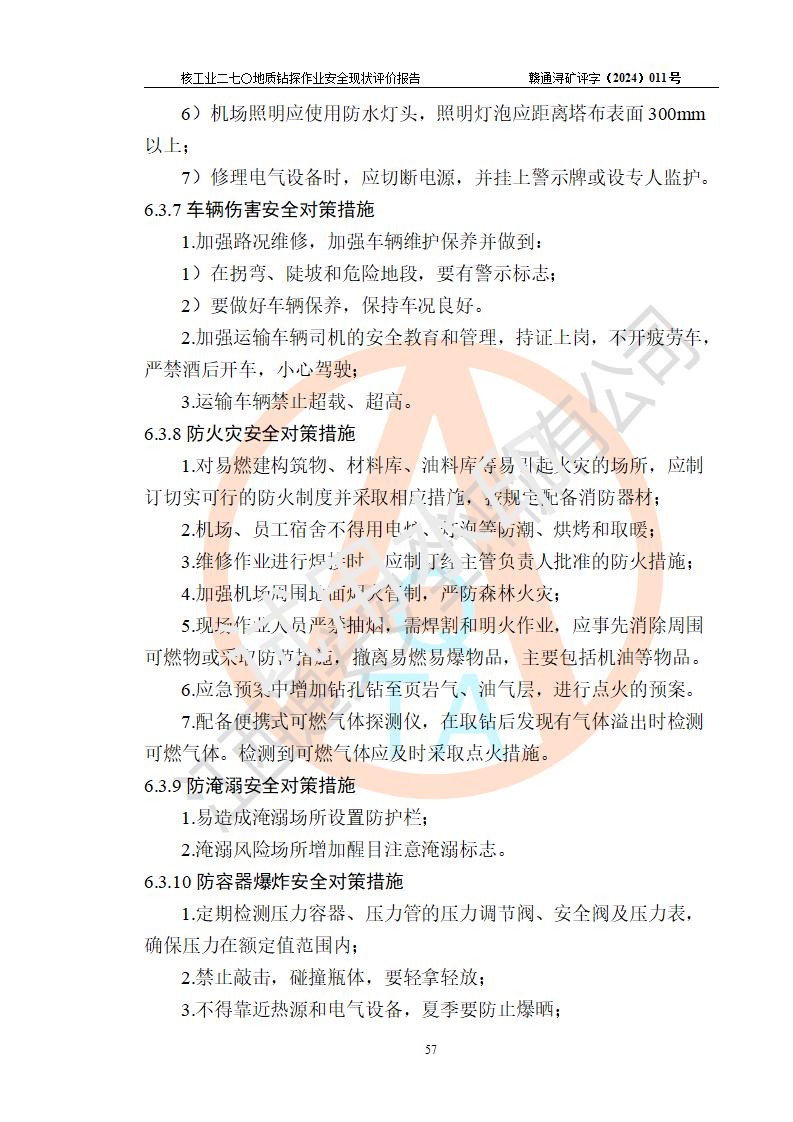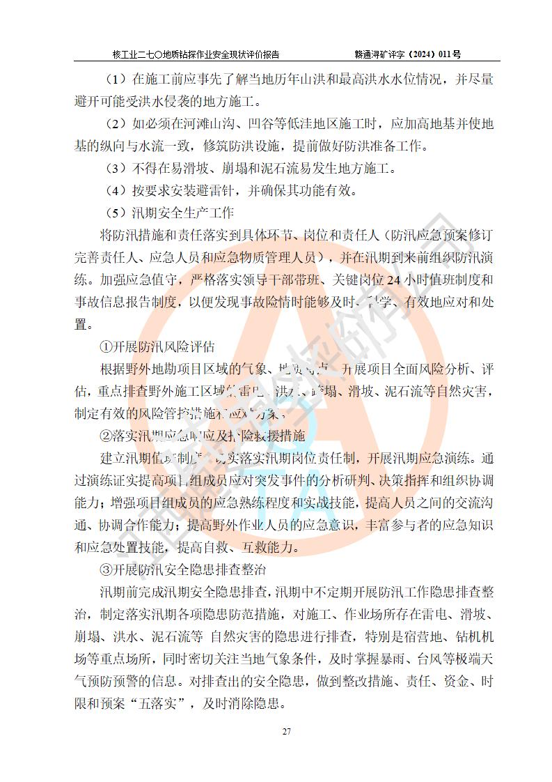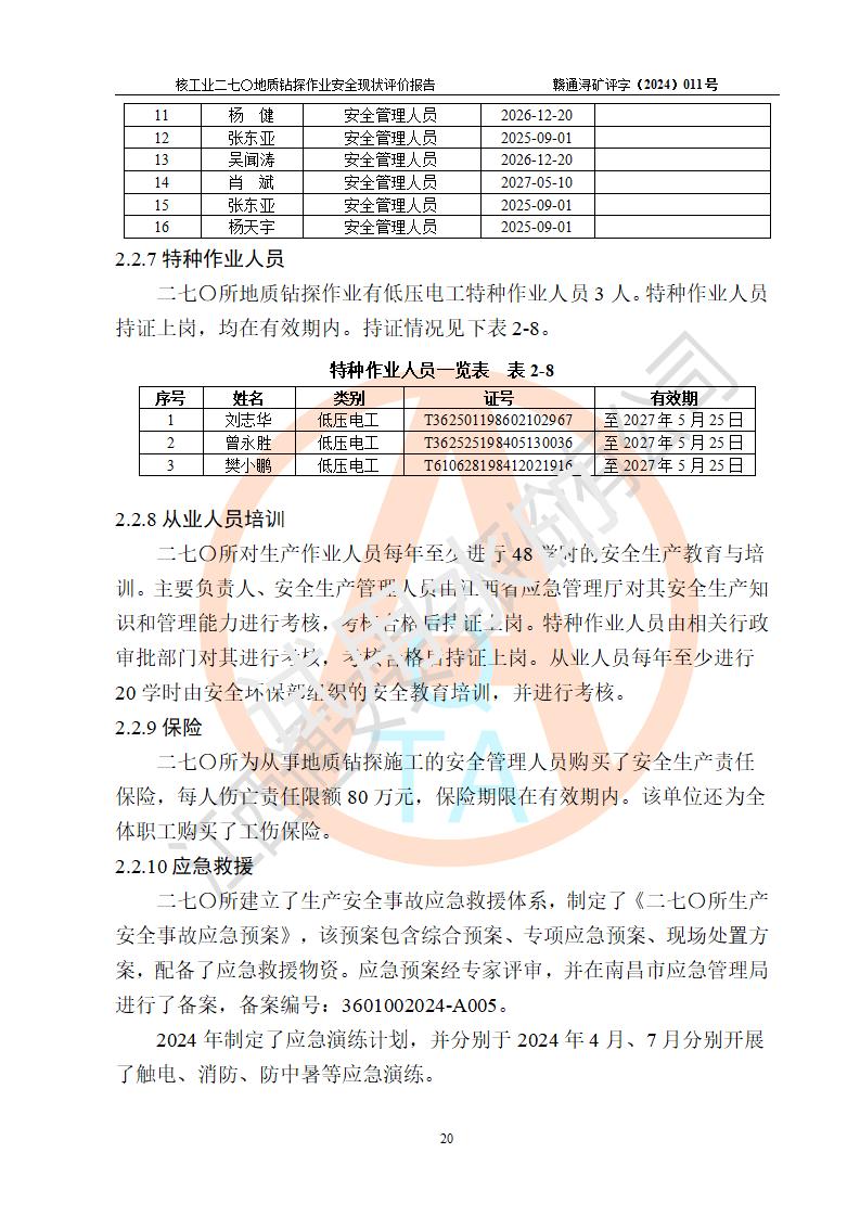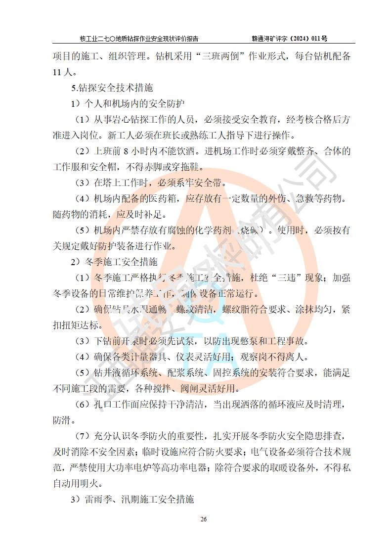 核工業(yè)二七〇研究所地質(zhì)鉆探作業(yè)安全現(xiàn)狀評價報告