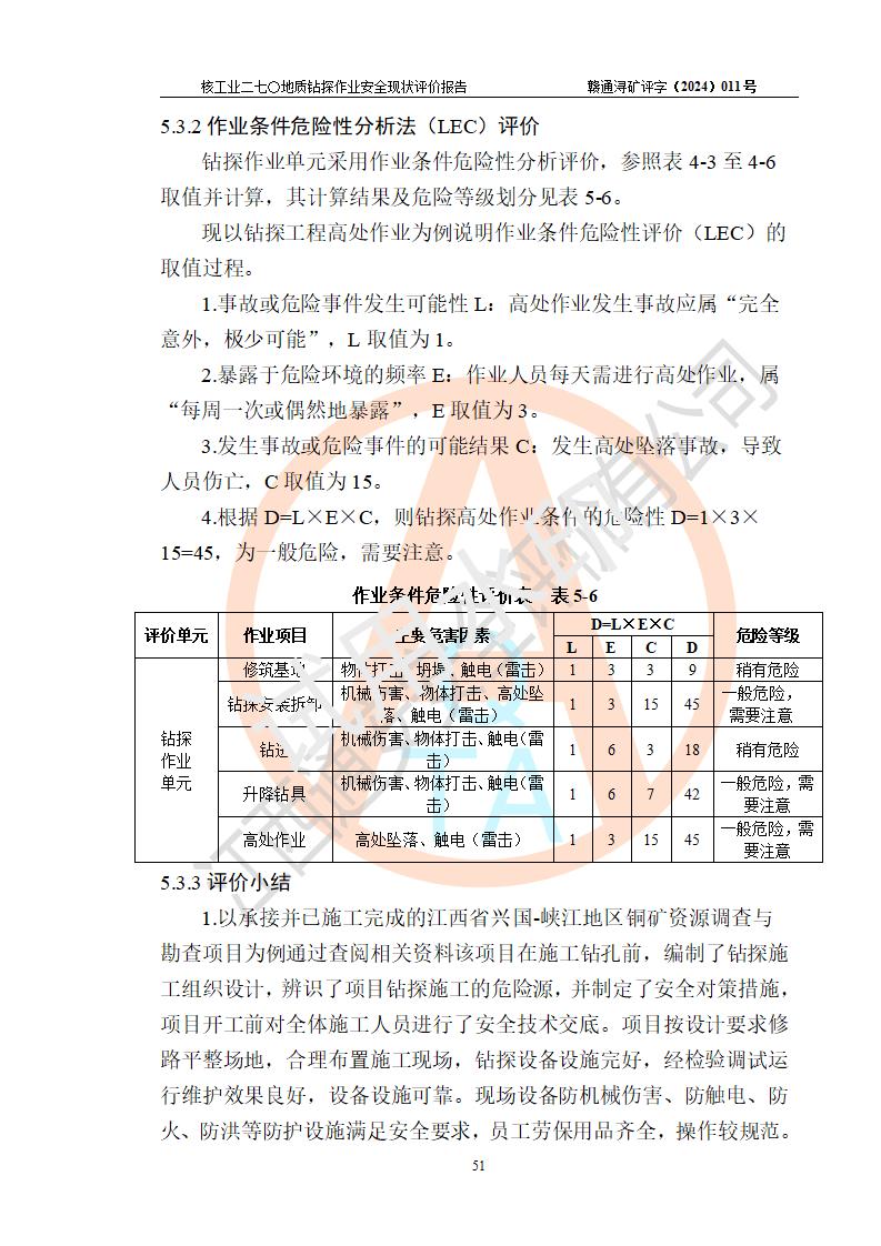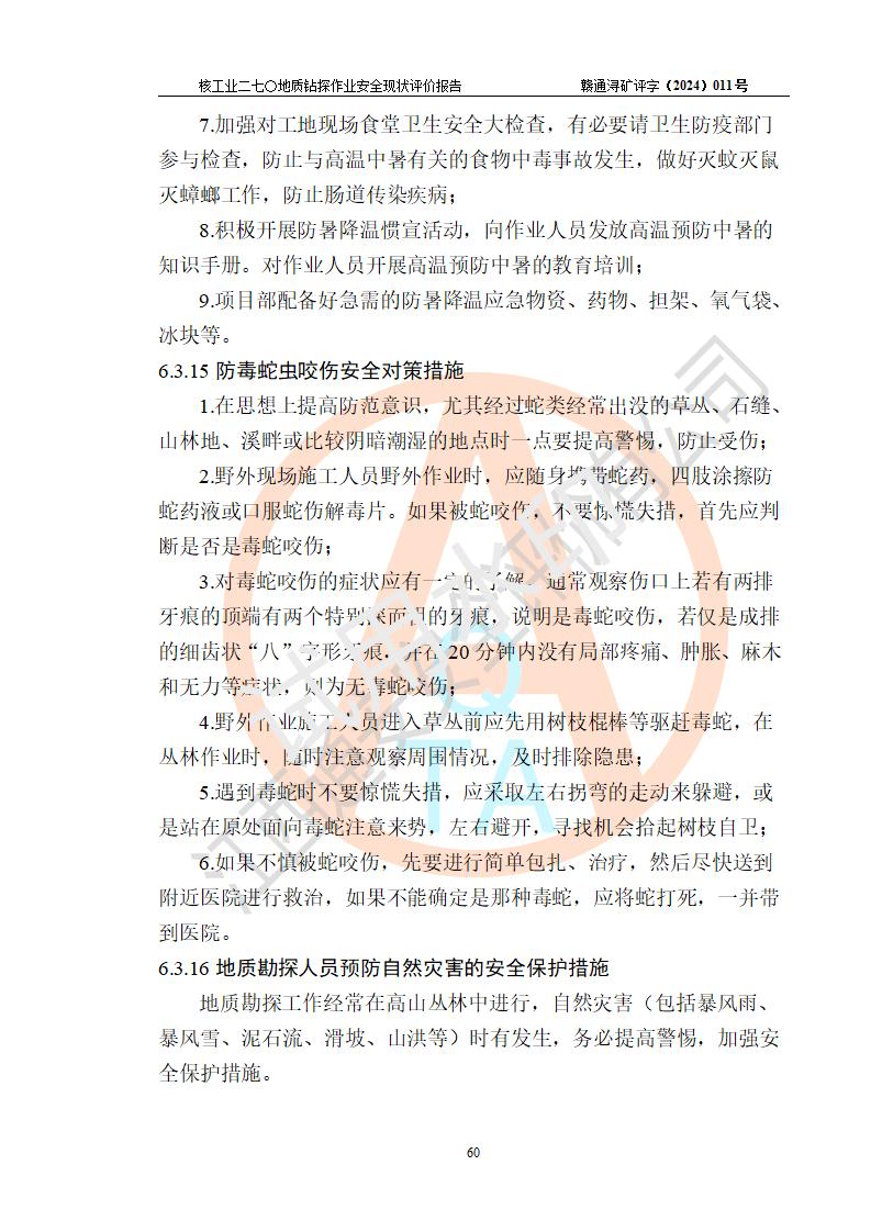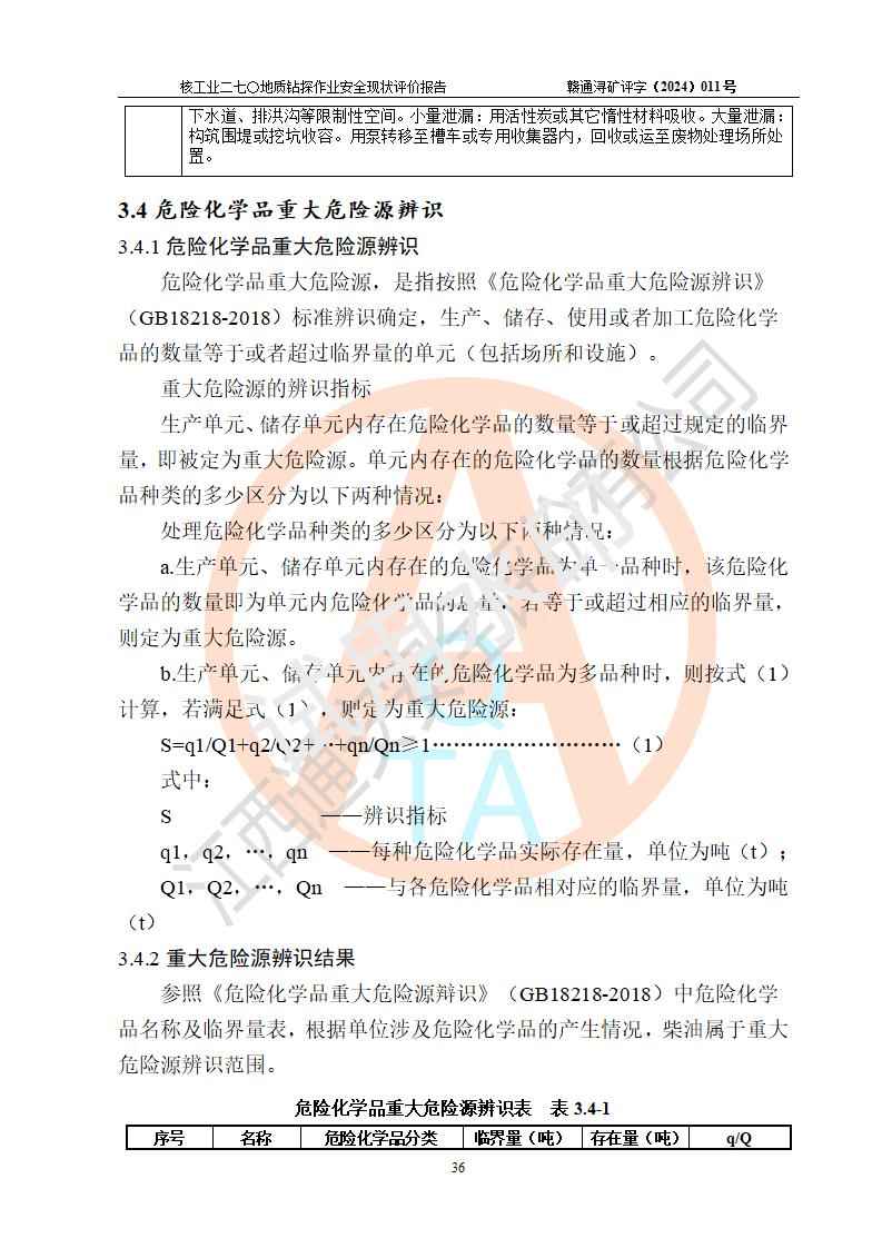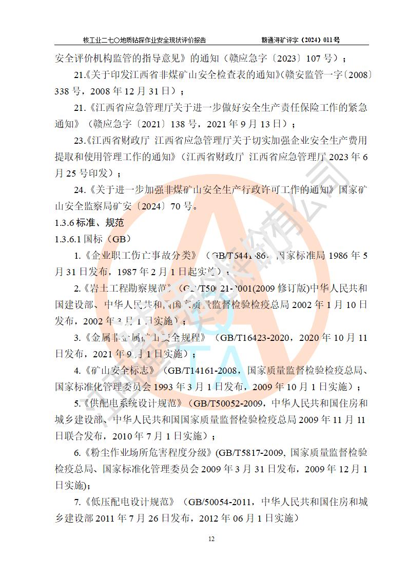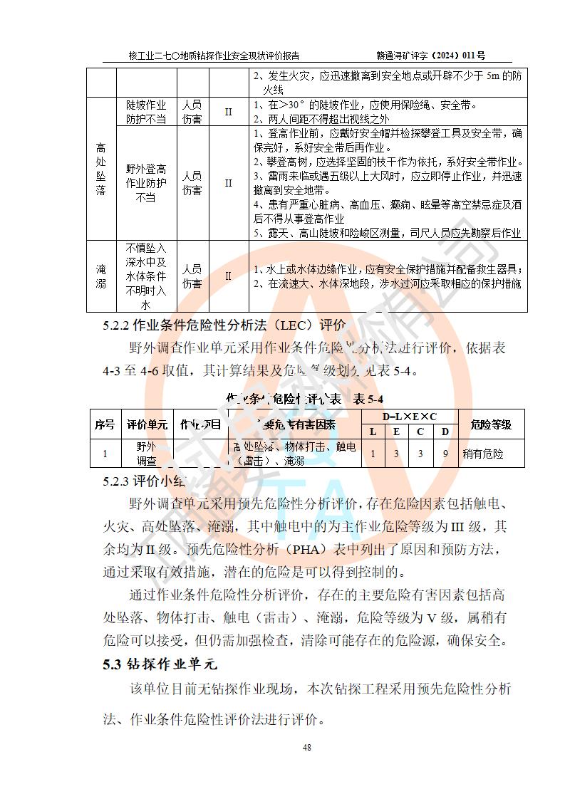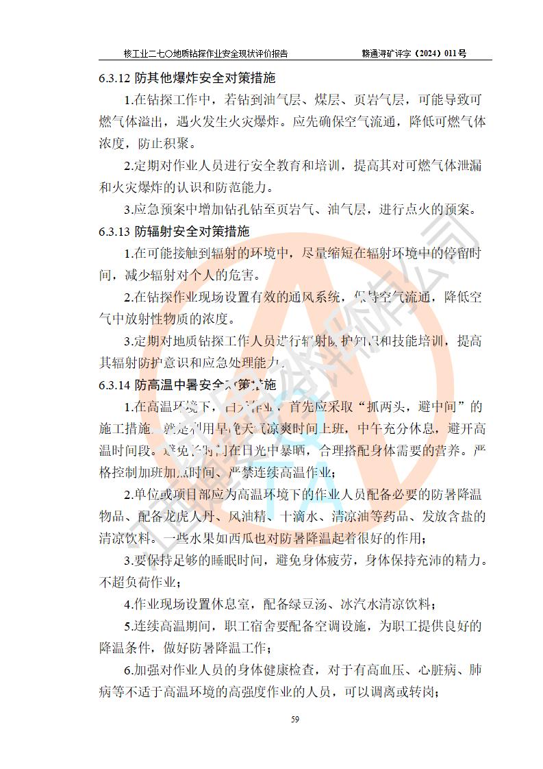 核工業(yè)二七〇研究所地質(zhì)鉆探作業(yè)安全現(xiàn)狀評價報告