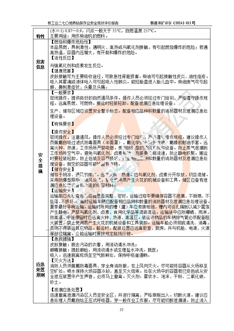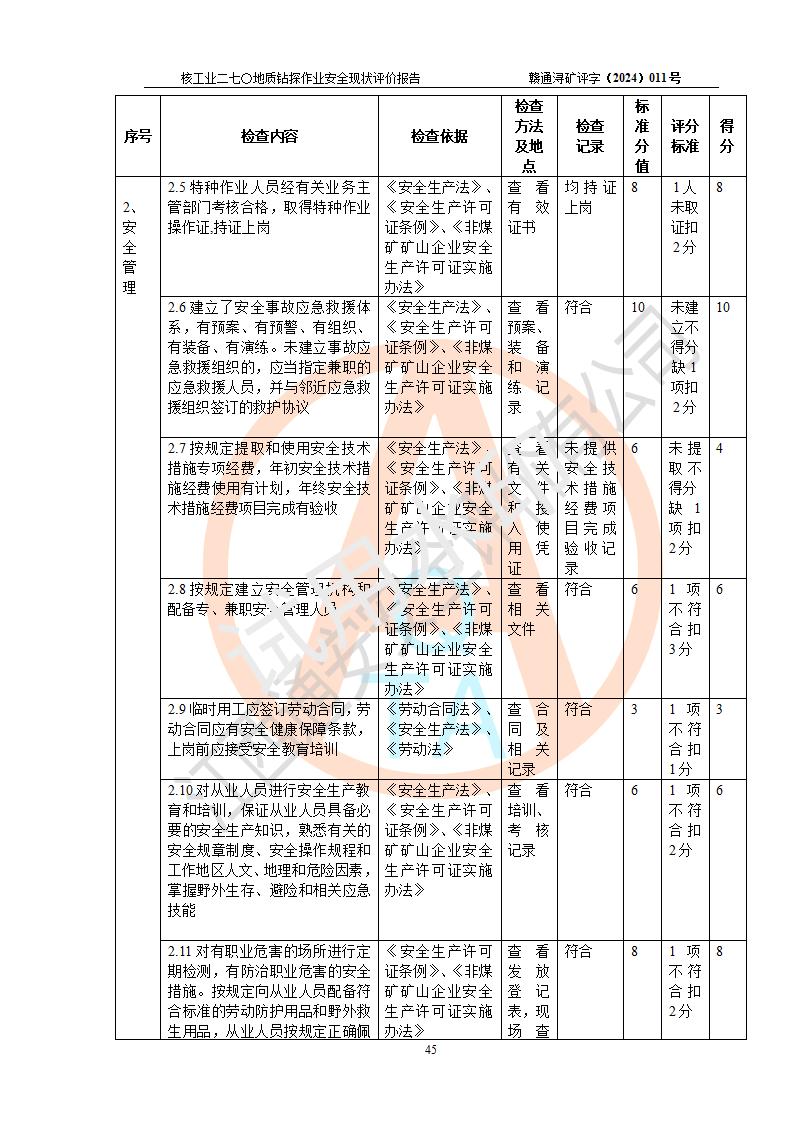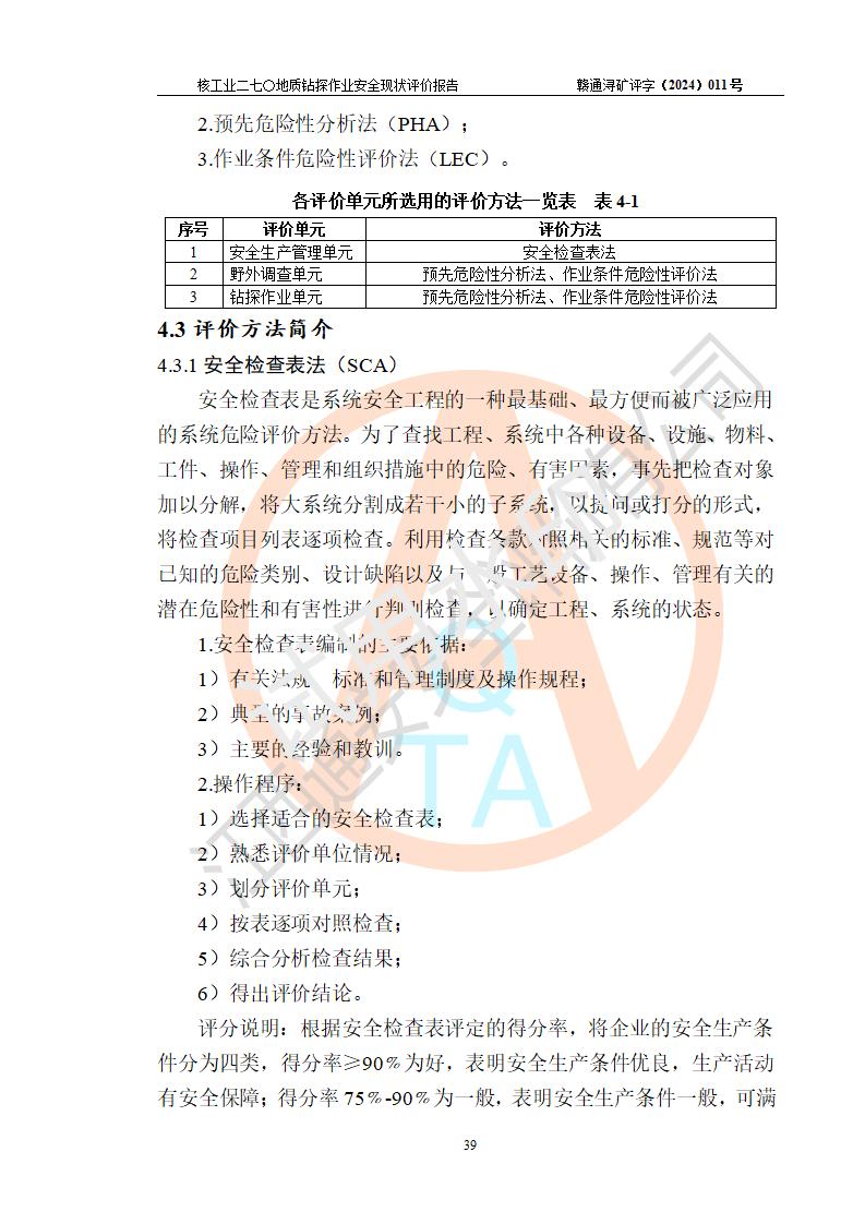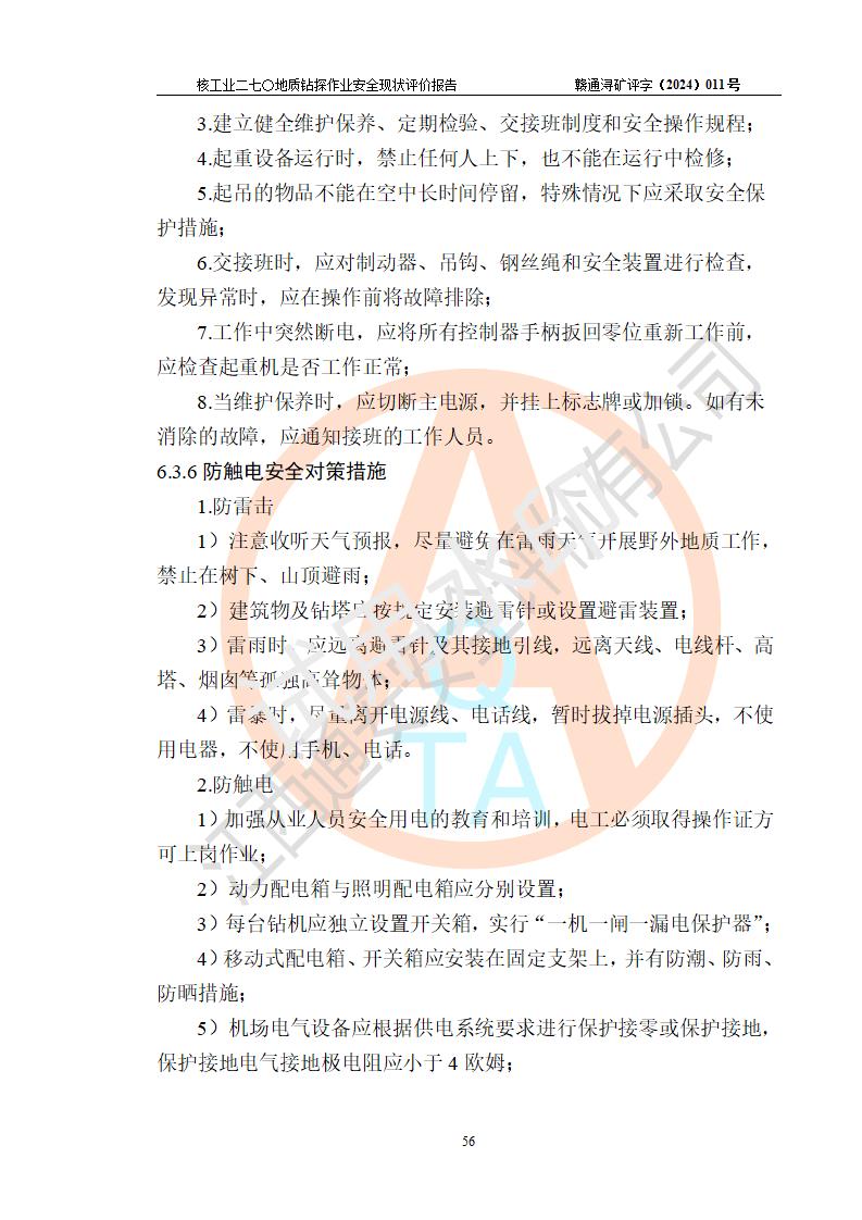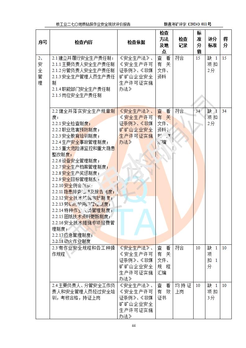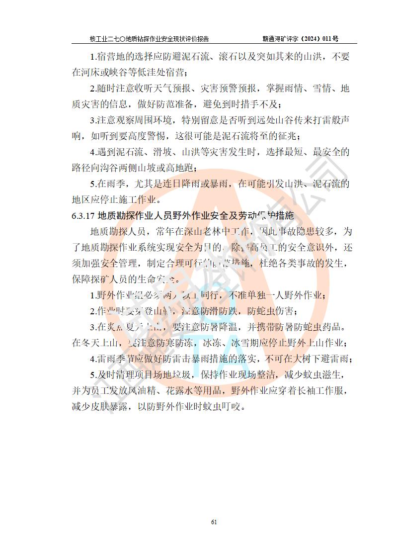 核工業(yè)二七〇研究所地質(zhì)鉆探作業(yè)安全現(xiàn)狀評價報告