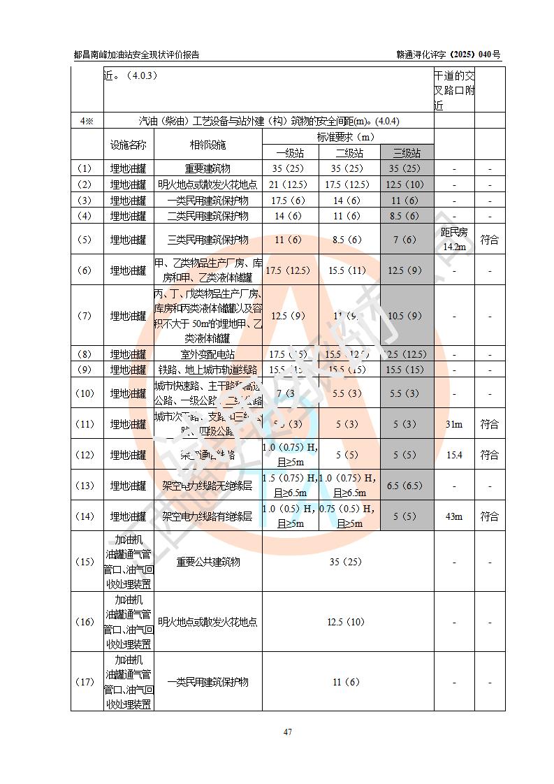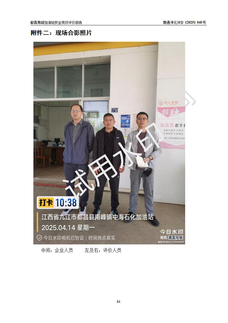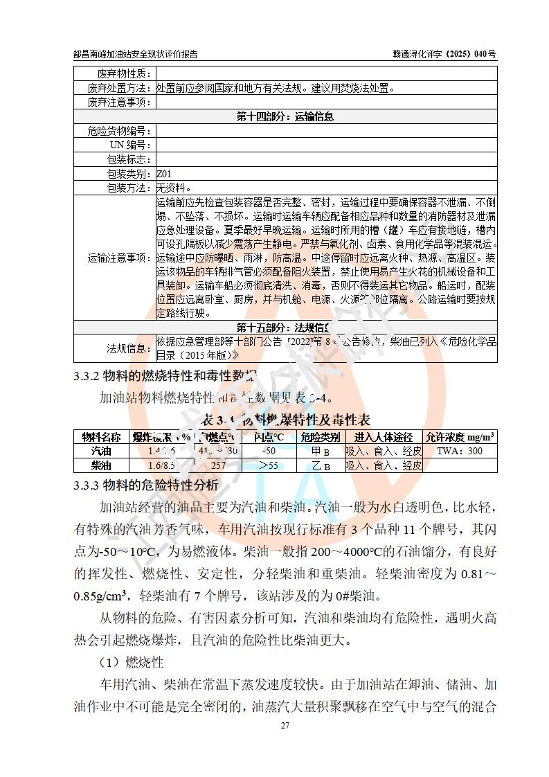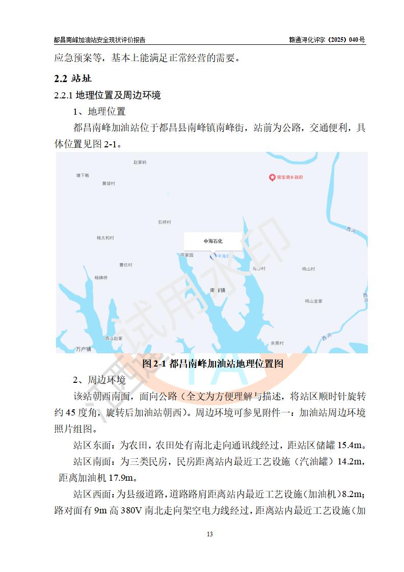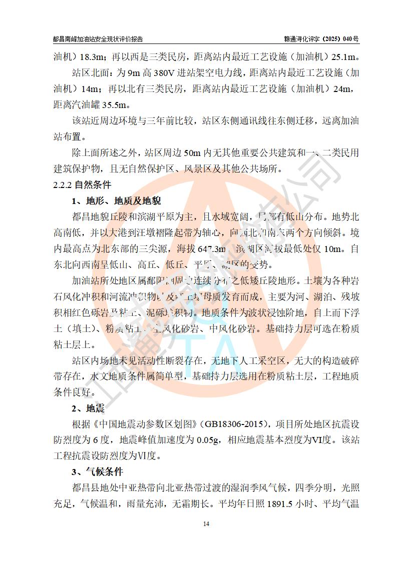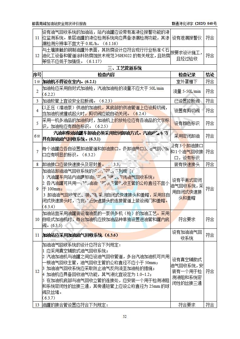 都昌南峰加油站是一家專門從事成品油零售經營的個人獨資企業(yè),投資人馮上生,經營場所位于都昌縣南峰鎮(zhèn)南峰街。該加油站現有從業(yè)人員4人,其中安全管理人員1人,主要負責人馮肖肖。 該加油站占地面積約520m2,站區(qū)內設置有2臺雙槍程控燃油加油機及配套的工藝管線、50m3雙層0#柴油儲罐1臺、30m3雙層92#汽油儲罐1臺、30m3雙層95#汽油儲罐1臺,油品儲罐總容積為110m3(折算成汽油為85m3),。按現行《汽車加油加氣加氫站技術標準》對加油站的等級劃分原則,該站屬于三級加油站。 該站由九江市行政審批局換發(fā)《危險化學品經營許可證》(證號:贛九行審經(甲)字[2022]000075號),**期限2022年06月24日至2025年06月23日。 |