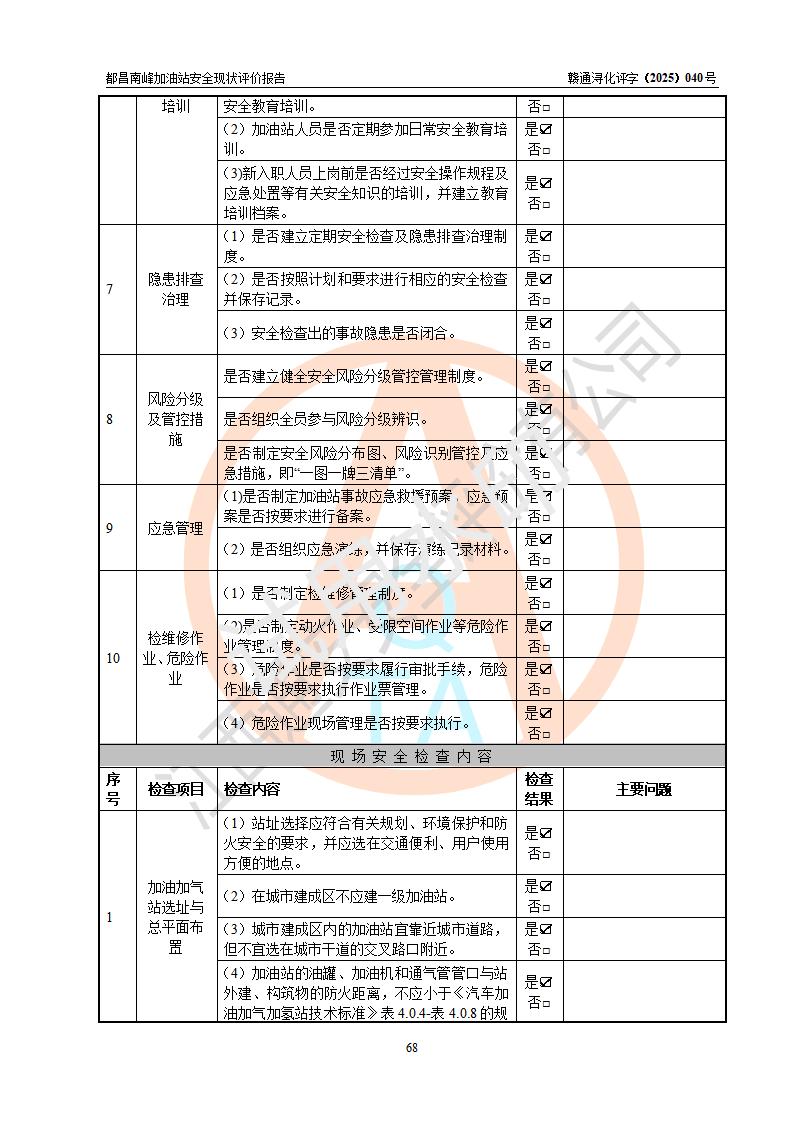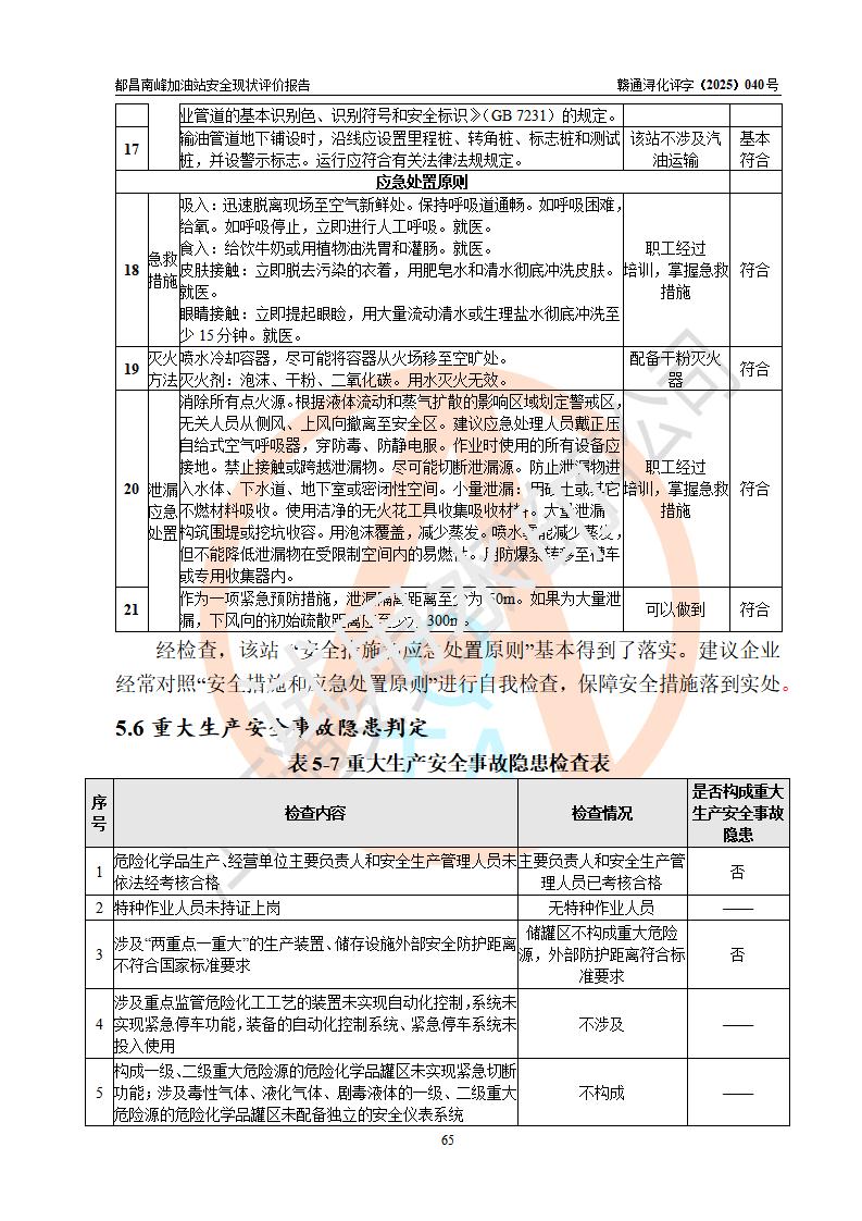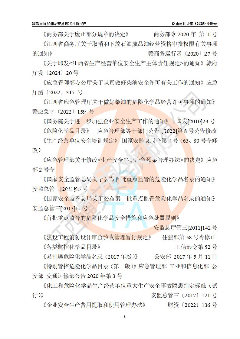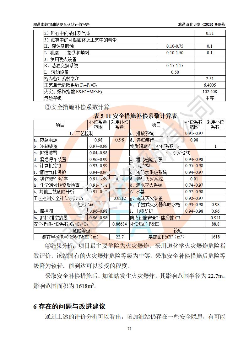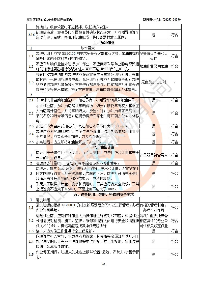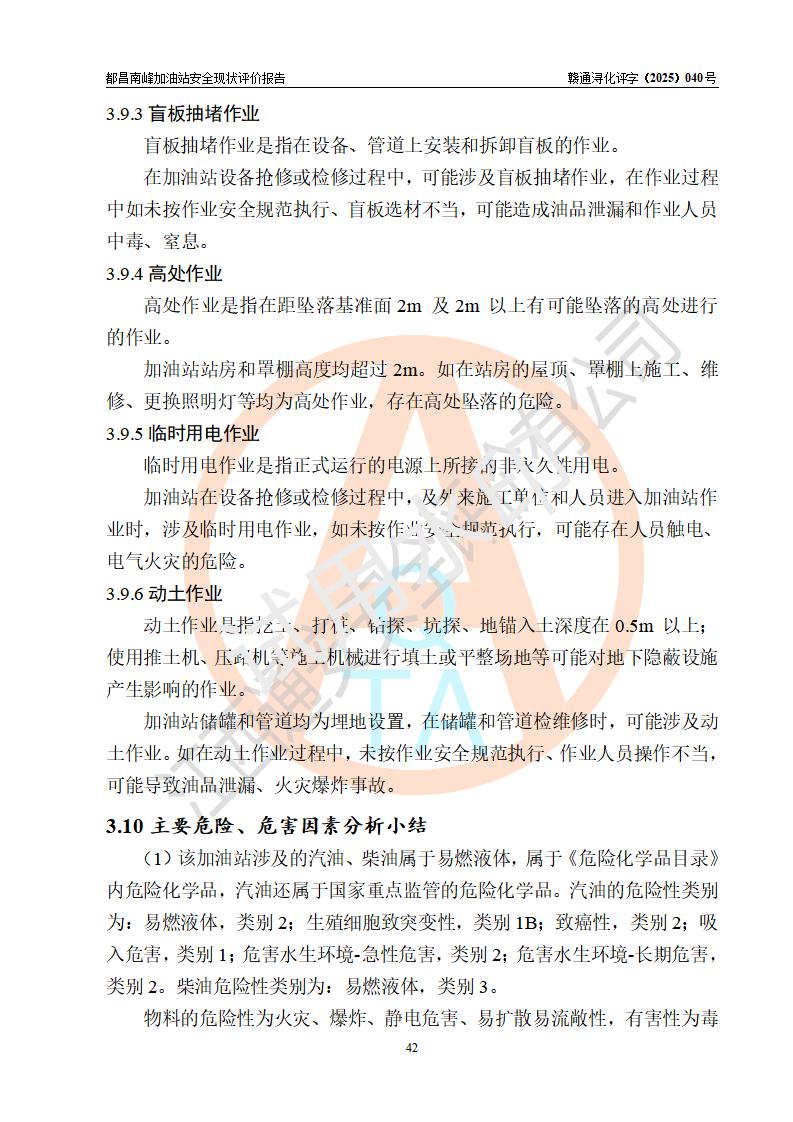 都昌南峰加油站是一家專門從事成品油零售經營的個人獨資企業(yè),投資人馮上生,經營場所位于都昌縣南峰鎮(zhèn)南峰街。該加油站現有從業(yè)人員4人,其中安全管理人員1人,主要負責人馮肖肖。 該加油站占地面積約520m2,站區(qū)內設置有2臺雙槍程控燃油加油機及配套的工藝管線、50m3雙層0#柴油儲罐1臺、30m3雙層92#汽油儲罐1臺、30m3雙層95#汽油儲罐1臺,油品儲罐總容積為110m3(折算成汽油為85m3),。按現行《汽車加油加氣加氫站技術標準》對加油站的等級劃分原則,該站屬于三級加油站。 該站由九江市行政審批局換發(fā)《危險化學品經營許可證》(證號:贛九行審經(甲)字[2022]000075號),**期限2022年06月24日至2025年06月23日。 |