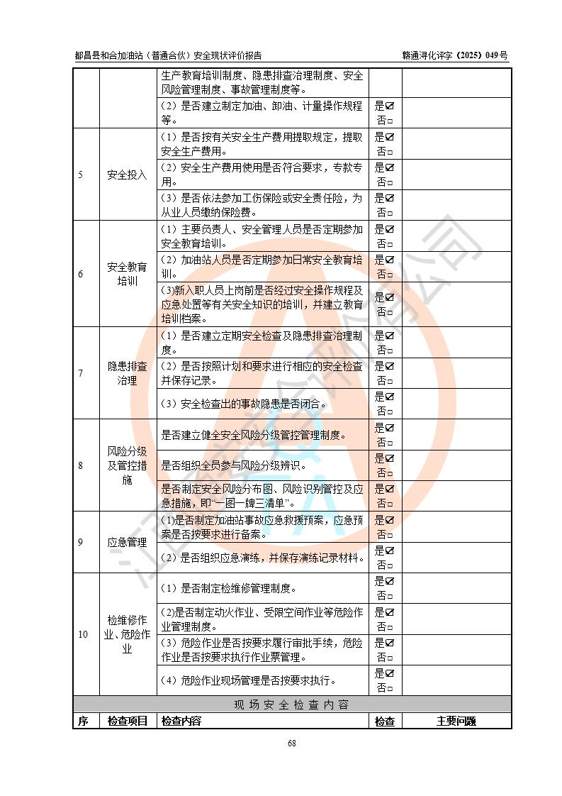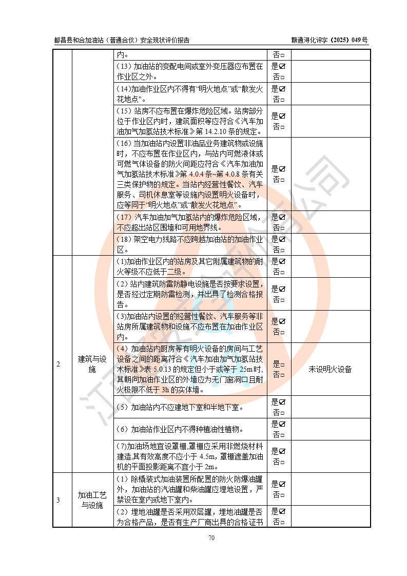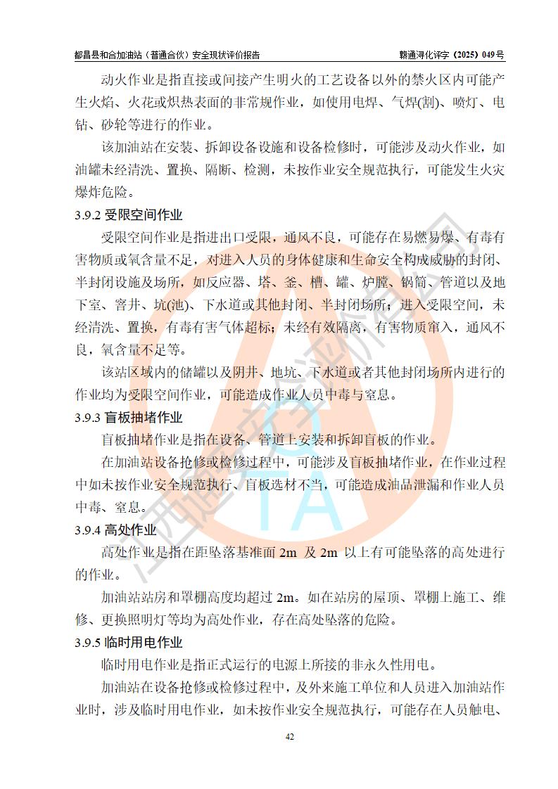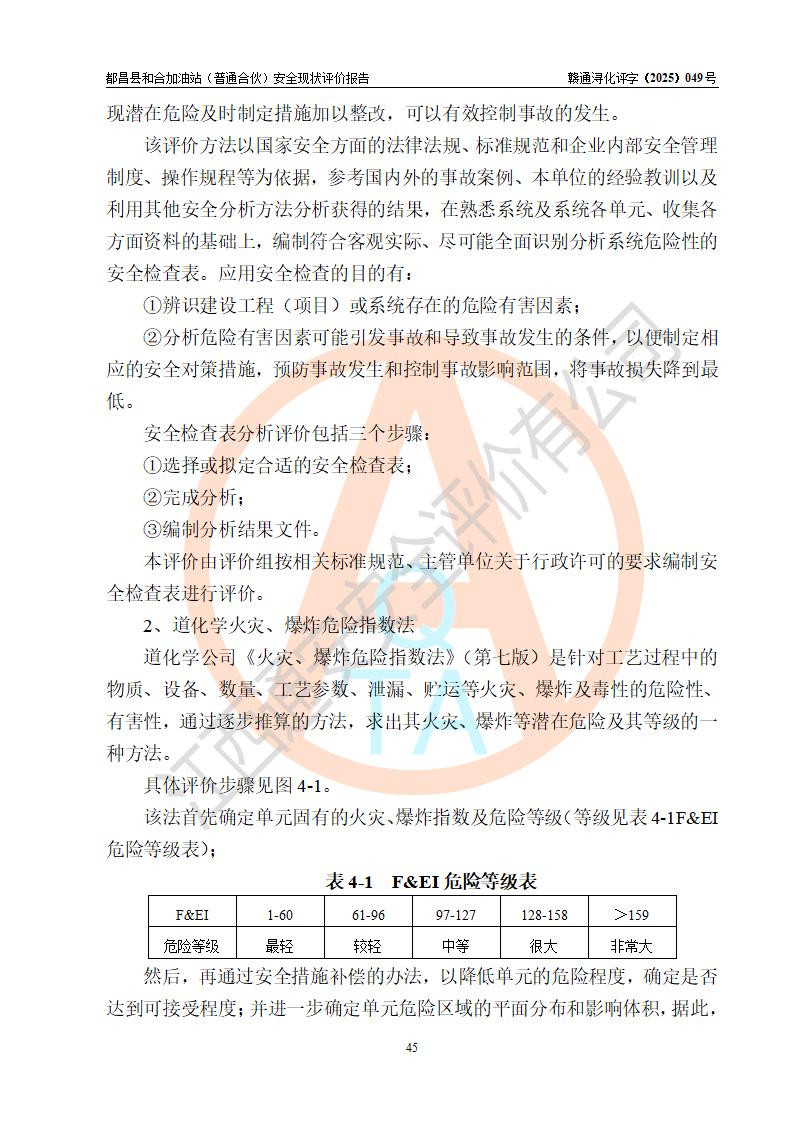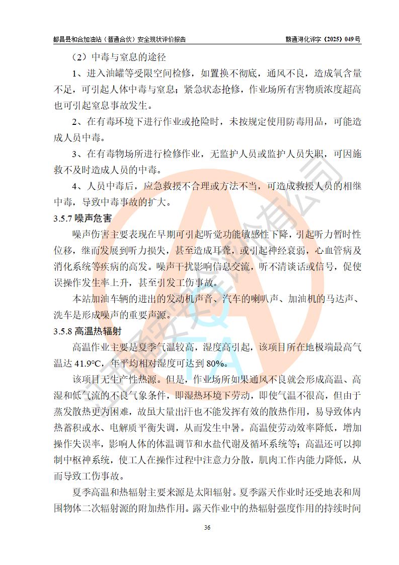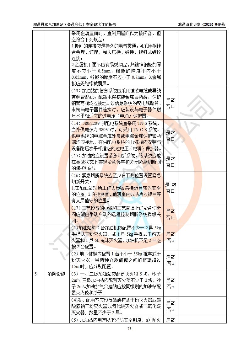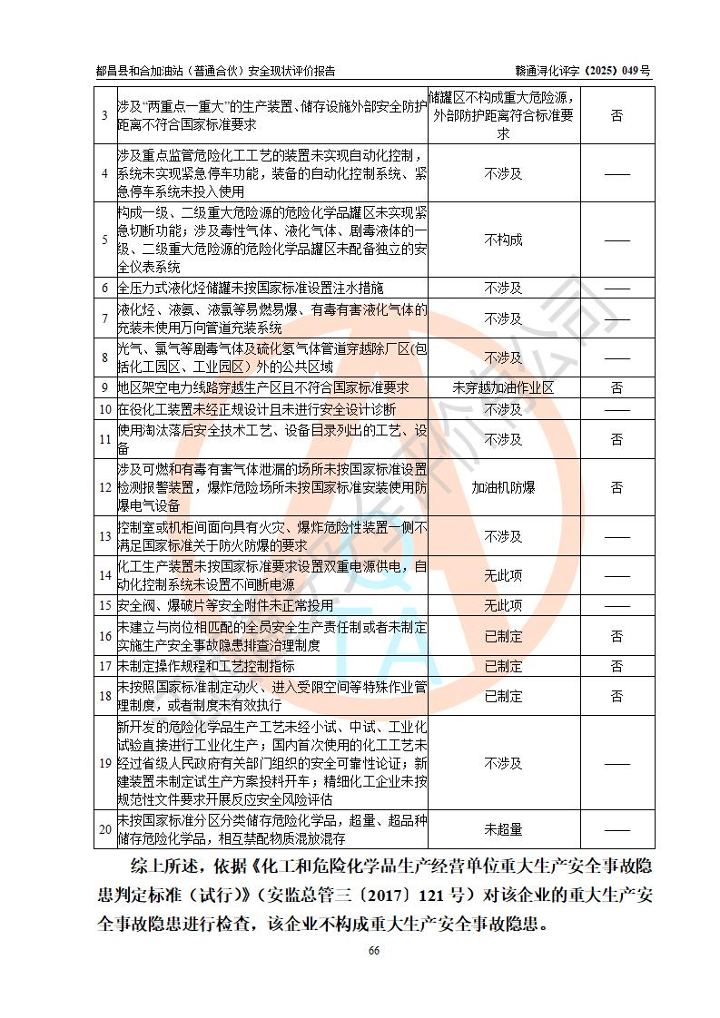 都昌縣和合加油站(普通合伙)是一家專門(mén)從事成品油零售經(jīng)營(yíng)的普通合伙企業(yè),執(zhí)行事務(wù)合伙人:江銘,經(jīng)營(yíng)場(chǎng)所位于江西省九江市都昌縣和合鄉(xiāng)南溪村和合路口。該加油站現(xiàn)有從業(yè)人員6人,其中安全管理人員1人,主要負(fù)責(zé)人江麗娟。 該加油站站區(qū)占地面積1350m2,站區(qū)內(nèi)設(shè)置有4臺(tái)雙槍程控燃油加油機(jī)及配套的工藝管線、30m3雙層0#柴油儲(chǔ)罐1臺(tái)、30m3雙層92#汽油儲(chǔ)罐2臺(tái)、30m3雙層95#汽油儲(chǔ)罐1臺(tái),油品儲(chǔ)罐總?cè)莘e為120m3(折算成汽油為105m3)。按現(xiàn)行《汽車加油加氣加氫站技術(shù)標(biāo)準(zhǔn)》對(duì)加油站的等級(jí)劃分原則,該站屬于二級(jí)加油站。 該站由九江市行政審批局換發(fā)《危險(xiǎn)化學(xué)品經(jīng)營(yíng)許可證》(證號(hào):贛九行審經(jīng)(甲)字[2022]000134號(hào)),**期限2022年08月15日至2025年08月14日。 |