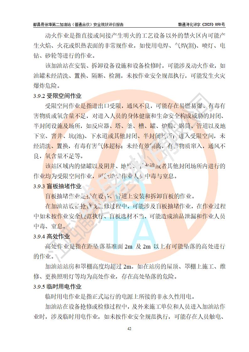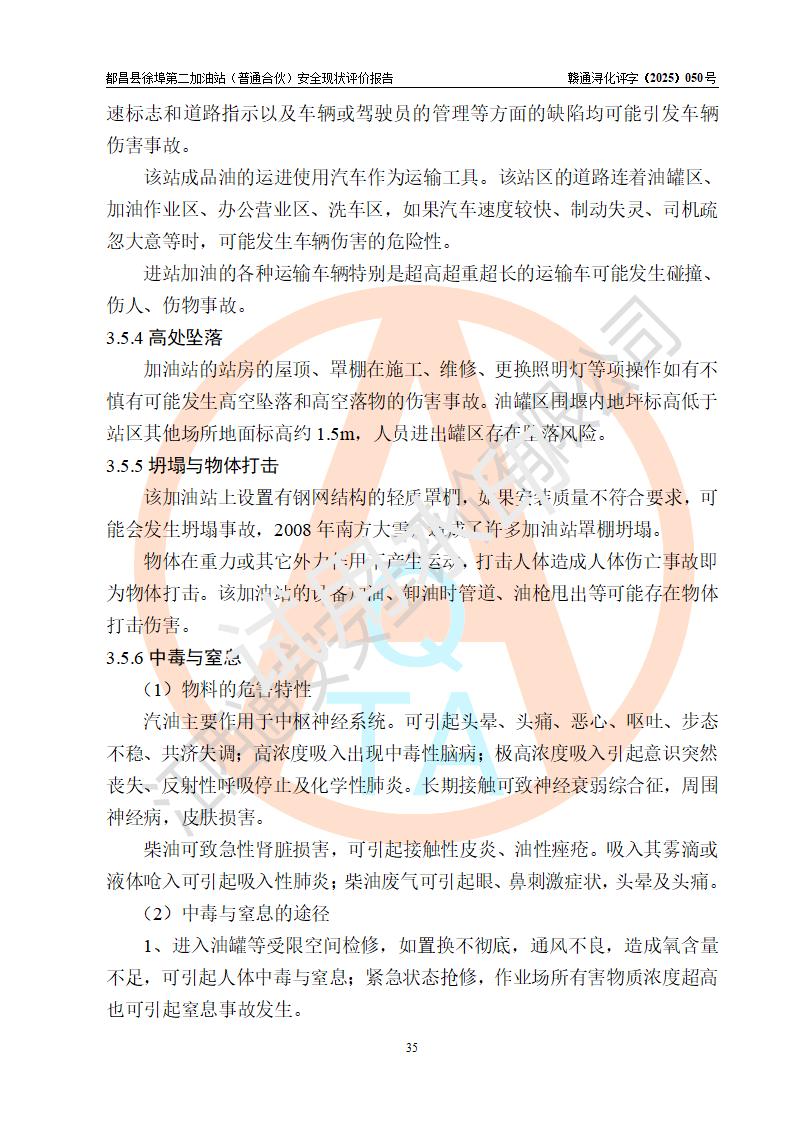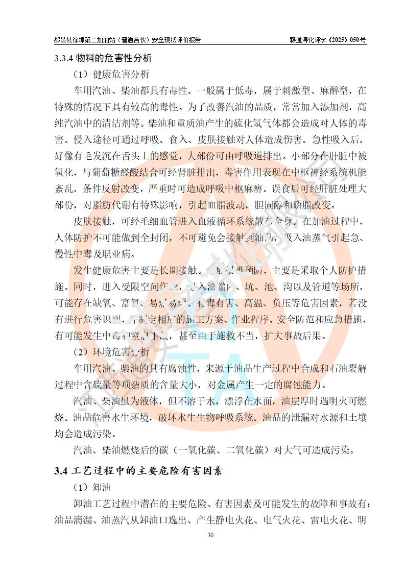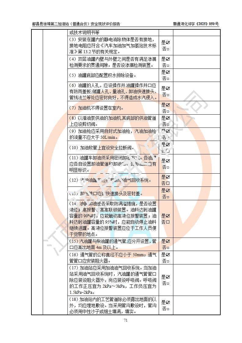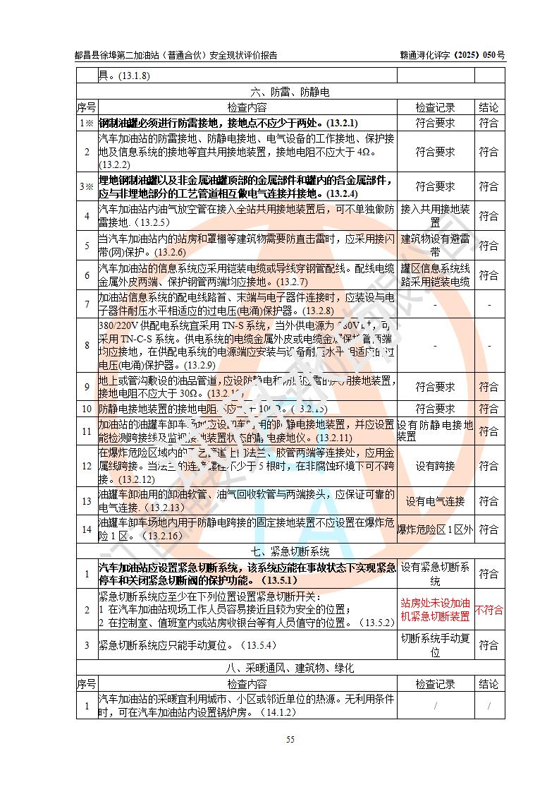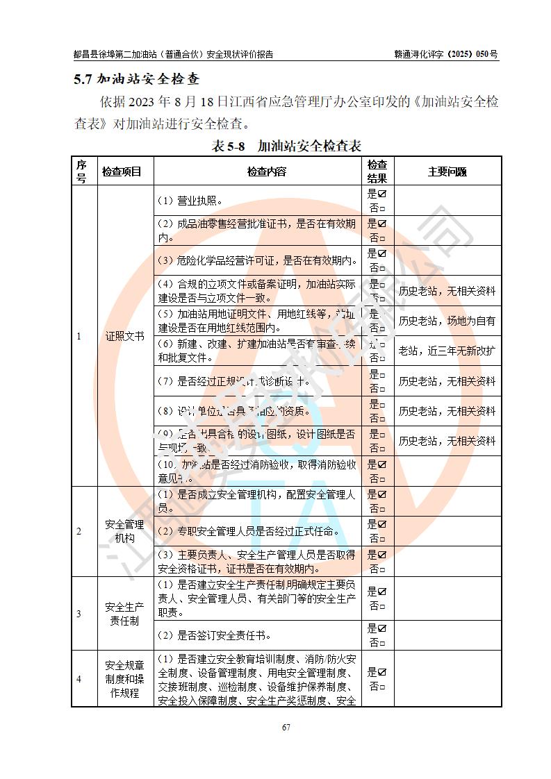 都昌縣徐埠第二加油站(普通合伙)是一家專門從事成品油零售經(jīng)營的普通合伙企業(yè),執(zhí)行事務合伙人:曹建平,經(jīng)營場所位于江西省九江市都昌縣徐埠鎮(zhèn)徐埠村委會上街七組。該加油站現(xiàn)有從業(yè)人員6人,其中安全管理人員1人,主要負責人方錦英。 該加油站站區(qū)占地面積2100m2,站區(qū)內(nèi)設(shè)置有3臺雙槍程控燃油加油機、1臺單槍程控燃油加油機及配套的工藝管線、30m3雙層0#柴油儲罐1臺、30m3雙層92#汽油儲罐2臺、30m3雙層95#汽油儲罐1臺,油品儲罐總?cè)莘e為120m3(折算成汽油為105m3)。按現(xiàn)行《汽車加油加氣加氫站技術(shù)標準》對加油站的等級劃分原則,該站屬于二級加油站。 該站由九江市行政審批局換發(fā)《危險化學品經(jīng)營許可證》(證號:贛九行審經(jīng)(甲)字[2022]000171號),**期限2022年10月18日至2025年10月17日。 |