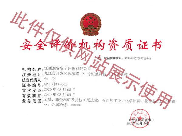版權所有?江西通安安全評價有限公司 地址:江西省九江市開發(fā)區(qū)長城路121號
