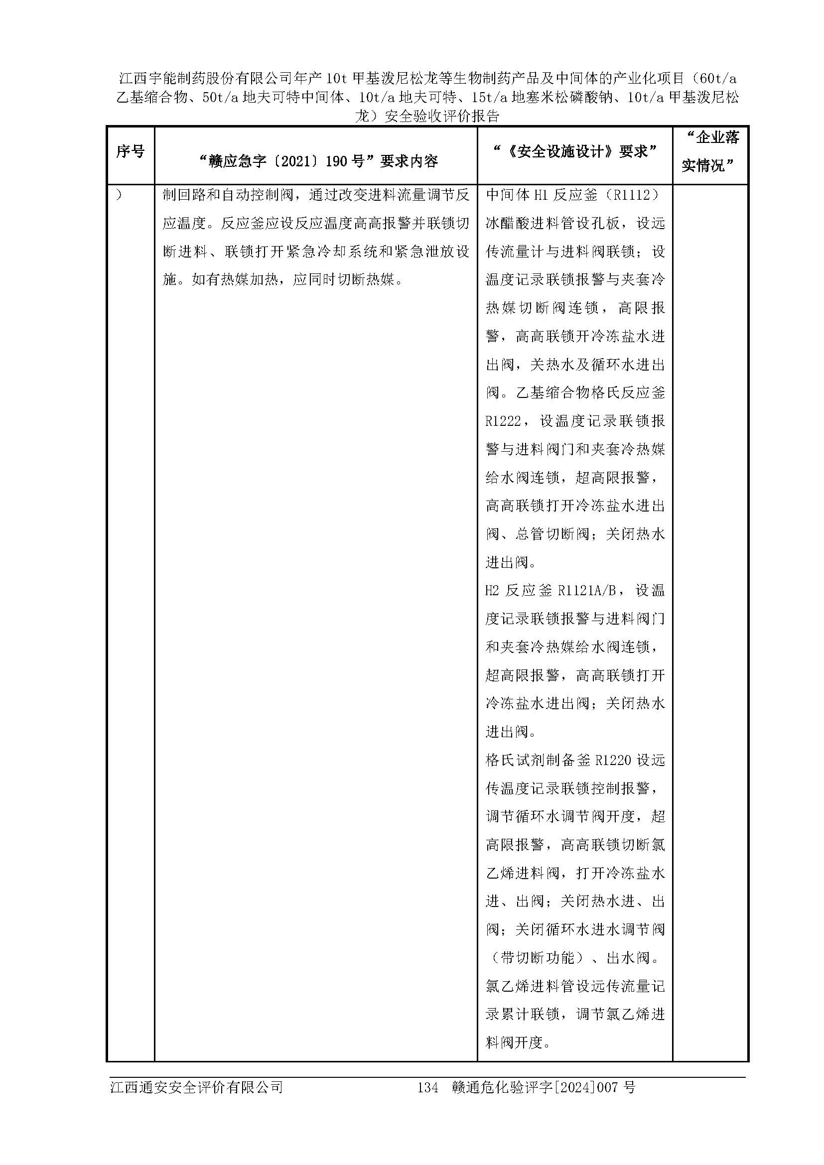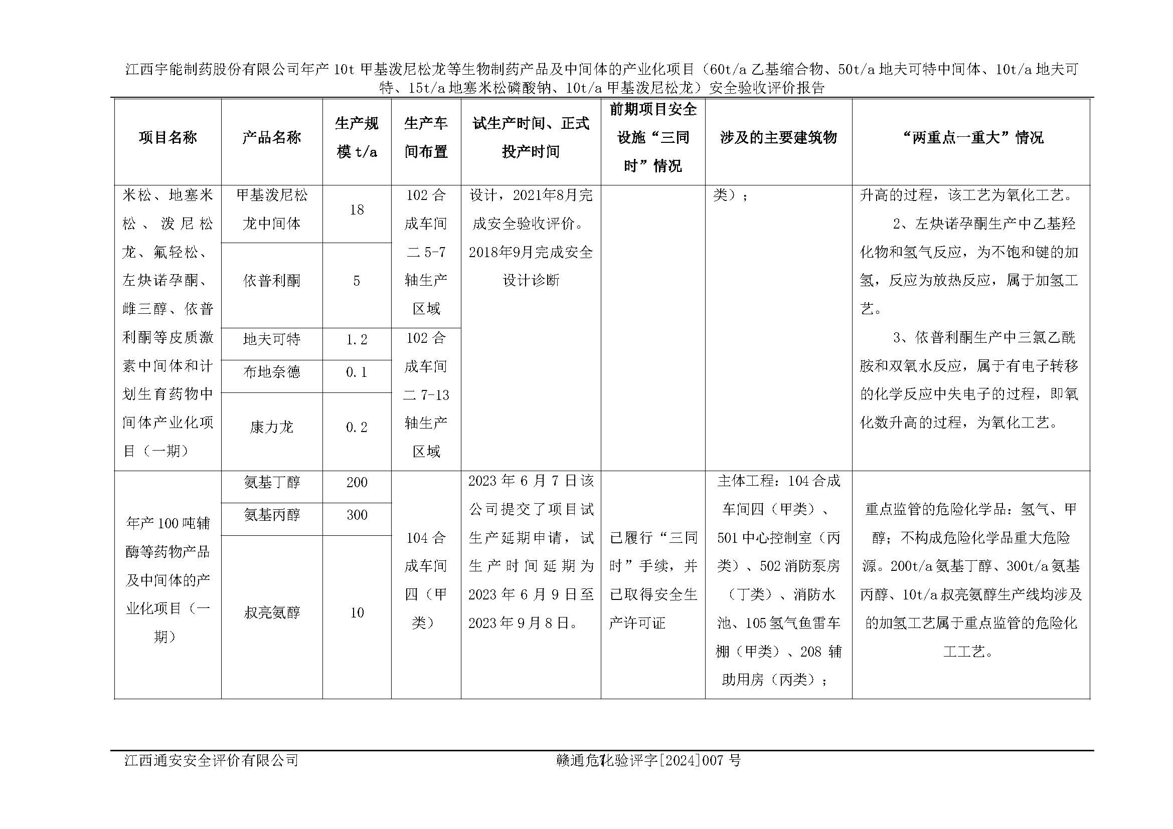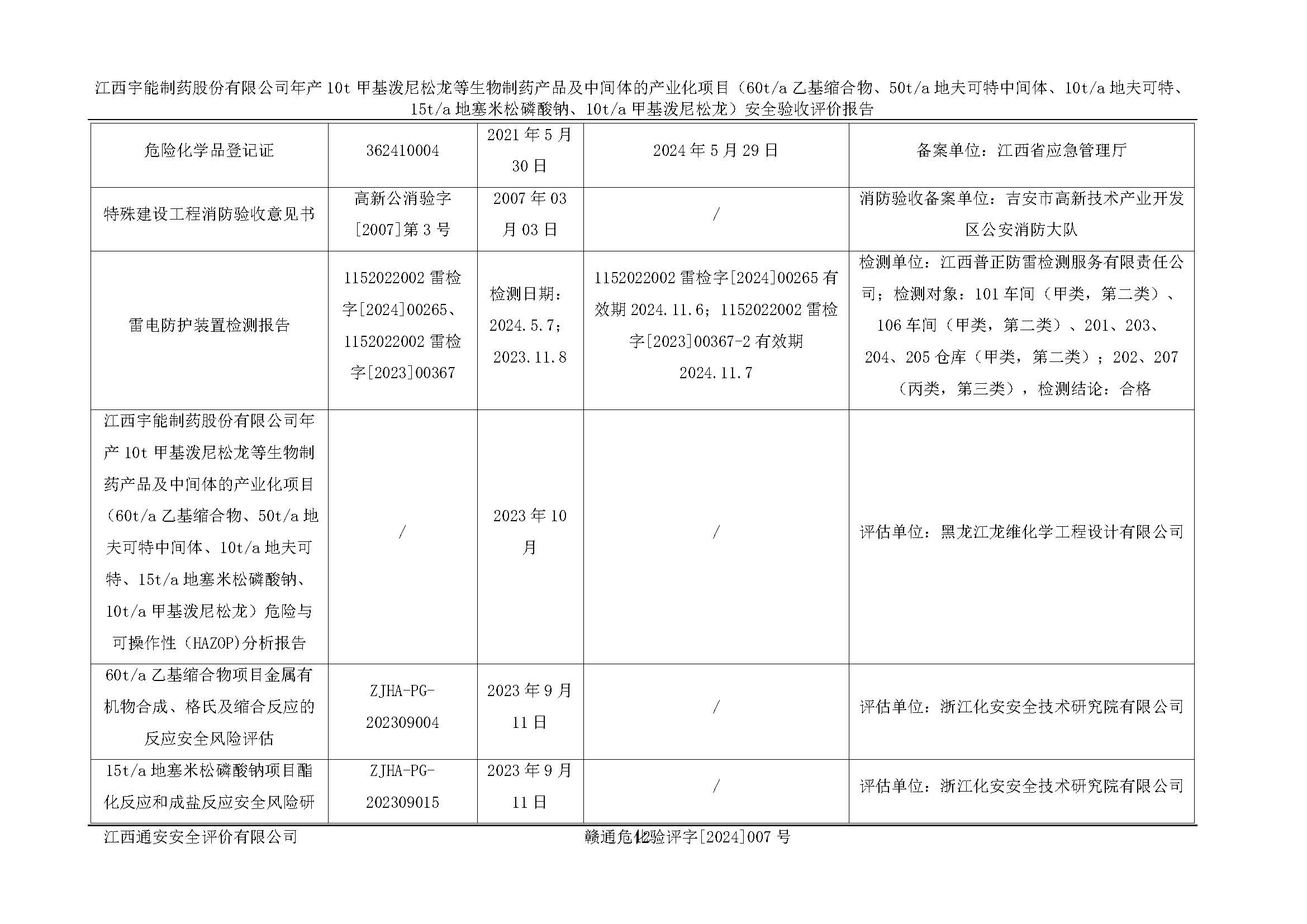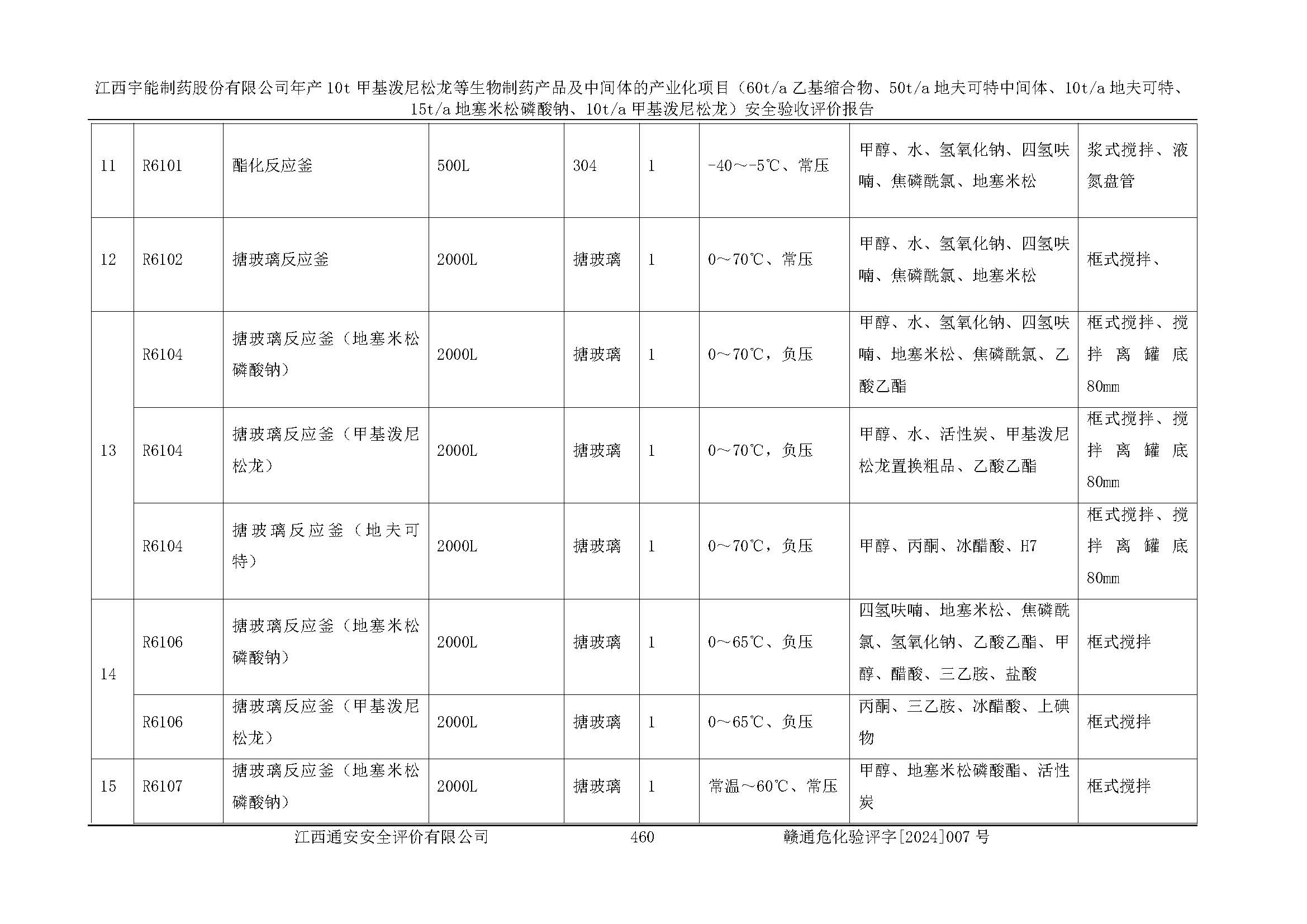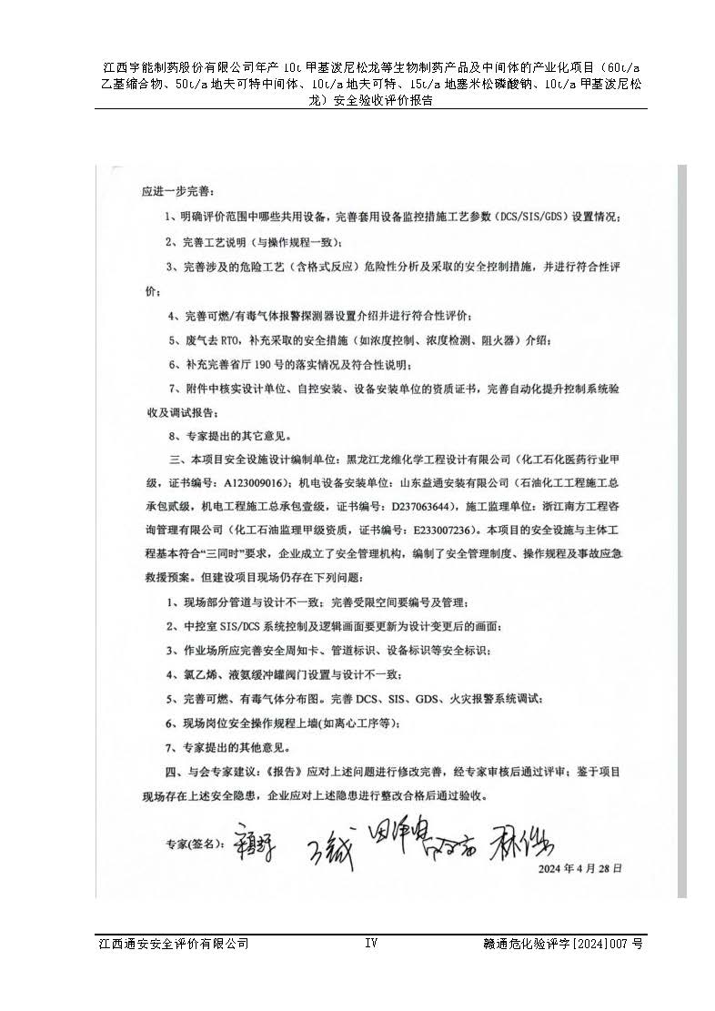 評(píng)價(jià)報(bào)告名稱 | 江西宇能制藥股份有限公司年產(chǎn)10t甲基潑尼松龍等生物制藥產(chǎn)品及中間體的產(chǎn)業(yè)化項(xiàng)目(60t/a乙基縮合物、50t/a地夫可特中間體、10t/a地夫可特、15t/a地塞米松磷酸鈉、10t/a甲基潑尼松龍)安全驗(yàn)收評(píng)價(jià)報(bào)告 | |||