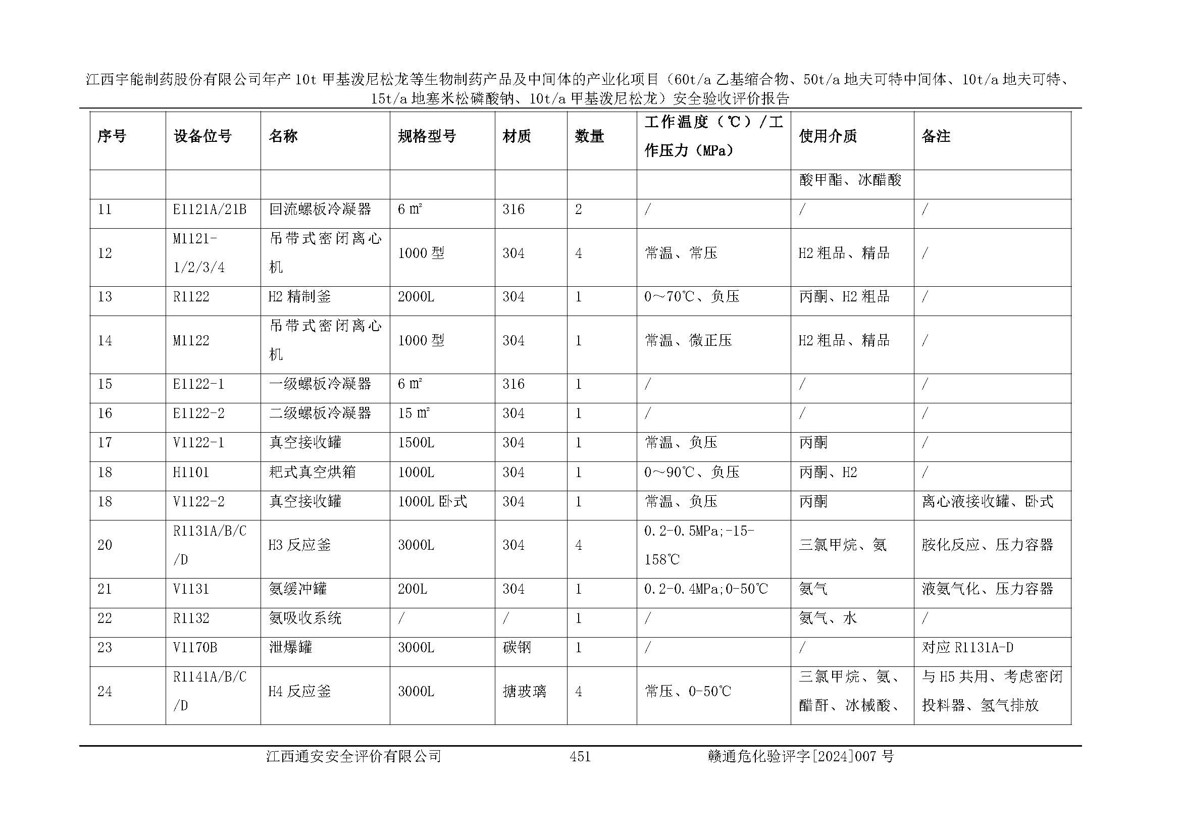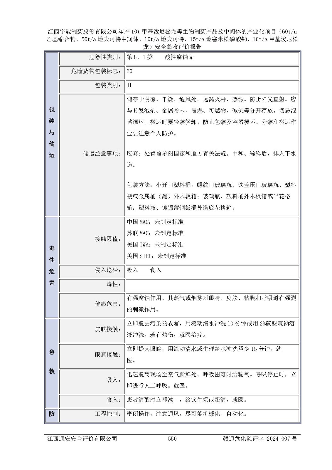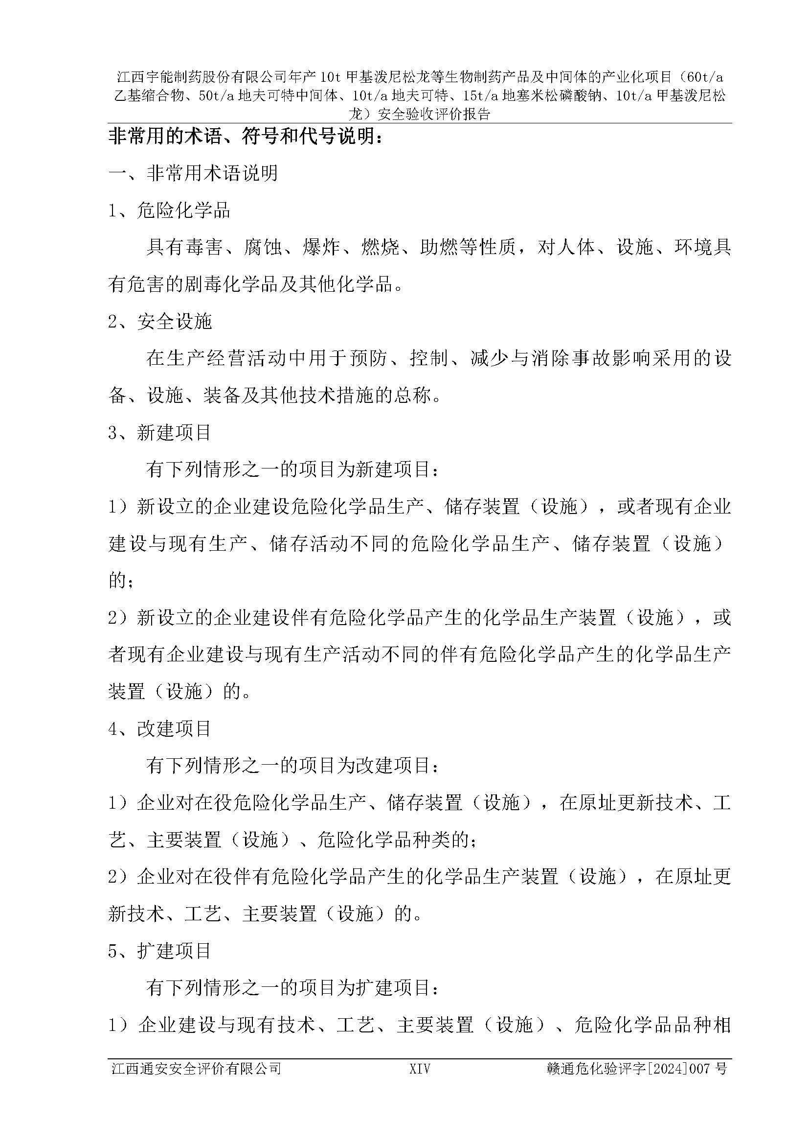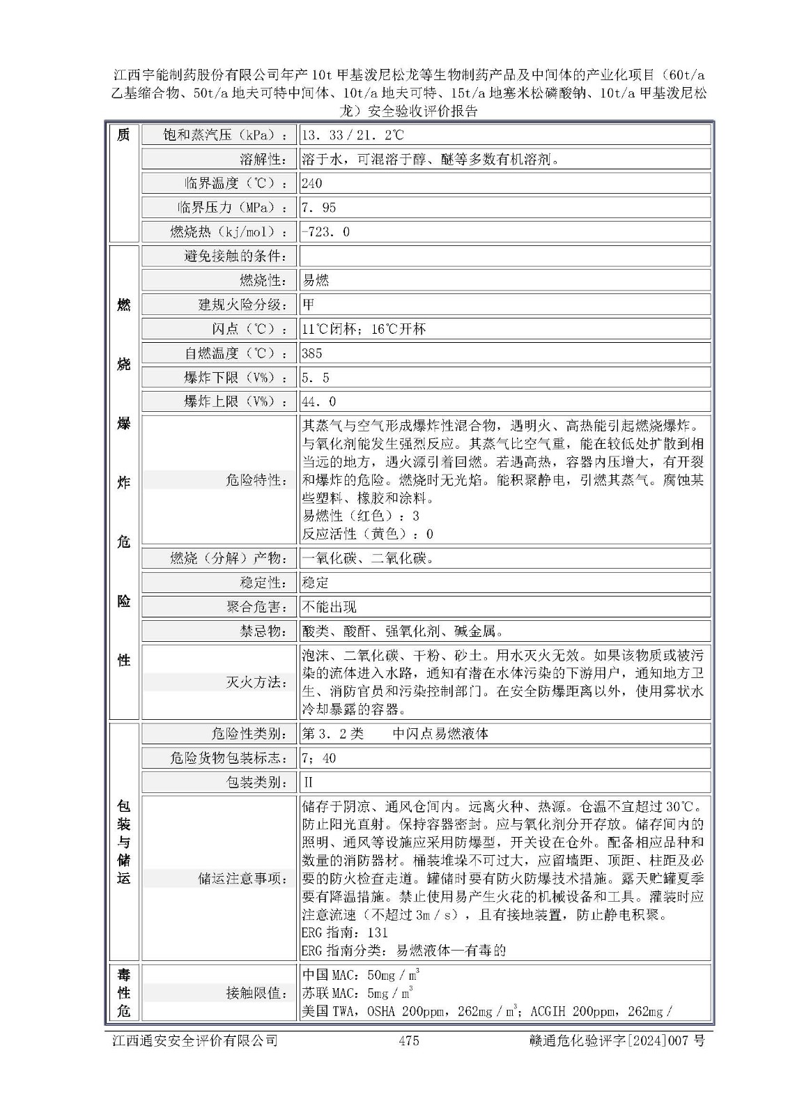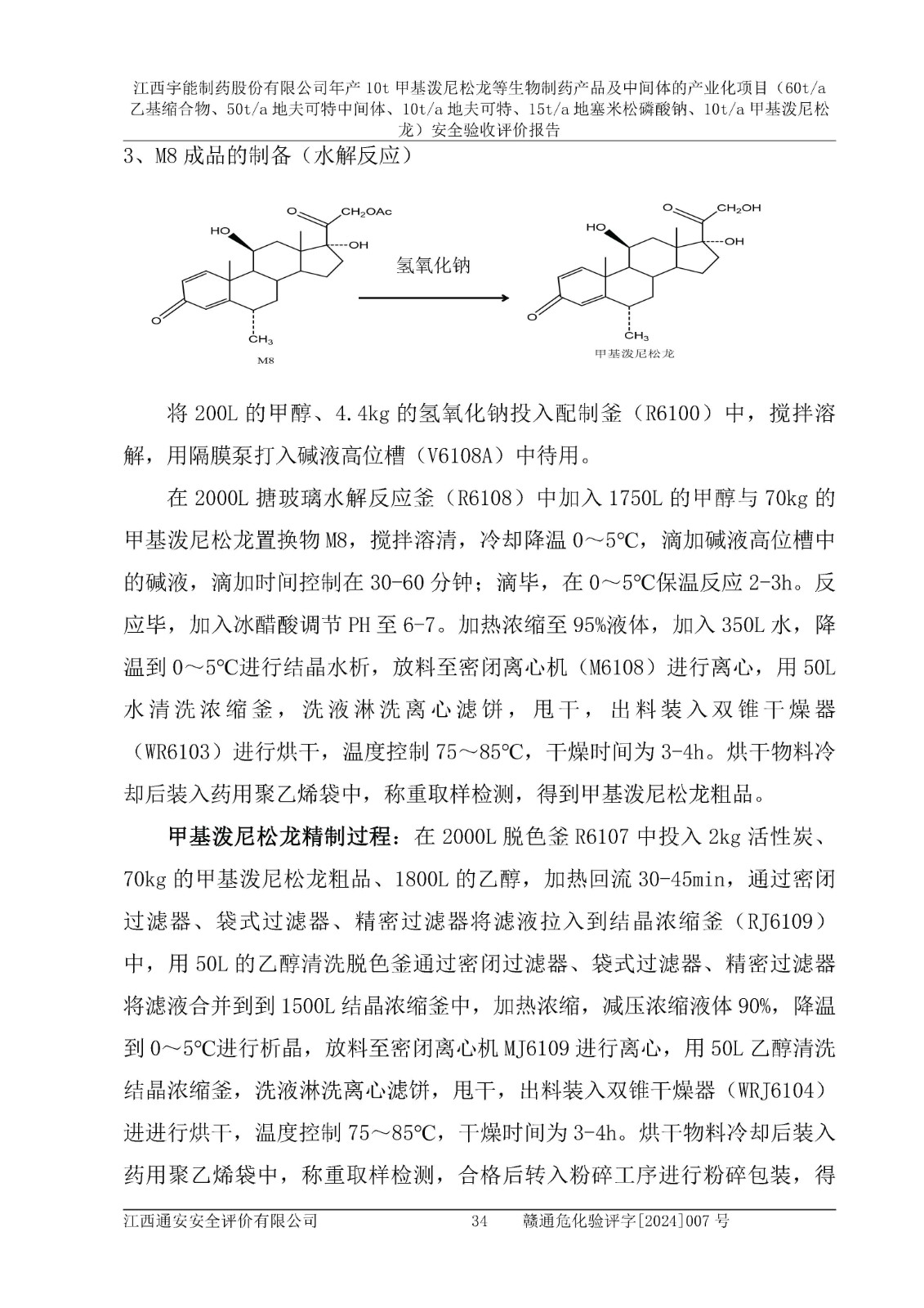 評(píng)價(jià)報(bào)告名稱 | 江西宇能制藥股份有限公司年產(chǎn)10t甲基潑尼松龍等生物制藥產(chǎn)品及中間體的產(chǎn)業(yè)化項(xiàng)目(60t/a乙基縮合物、50t/a地夫可特中間體、10t/a地夫可特、15t/a地塞米松磷酸鈉、10t/a甲基潑尼松龍)安全驗(yàn)收評(píng)價(jià)報(bào)告 | |||