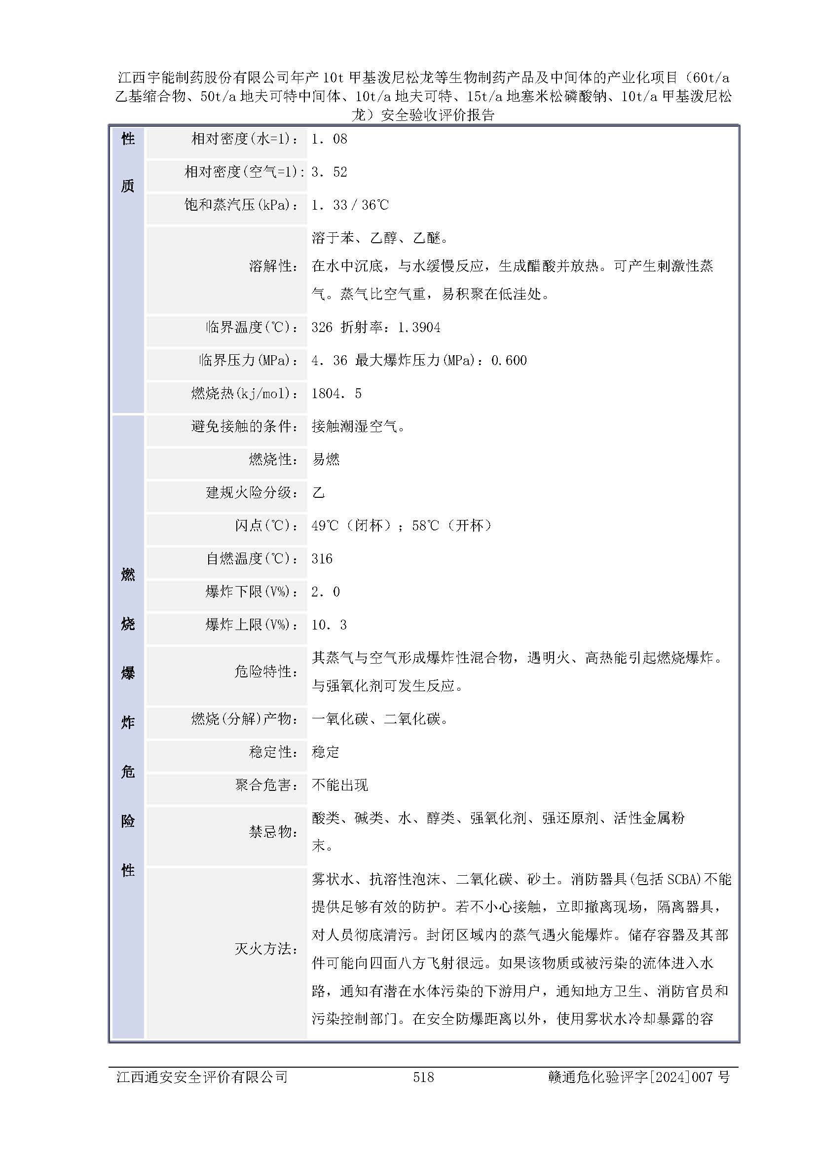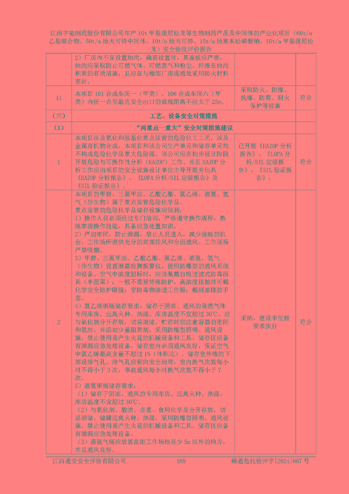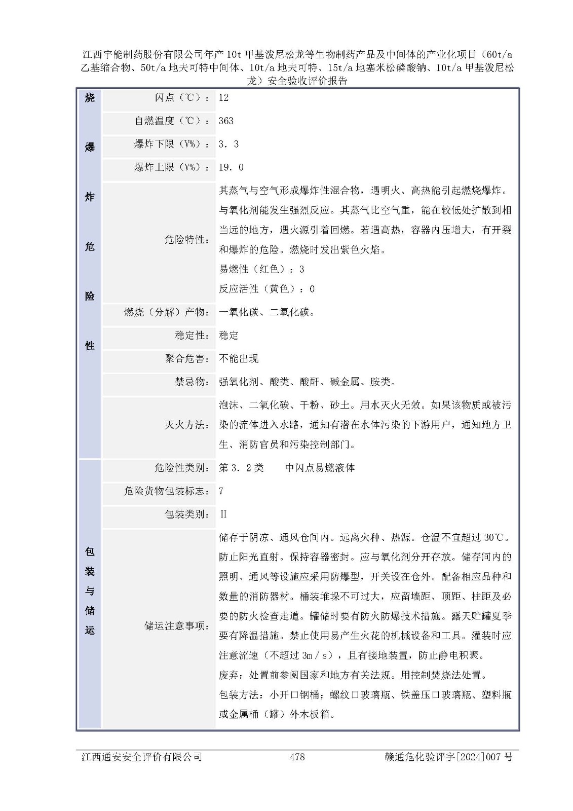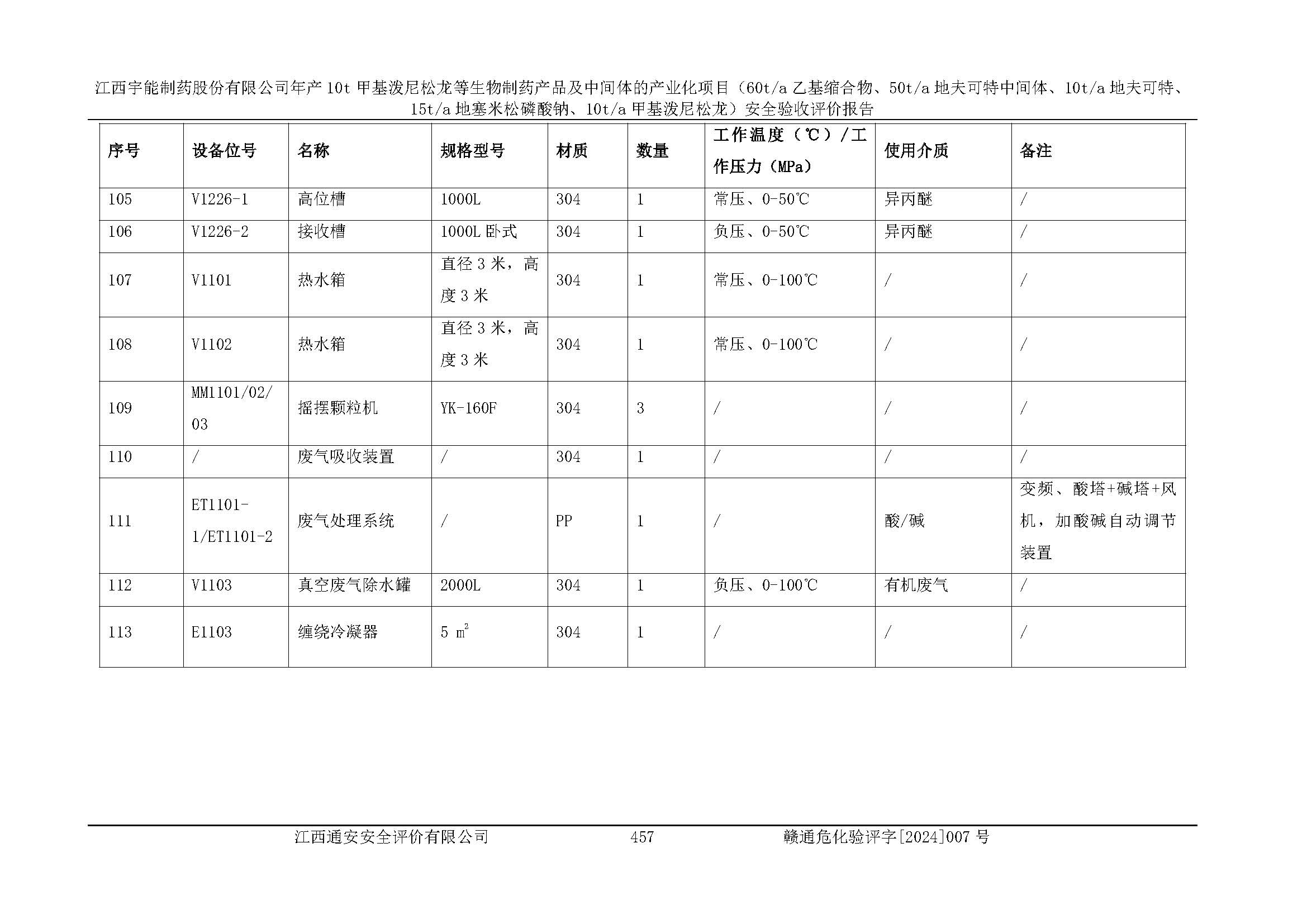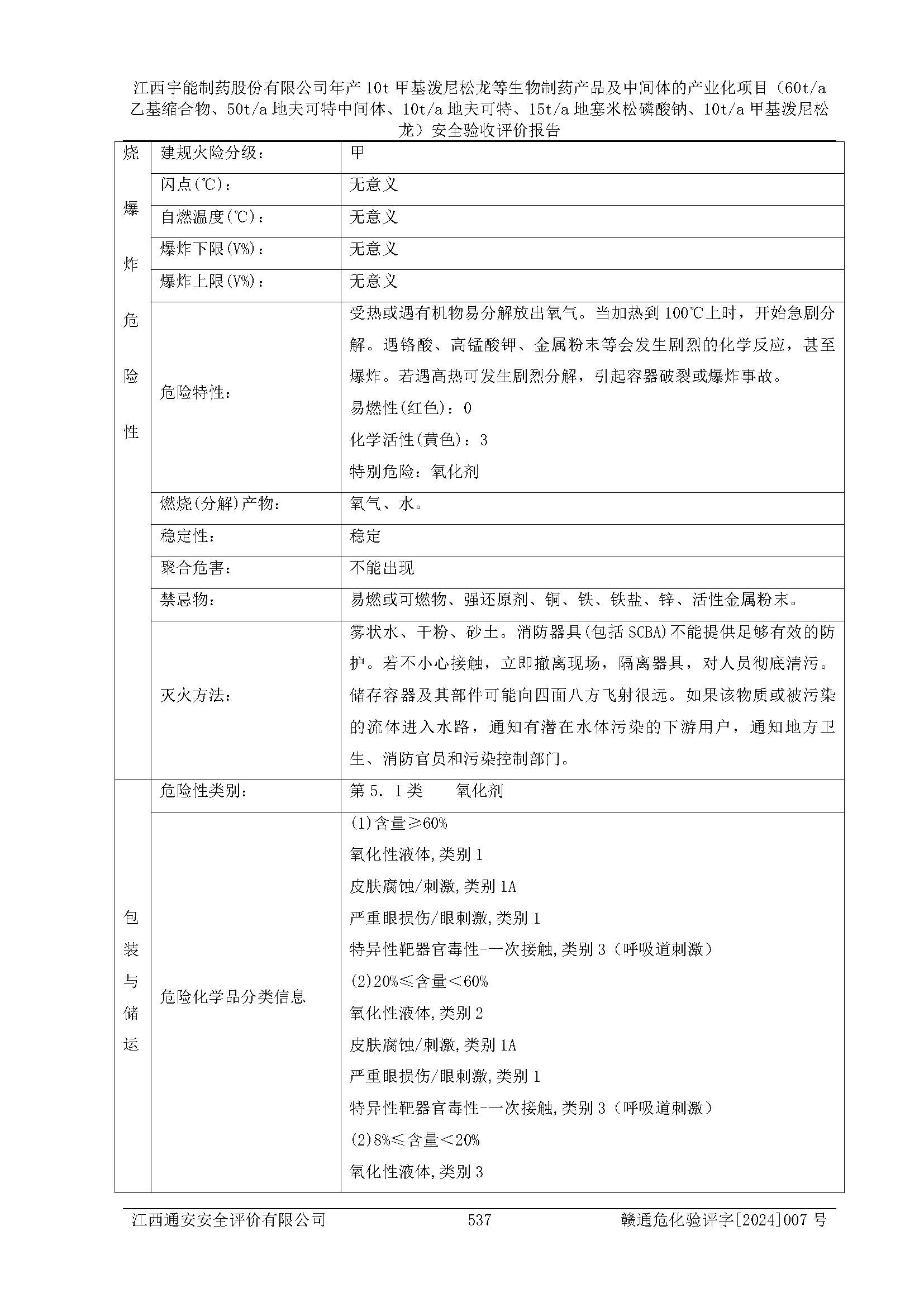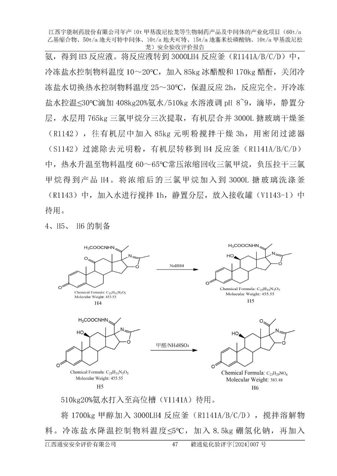 評(píng)價(jià)報(bào)告名稱 | 江西宇能制藥股份有限公司年產(chǎn)10t甲基潑尼松龍等生物制藥產(chǎn)品及中間體的產(chǎn)業(yè)化項(xiàng)目(60t/a乙基縮合物、50t/a地夫可特中間體、10t/a地夫可特、15t/a地塞米松磷酸鈉、10t/a甲基潑尼松龍)安全驗(yàn)收評(píng)價(jià)報(bào)告 | |||