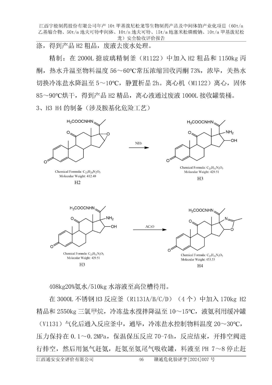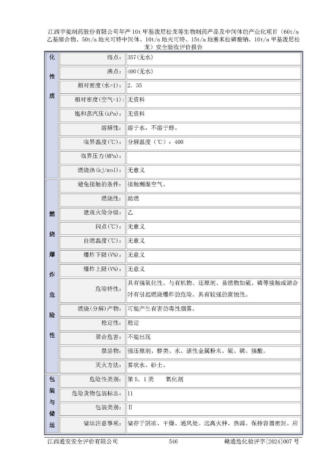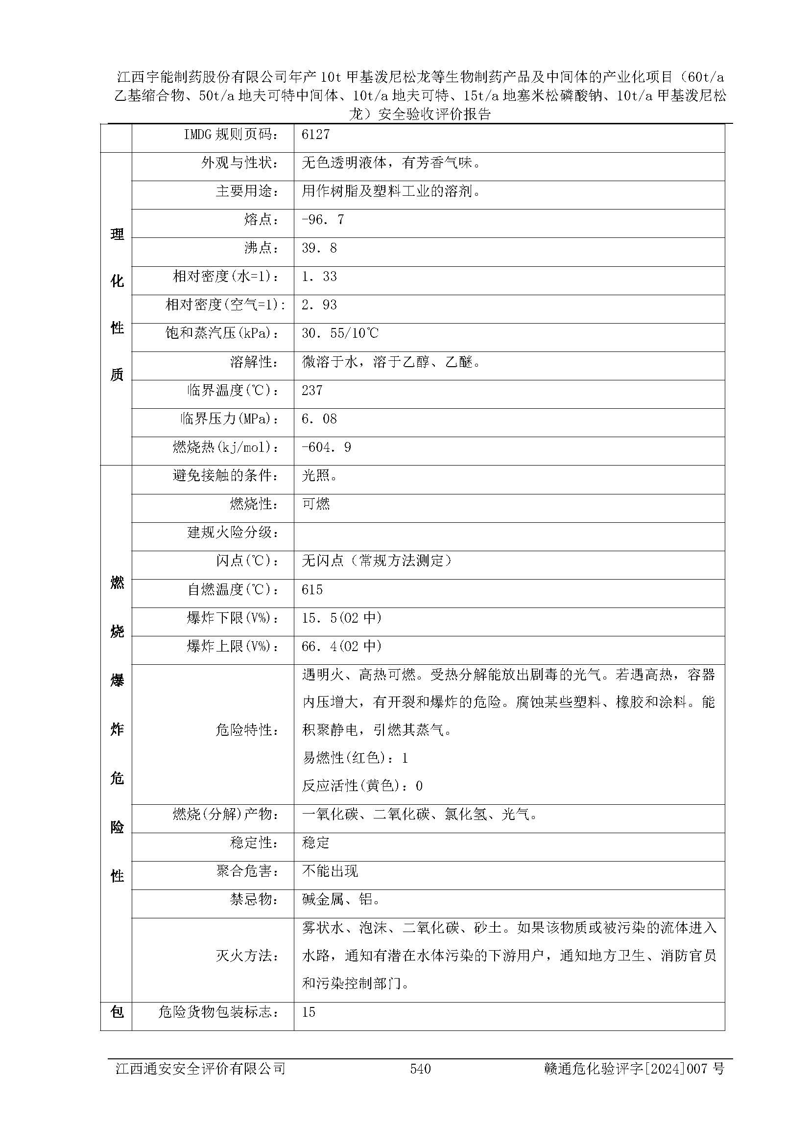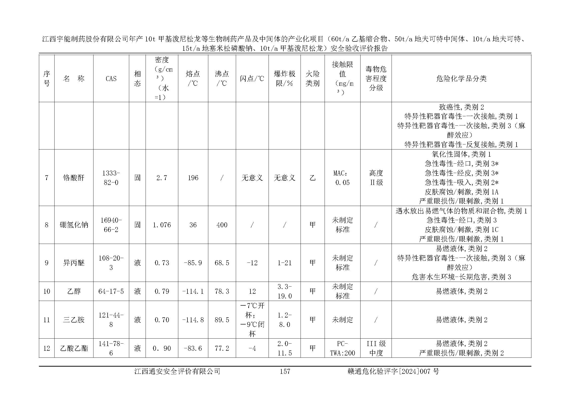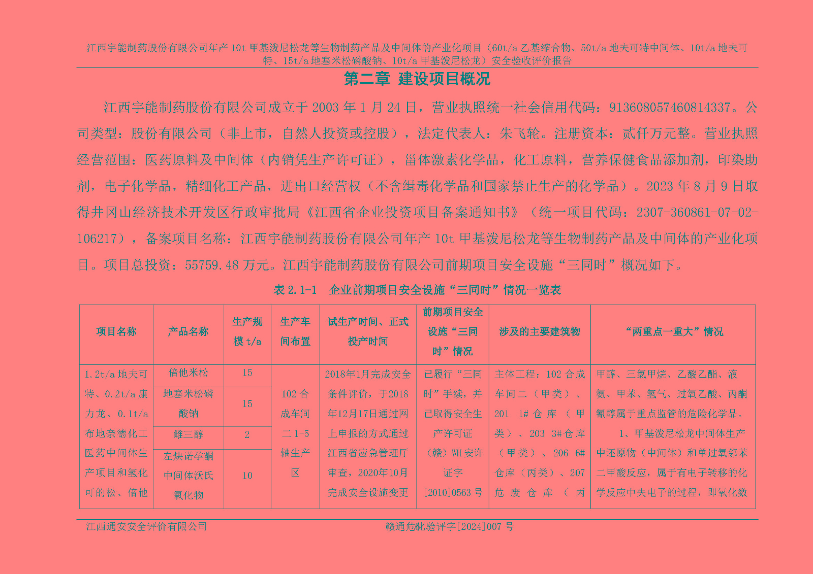 評(píng)價(jià)報(bào)告名稱 | 江西宇能制藥股份有限公司年產(chǎn)10t甲基潑尼松龍等生物制藥產(chǎn)品及中間體的產(chǎn)業(yè)化項(xiàng)目(60t/a乙基縮合物、50t/a地夫可特中間體、10t/a地夫可特、15t/a地塞米松磷酸鈉、10t/a甲基潑尼松龍)安全驗(yàn)收評(píng)價(jià)報(bào)告 | |||