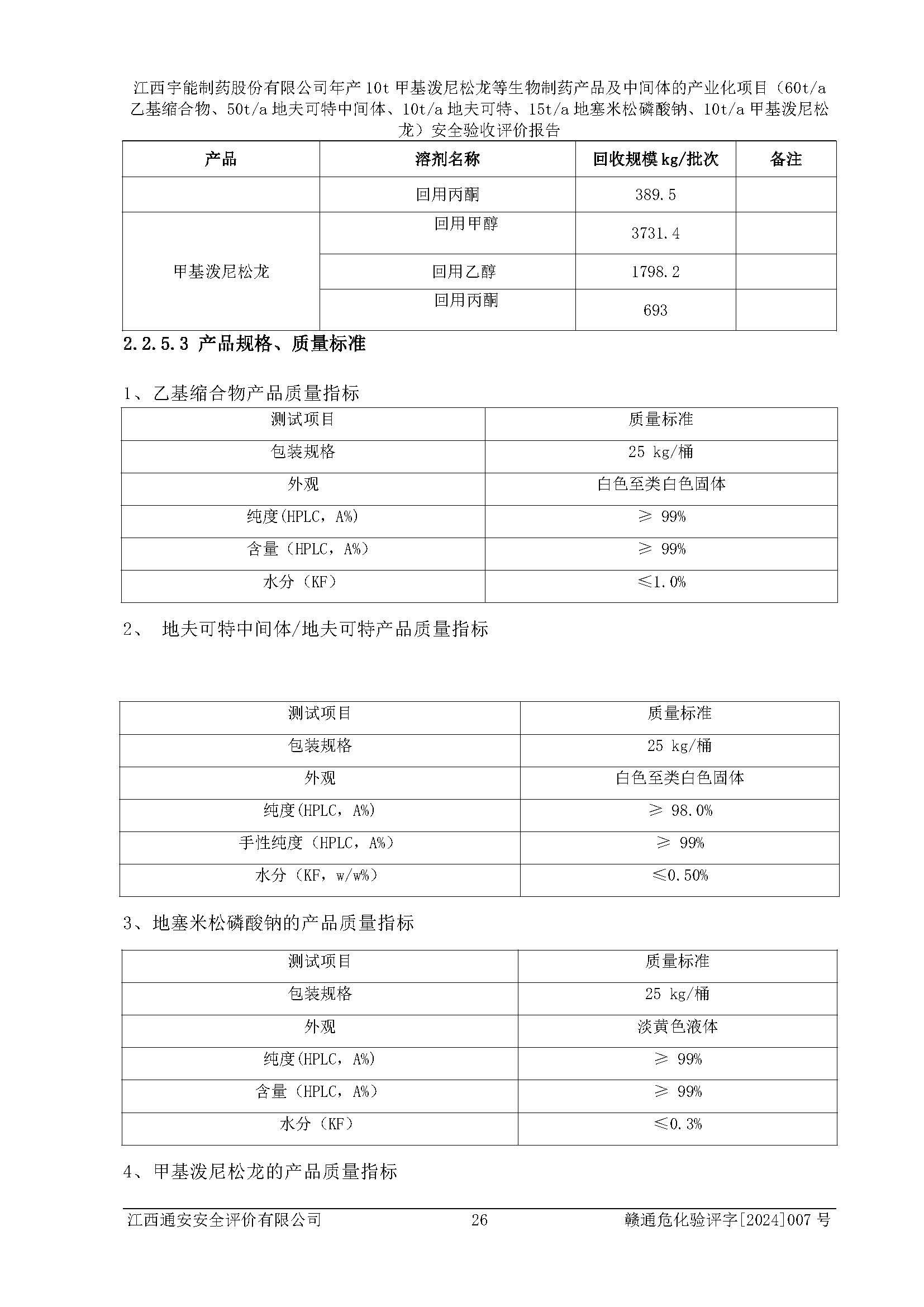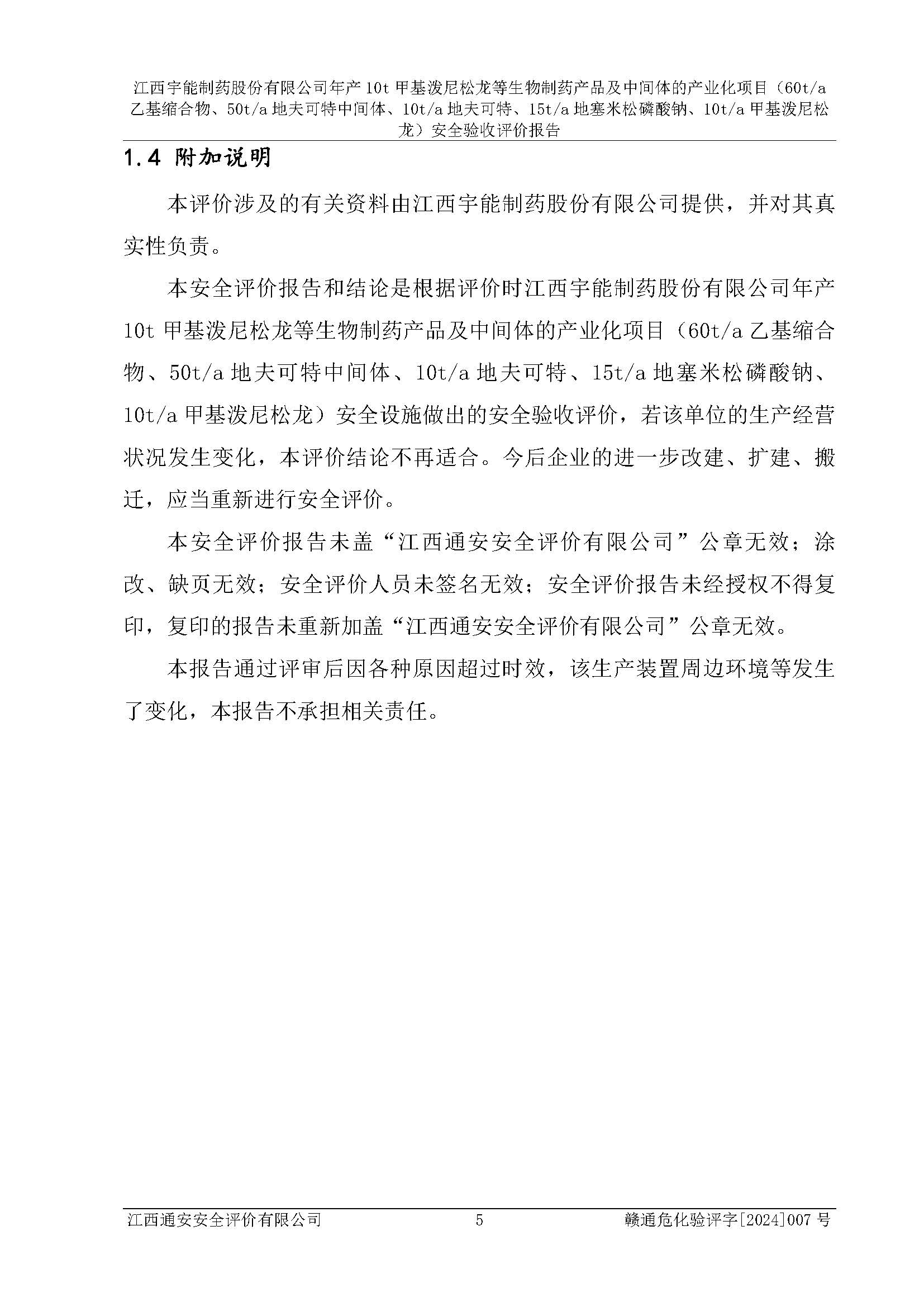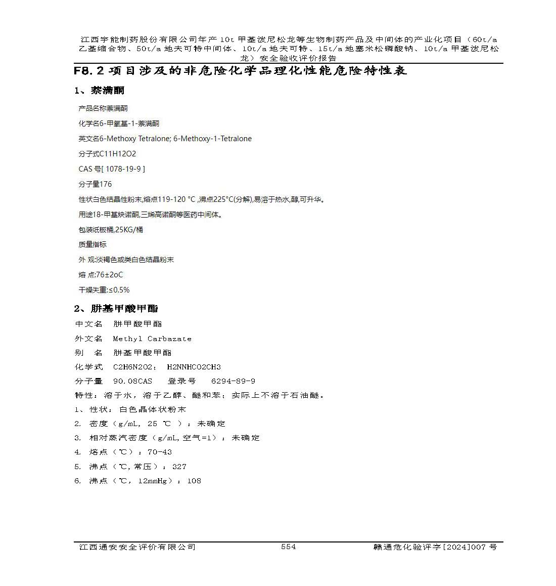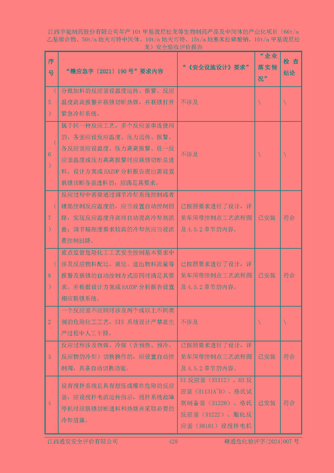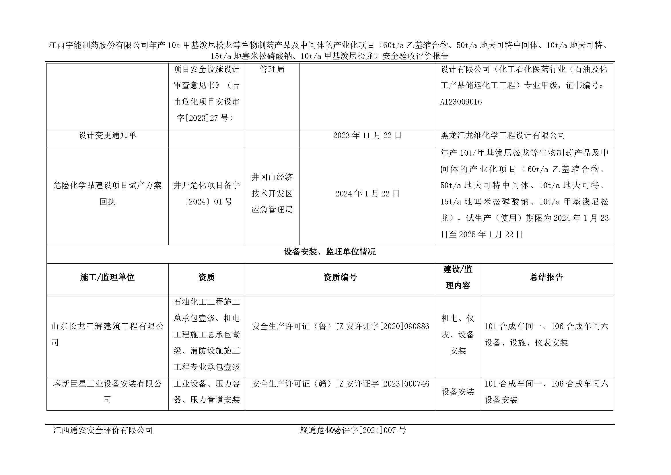 評(píng)價(jià)報(bào)告名稱 | 江西宇能制藥股份有限公司年產(chǎn)10t甲基潑尼松龍等生物制藥產(chǎn)品及中間體的產(chǎn)業(yè)化項(xiàng)目(60t/a乙基縮合物、50t/a地夫可特中間體、10t/a地夫可特、15t/a地塞米松磷酸鈉、10t/a甲基潑尼松龍)安全驗(yàn)收評(píng)價(jià)報(bào)告 | |||