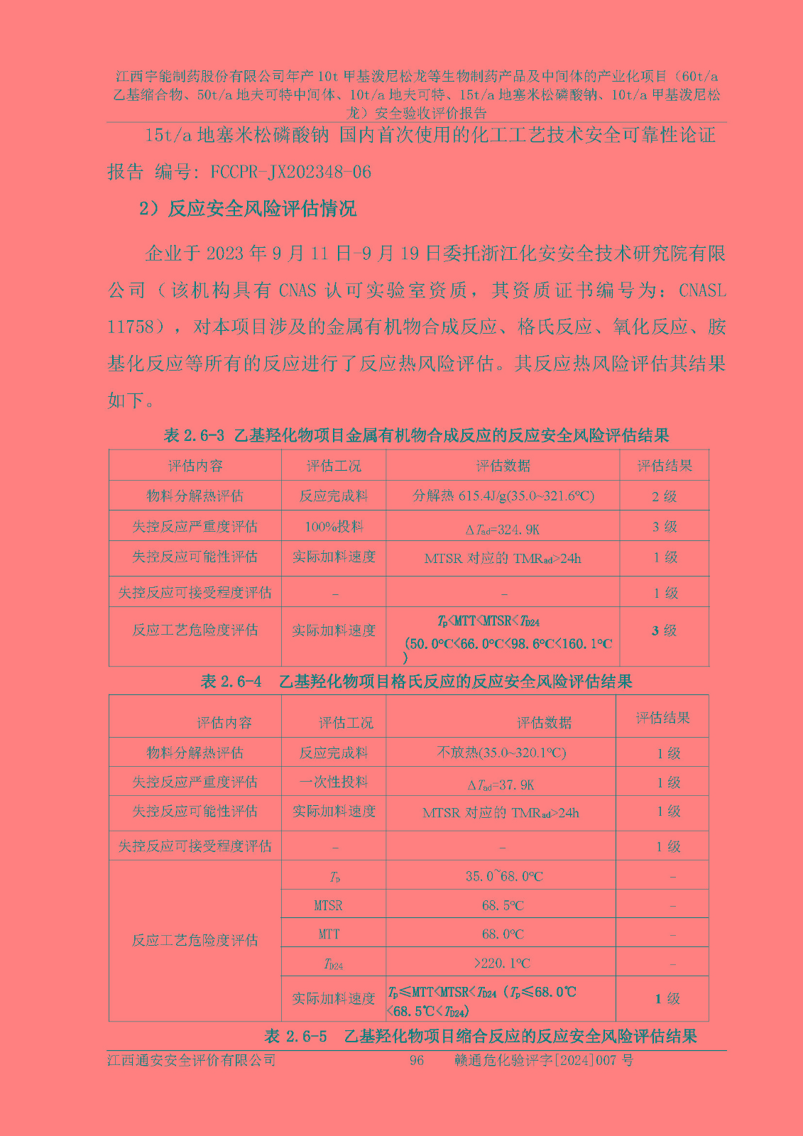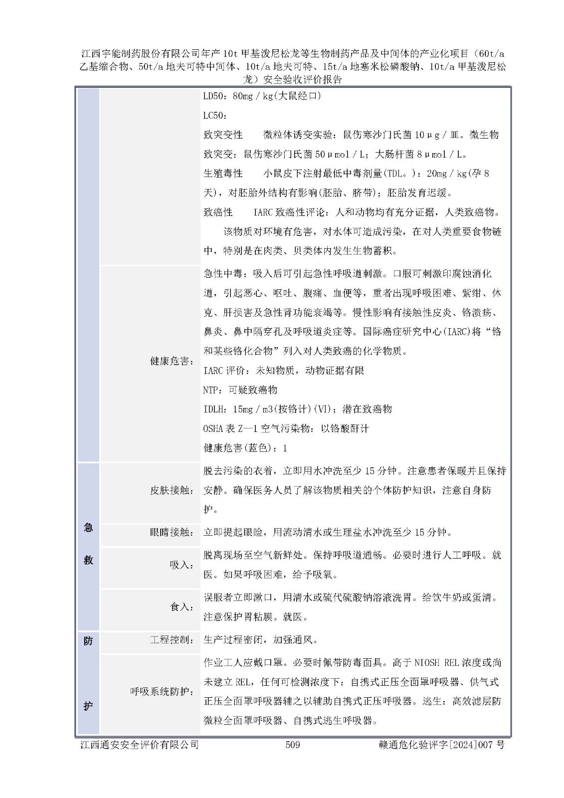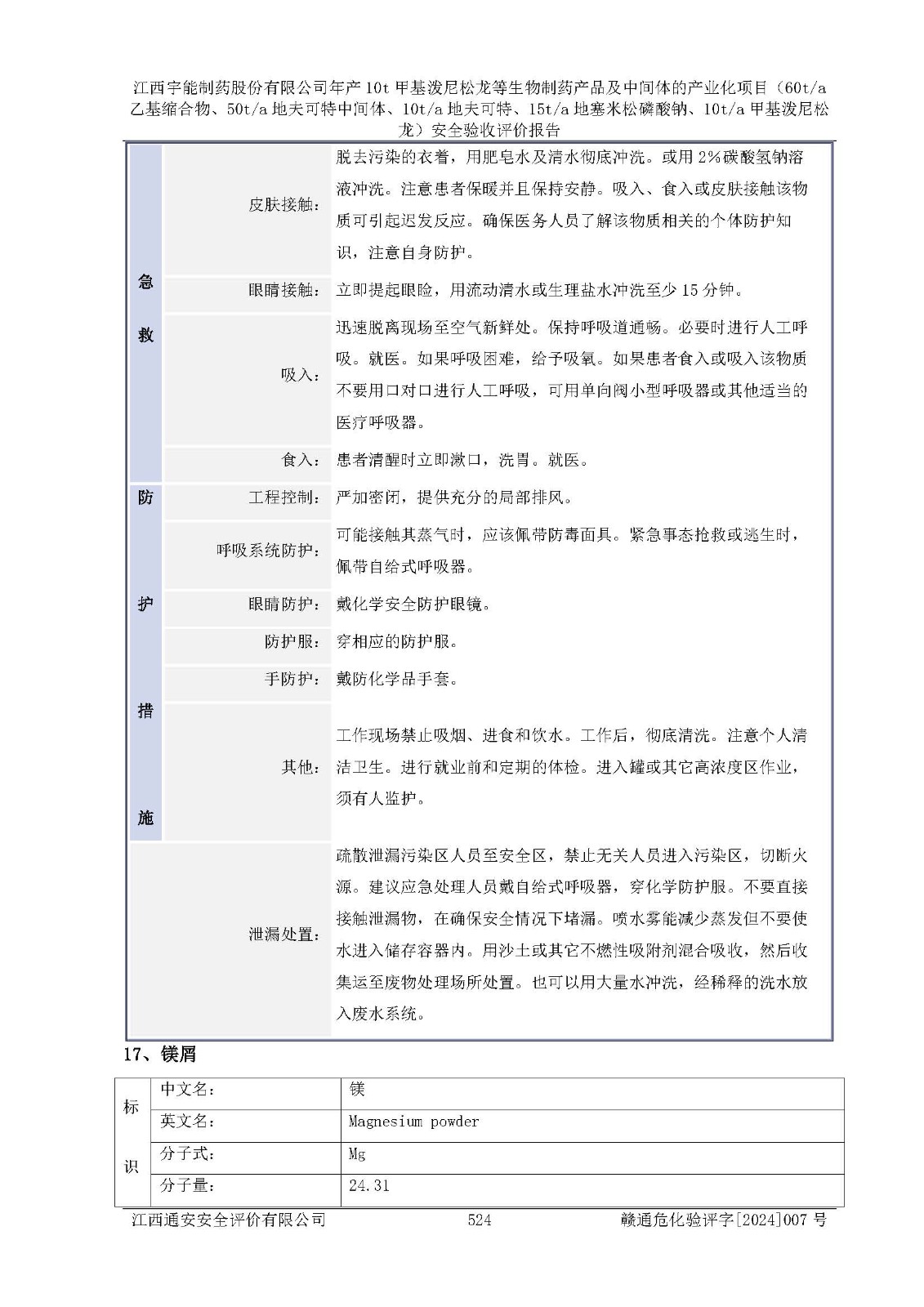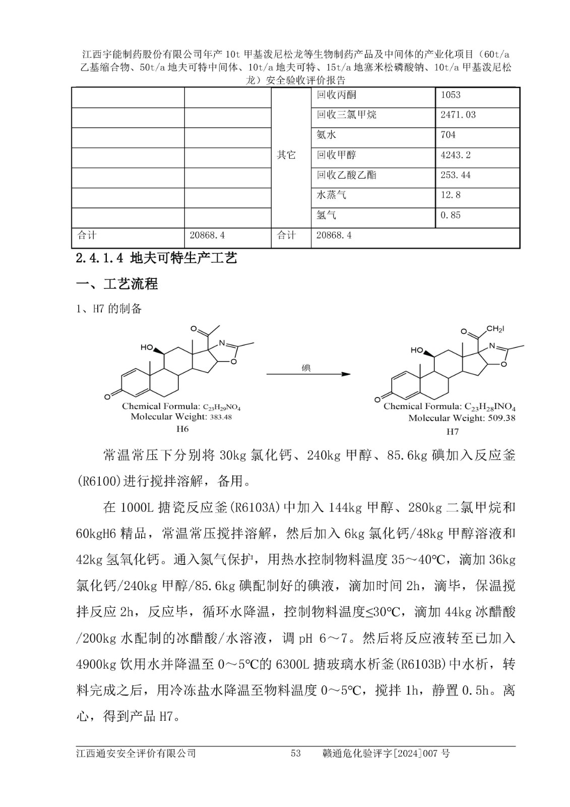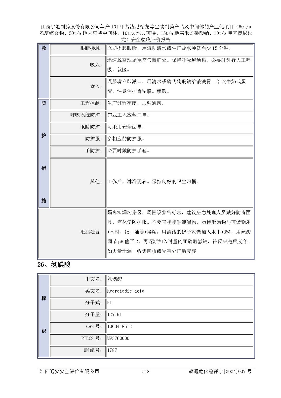評(píng)價(jià)報(bào)告名稱 | 江西宇能制藥股份有限公司年產(chǎn)10t甲基潑尼松龍等生物制藥產(chǎn)品及中間體的產(chǎn)業(yè)化項(xiàng)目(60t/a乙基縮合物、50t/a地夫可特中間體、10t/a地夫可特、15t/a地塞米松磷酸鈉、10t/a甲基潑尼松龍)安全驗(yàn)收評(píng)價(jià)報(bào)告 | |||