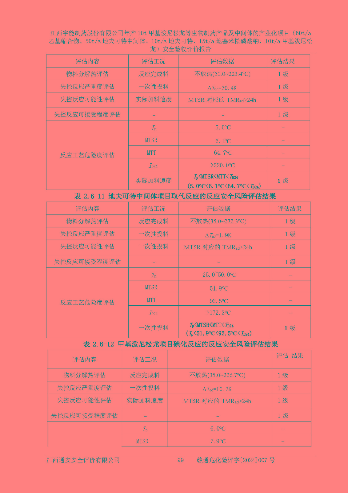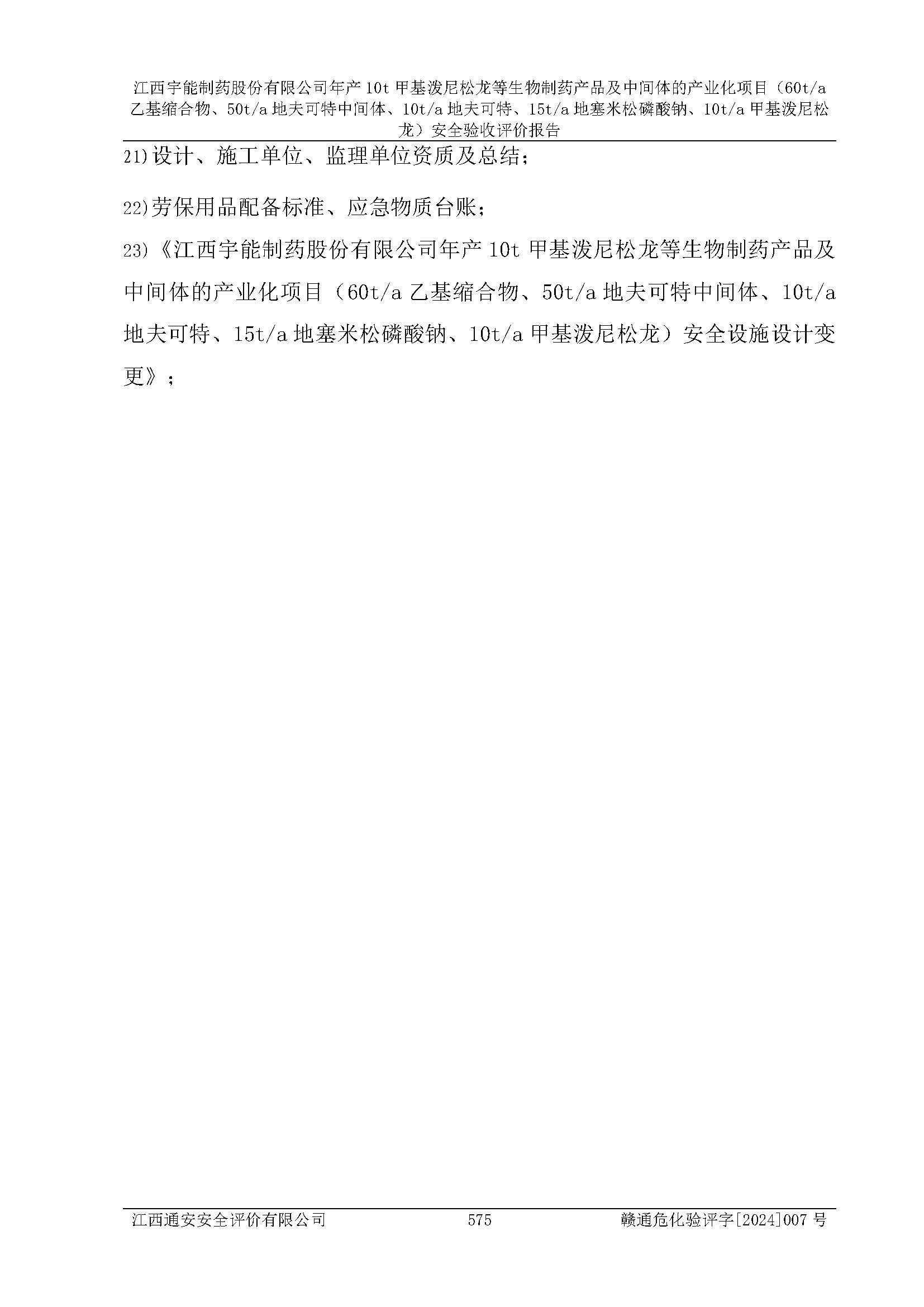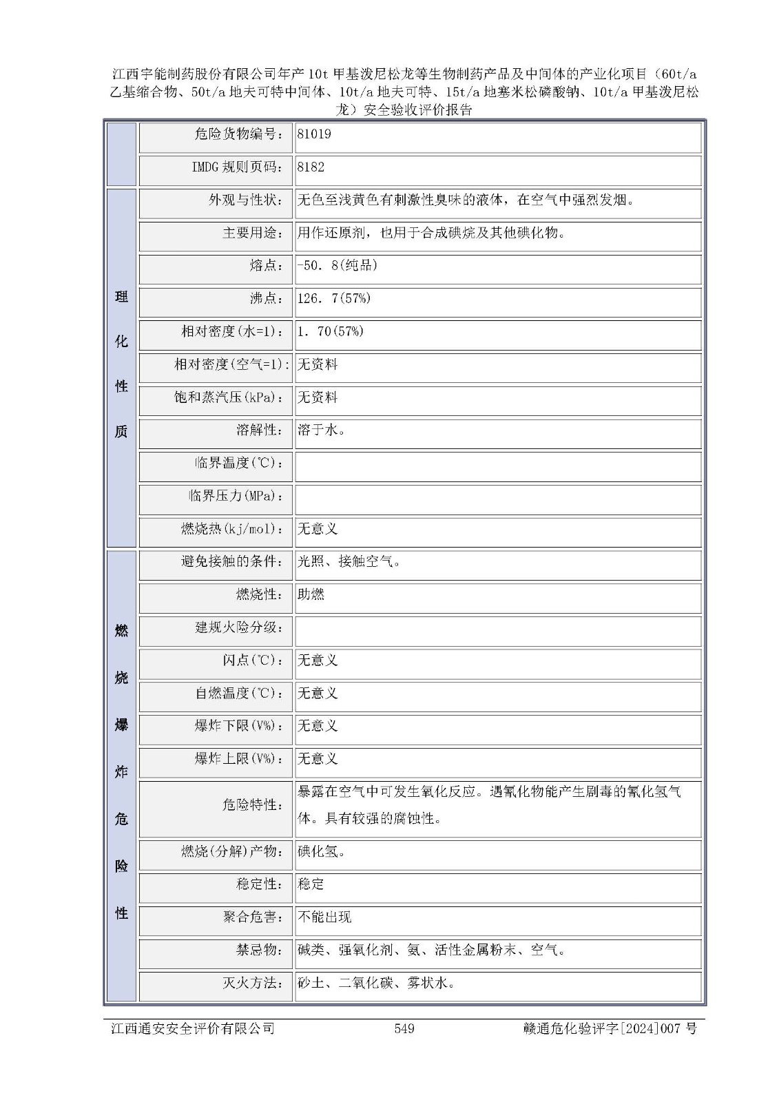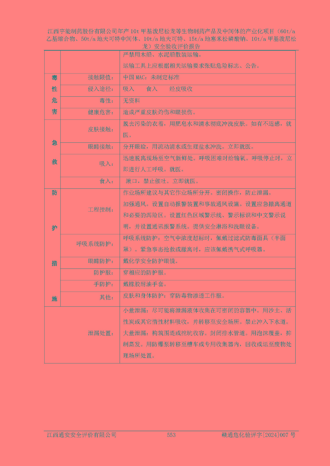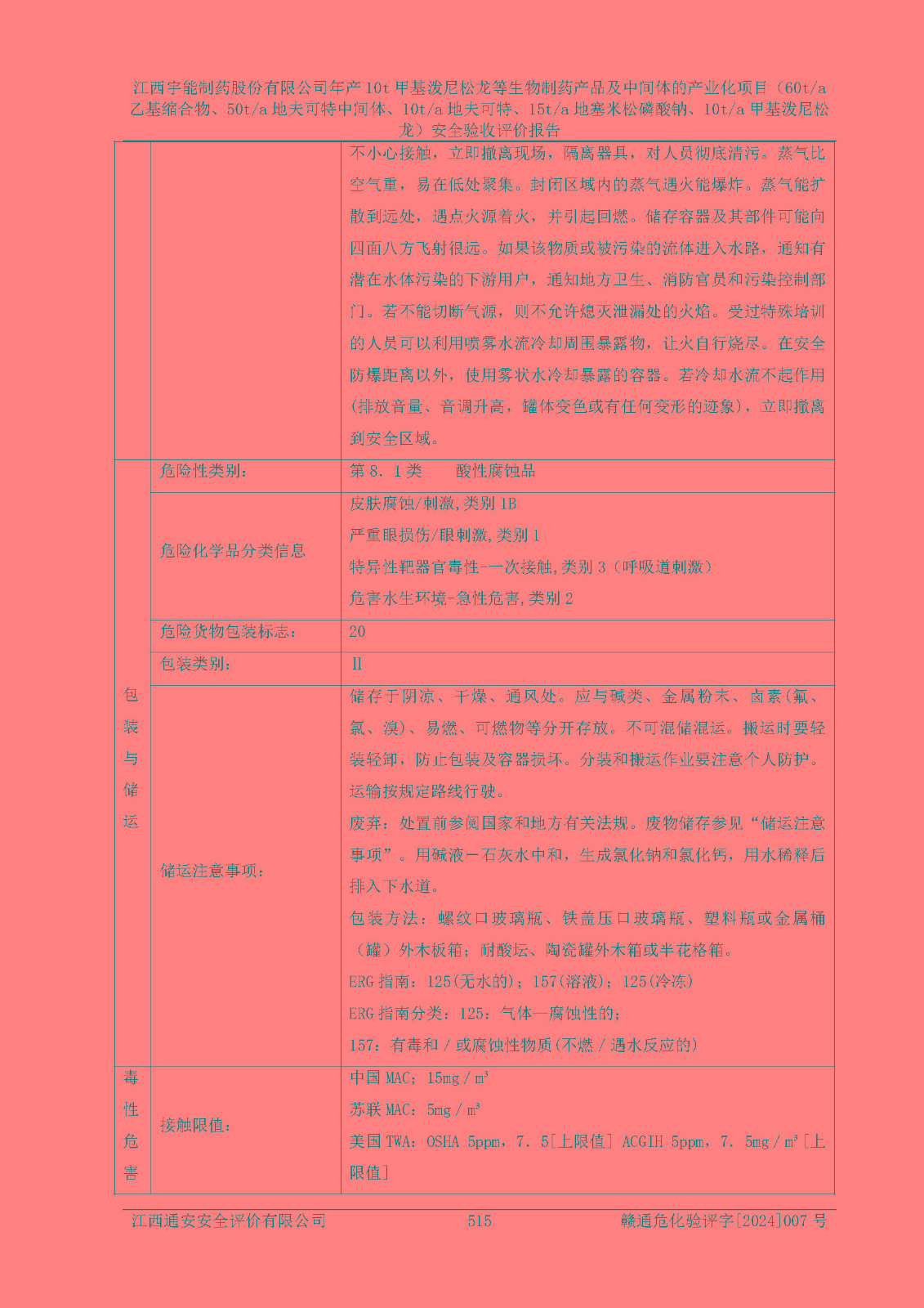 評(píng)價(jià)報(bào)告名稱 | 江西宇能制藥股份有限公司年產(chǎn)10t甲基潑尼松龍等生物制藥產(chǎn)品及中間體的產(chǎn)業(yè)化項(xiàng)目(60t/a乙基縮合物、50t/a地夫可特中間體、10t/a地夫可特、15t/a地塞米松磷酸鈉、10t/a甲基潑尼松龍)安全驗(yàn)收評(píng)價(jià)報(bào)告 | |||