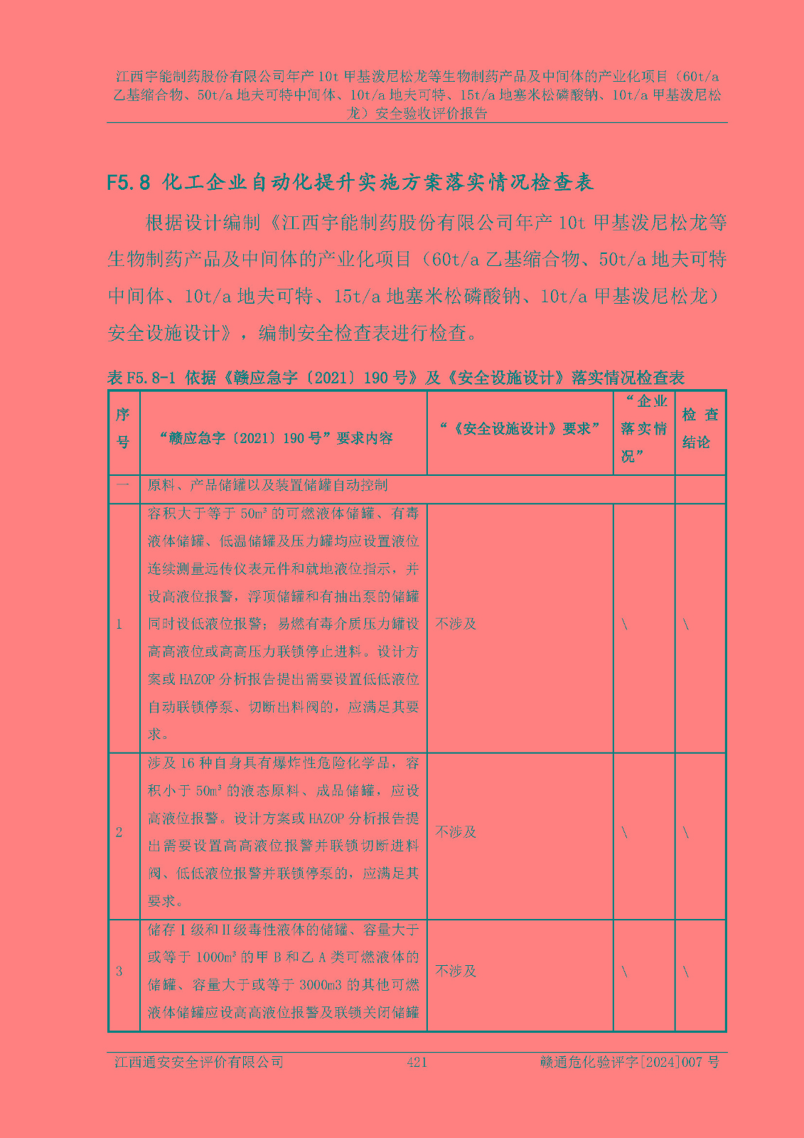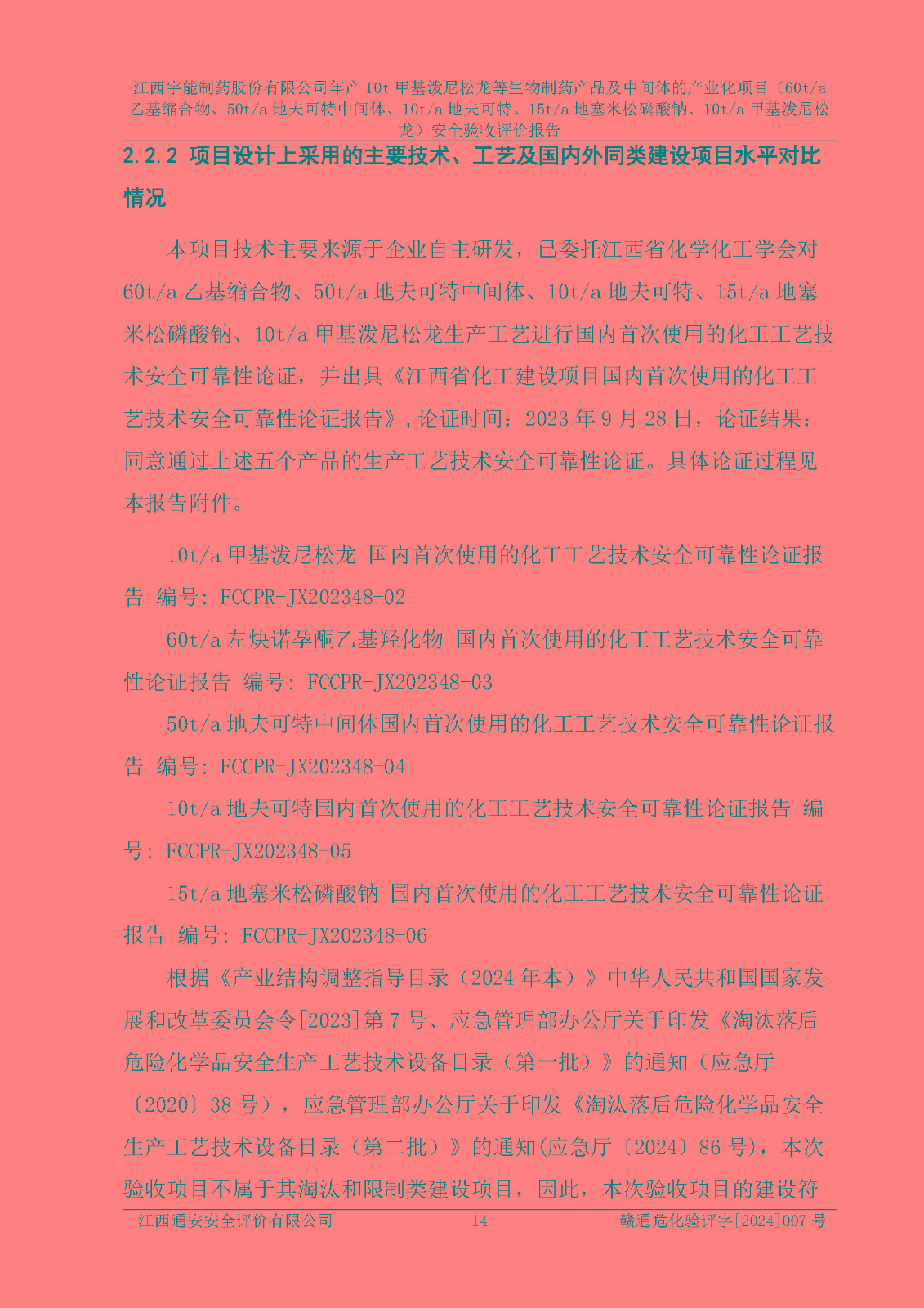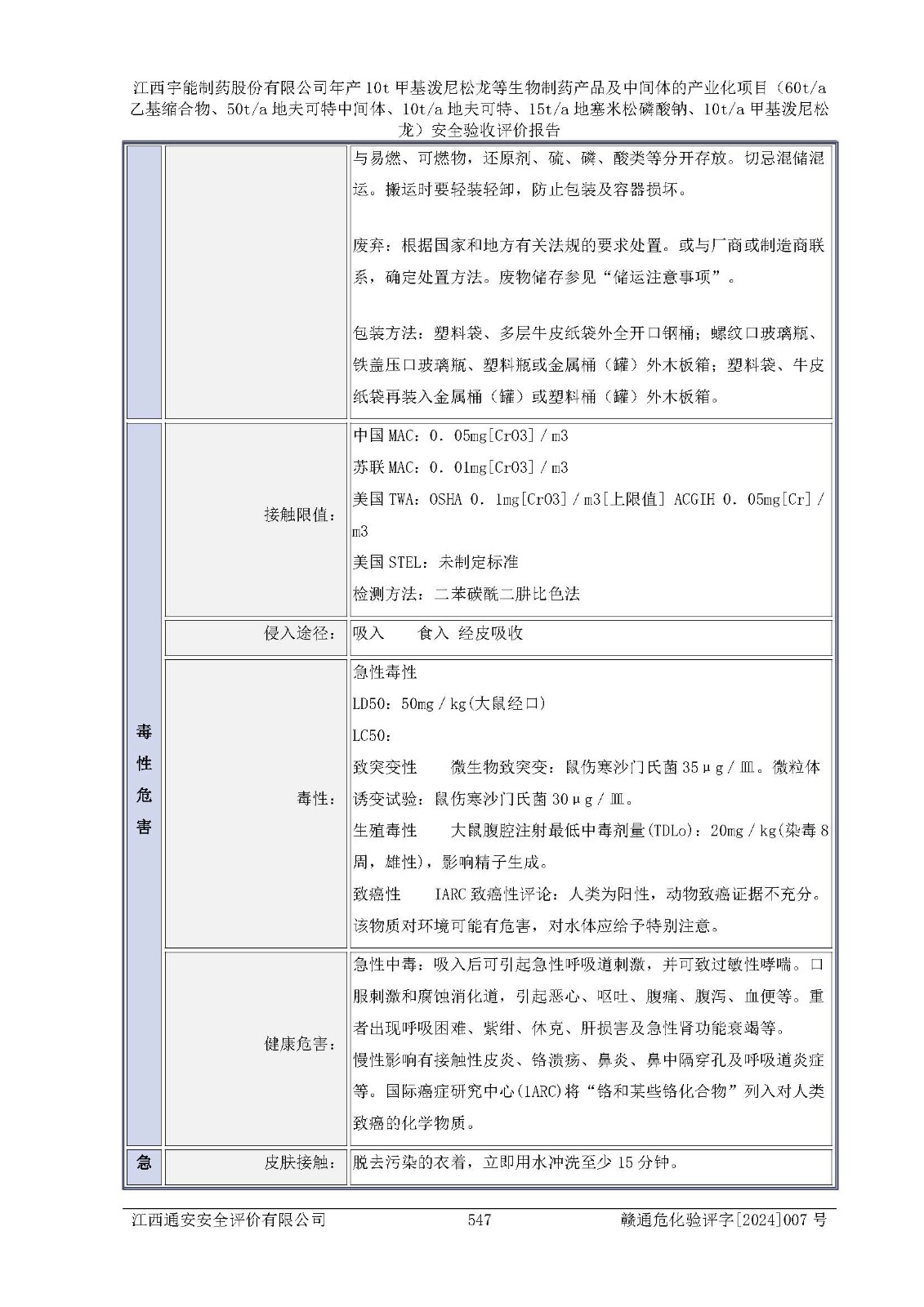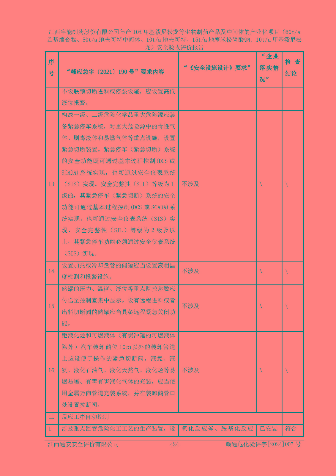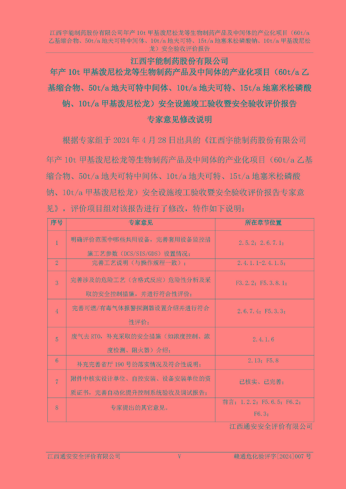 評(píng)價(jià)報(bào)告名稱 | 江西宇能制藥股份有限公司年產(chǎn)10t甲基潑尼松龍等生物制藥產(chǎn)品及中間體的產(chǎn)業(yè)化項(xiàng)目(60t/a乙基縮合物、50t/a地夫可特中間體、10t/a地夫可特、15t/a地塞米松磷酸鈉、10t/a甲基潑尼松龍)安全驗(yàn)收評(píng)價(jià)報(bào)告 | |||