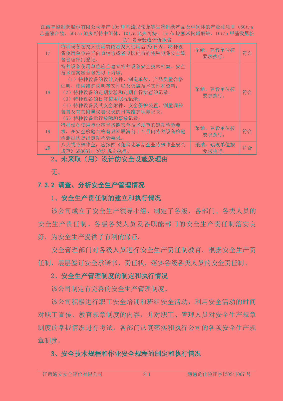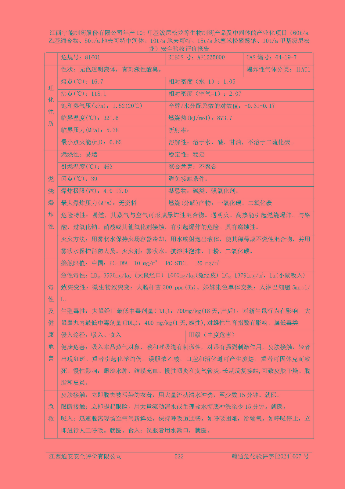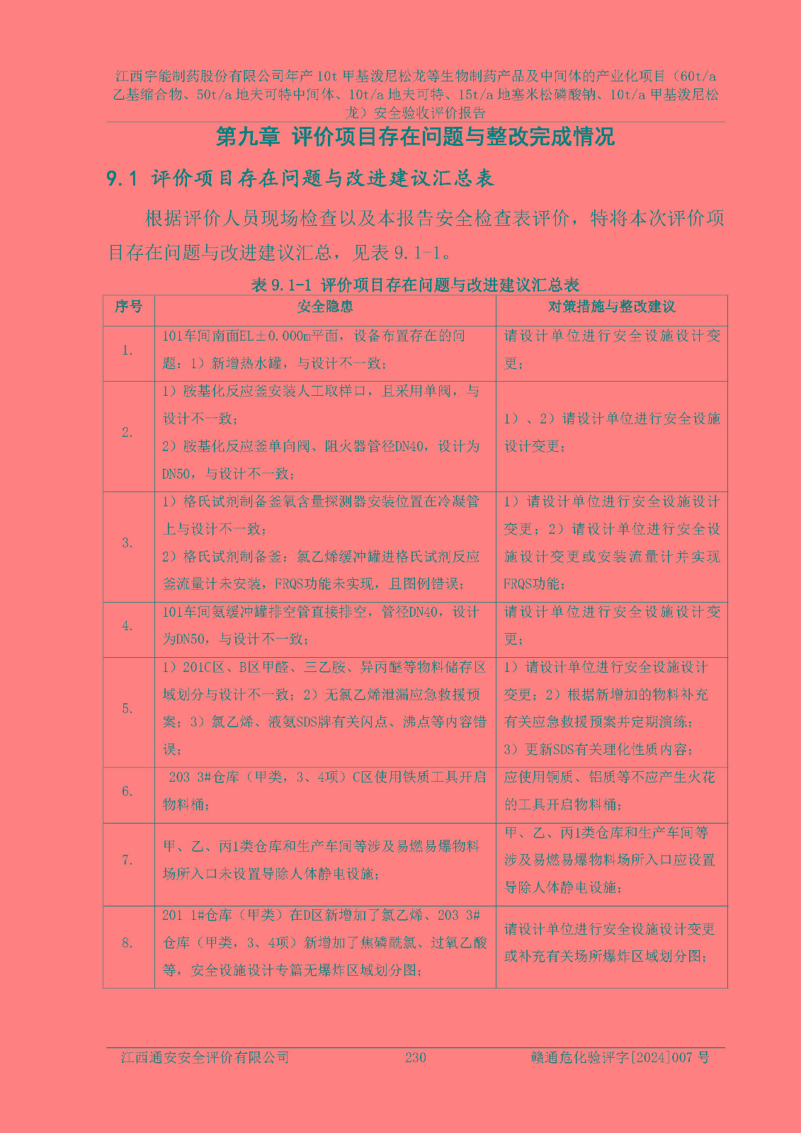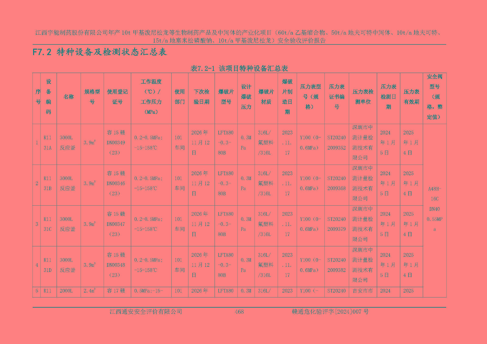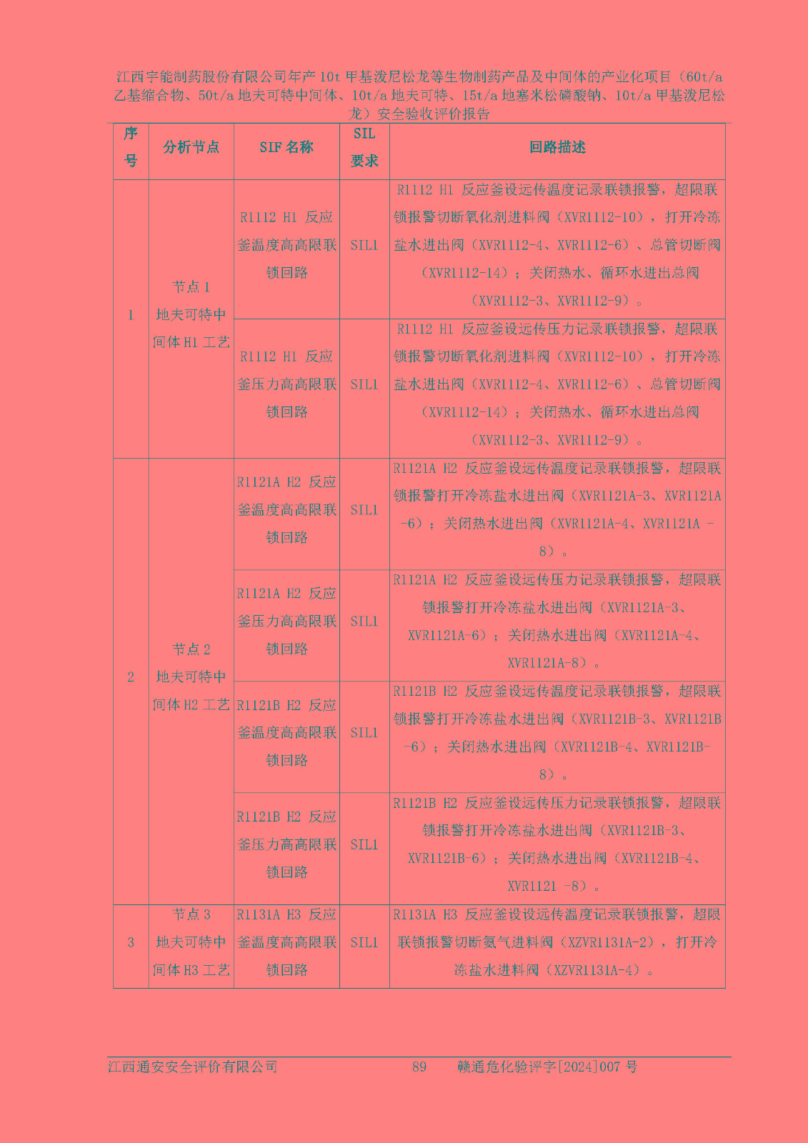 評(píng)價(jià)報(bào)告名稱 | 江西宇能制藥股份有限公司年產(chǎn)10t甲基潑尼松龍等生物制藥產(chǎn)品及中間體的產(chǎn)業(yè)化項(xiàng)目(60t/a乙基縮合物、50t/a地夫可特中間體、10t/a地夫可特、15t/a地塞米松磷酸鈉、10t/a甲基潑尼松龍)安全驗(yàn)收評(píng)價(jià)報(bào)告 | |||