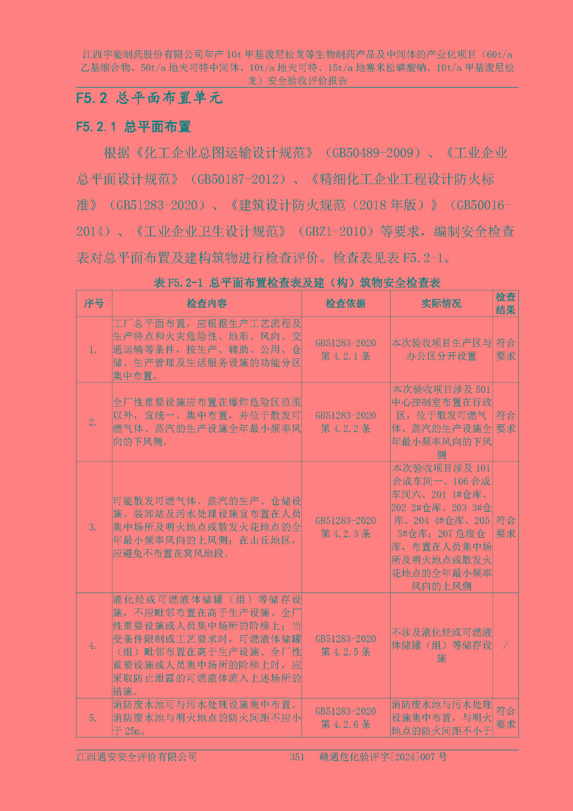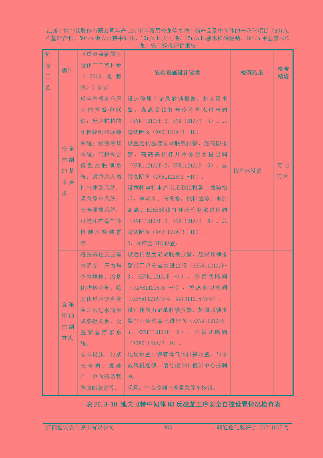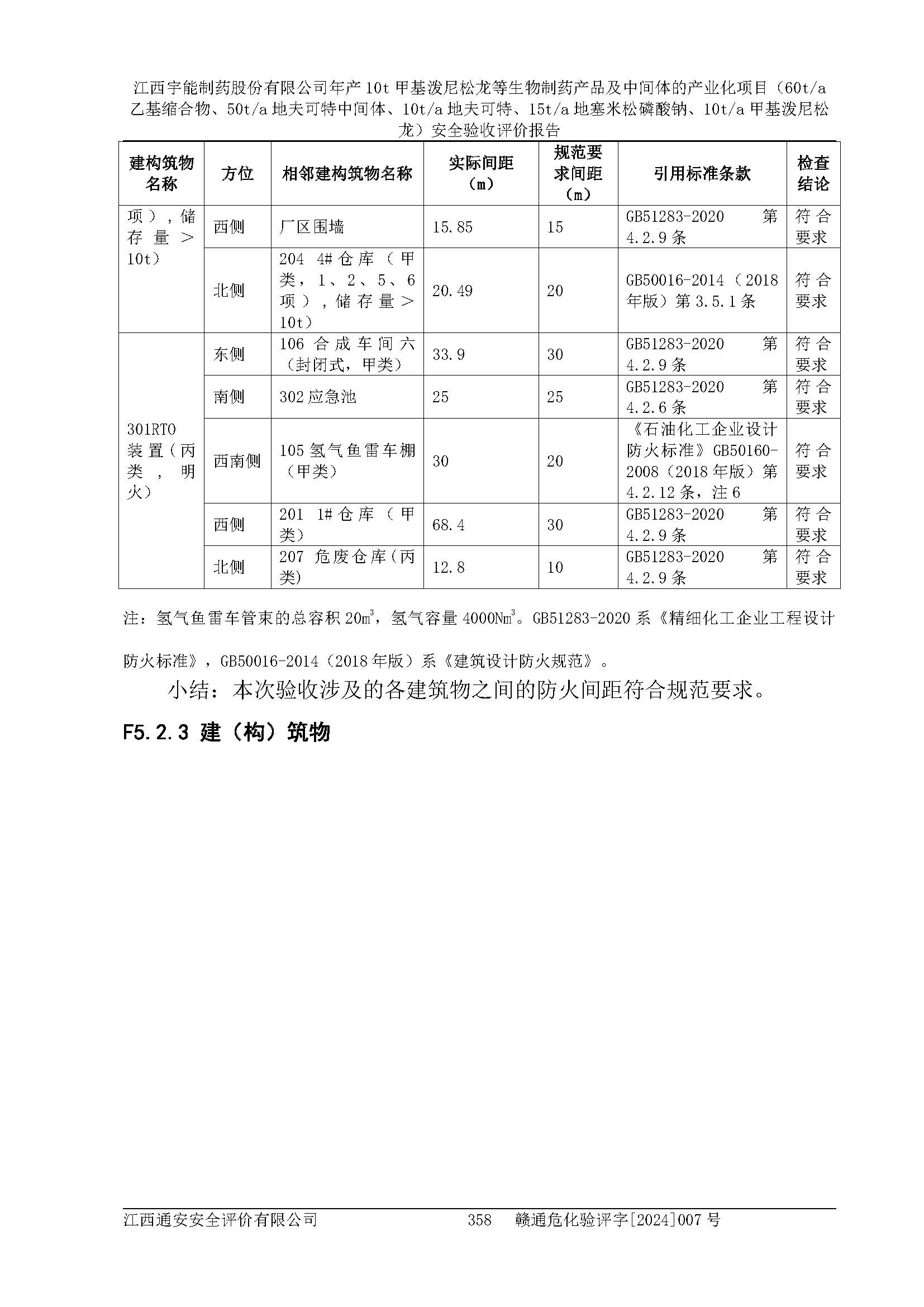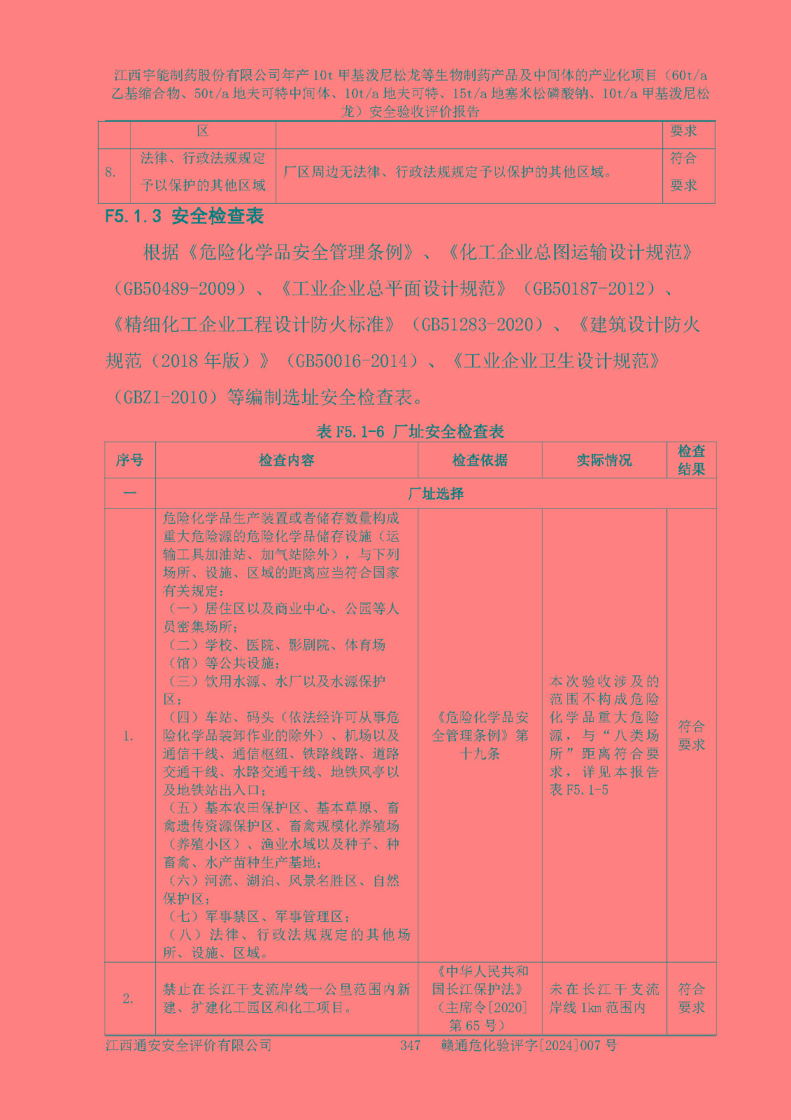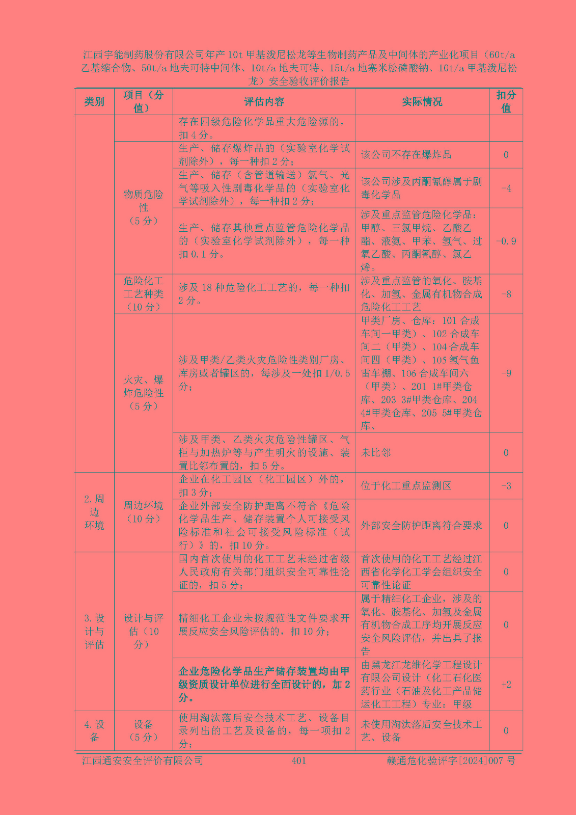 評(píng)價(jià)結(jié)論 | 評(píng)價(jià)結(jié)論:本評(píng)價(jià)認(rèn)為,江西宇能制藥股份有限公司年產(chǎn)10t甲基潑尼松龍等生物制藥產(chǎn)品及中間體的產(chǎn)業(yè)化項(xiàng)目(60t/a乙基縮合物、50t/a地夫可特中間體、10t/a地夫可特、15t/a地塞米松磷酸鈉、10t/a甲基潑尼松龍)工藝設(shè)備和安全設(shè)施運(yùn)行正常,該公司安全管理機(jī)制運(yùn)行正常,安全設(shè)施、措施達(dá)到設(shè)計(jì)要求和預(yù)期結(jié)果,可以滿足建設(shè)項(xiàng)目安全生產(chǎn)的要求,安全生產(chǎn)管理**,符合**有關(guān)安全生產(chǎn)法律、法規(guī)和有關(guān)標(biāo)準(zhǔn)、規(guī)范的要求,工程潛在的危險(xiǎn)、有害因素可得到**控制,風(fēng)險(xiǎn)在**控制和可接受范圍內(nèi)。具備安全設(shè)施竣工驗(yàn)收條件。 | |||