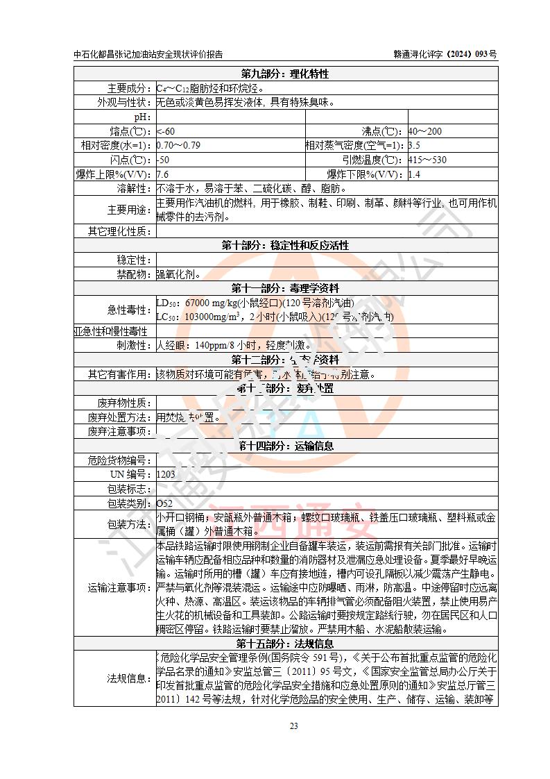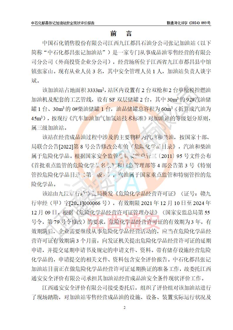 評價報告名稱 | 中國石化銷售股份有限公司江西九江都昌石油分公司張記加油站安全現狀評價報告 | |||