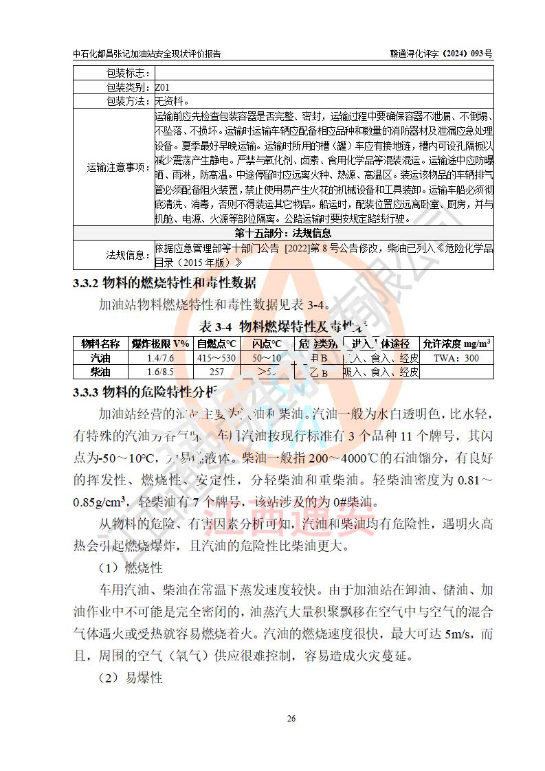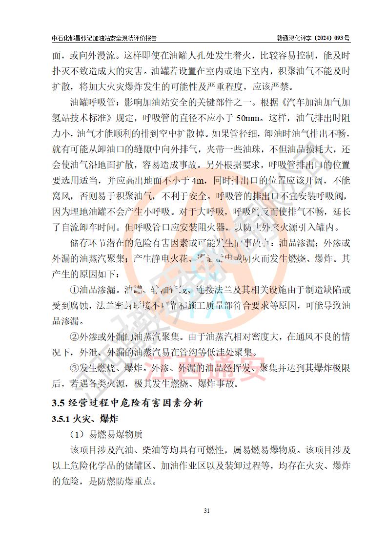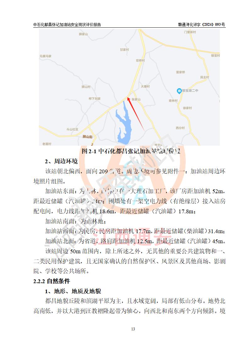 項目簡介 | 中國石化銷售股份有限公司江西九江都昌石油分公司張記加油站是一家專門從事成品油零售經營的有限公司分公司(外商投資企業(yè)分公司),經營場所位于江西省九江市都昌縣中館鎮(zhèn)張家山?,F有從業(yè)人員3名,其中安全管理人員1人,加油站負責人談宇斌。 該加油站占地面積3333m2,站區(qū)內設置有2臺雙槍和2臺單槍稅控燃油加油機及配套的工藝管線,設有SF雙層儲罐2臺,其中30m3的92#汽油儲罐1臺、30m3的0#柴油儲罐1臺,油品儲罐總容積為60m3(折算成汽油為45m3),按現行《汽車加油加氣加氫站技術標準》對加油站的等級劃分原則,屬三級加油站。 該站由九江市行政審批局換發(fā)《危險化學品經營許可證》(證號:贛九行審經(甲)字[2021]000066號),**期限2021年12月10日至2024年12月09日。 | |||