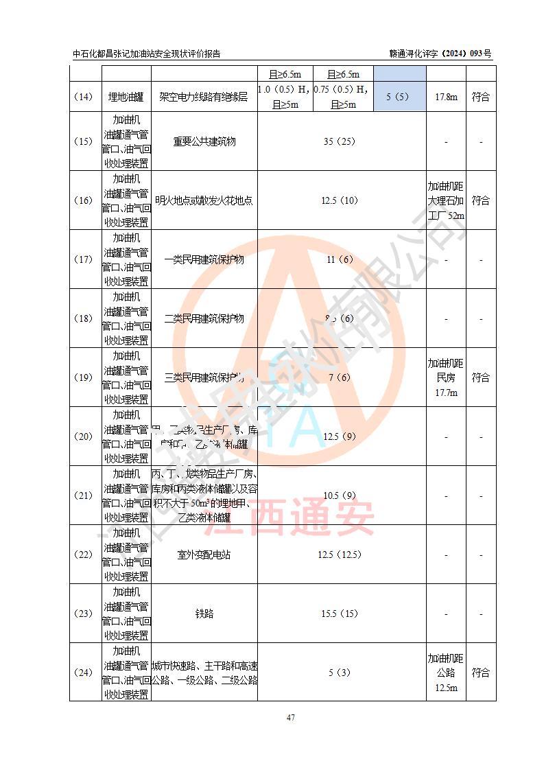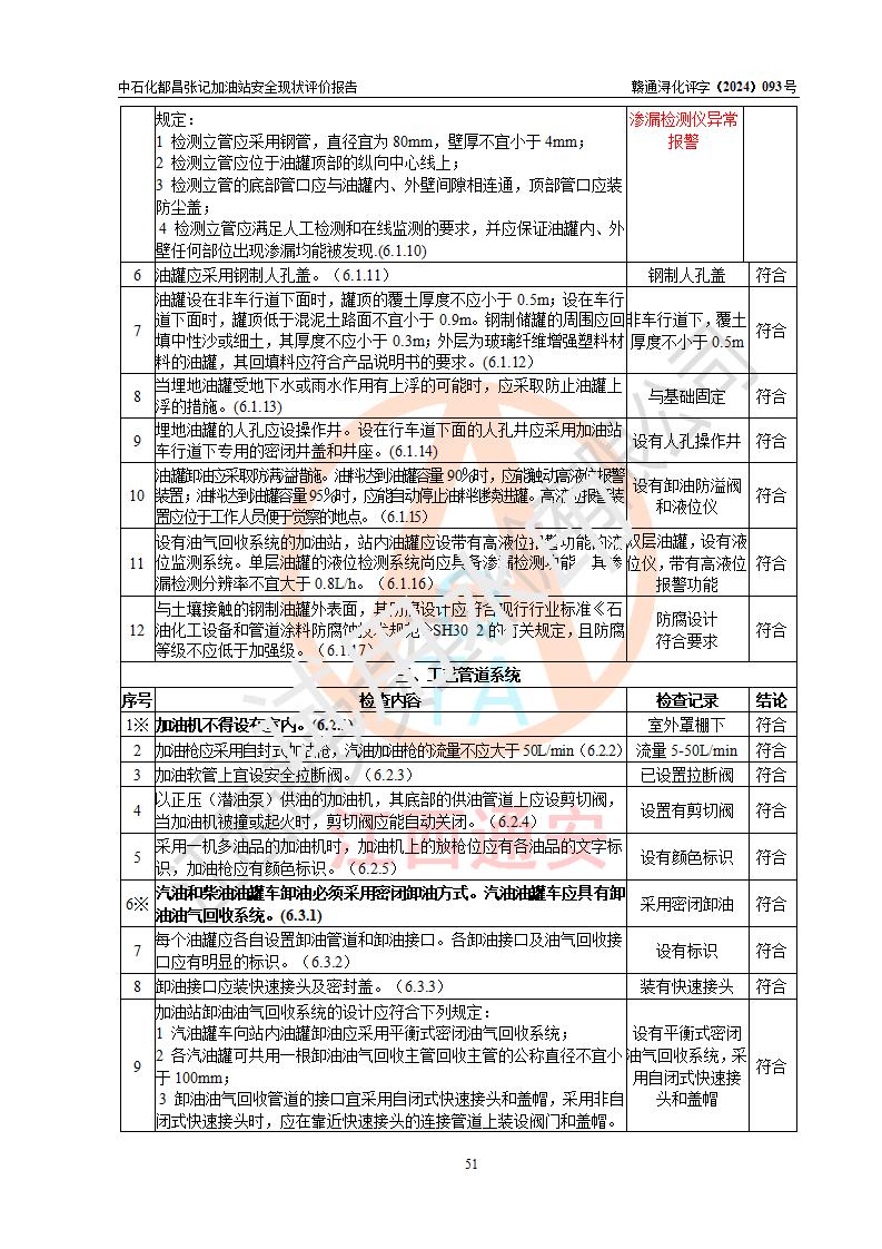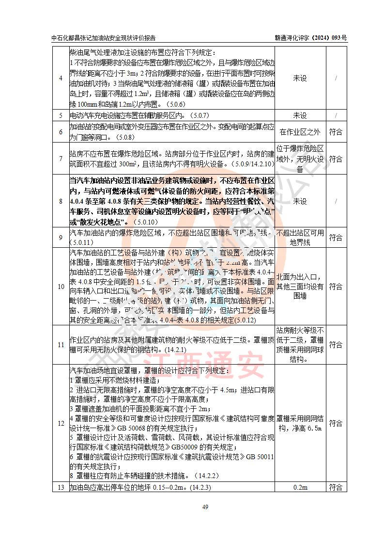 評價結論 | 中國石化銷售股份有限公司江西九江都昌石油分公司張記加油站涉及的安全條件、安全經營條件、安全生產管理符合《危險化學品經營許可證管理辦法》、《汽車加油加氣加氫站技術標準》等**有關法規(guī)、標準、規(guī)范要求,能滿足危險化學品經營安全條件。 | |||