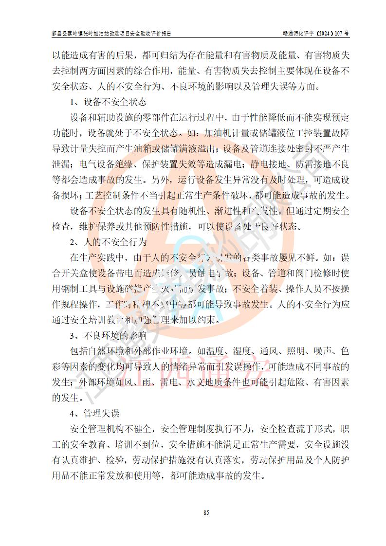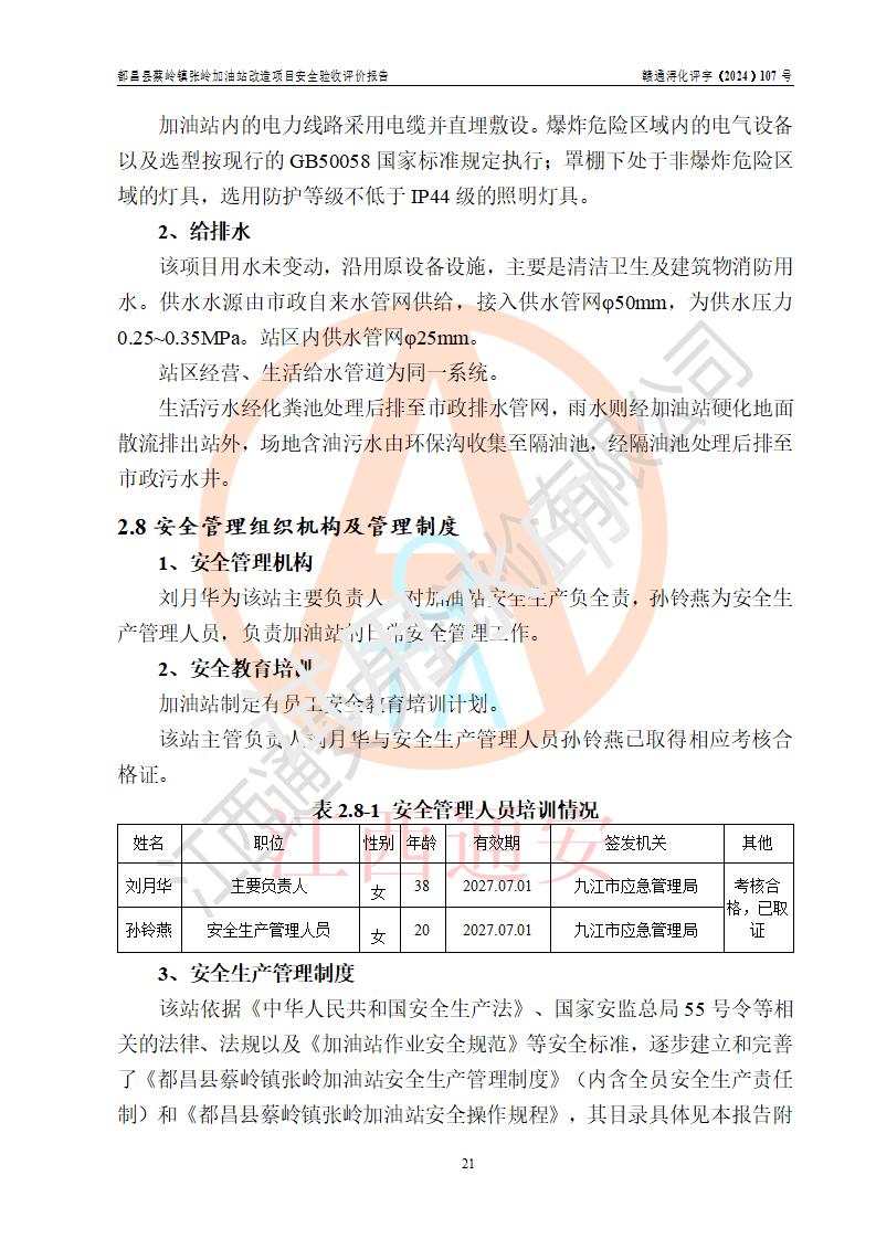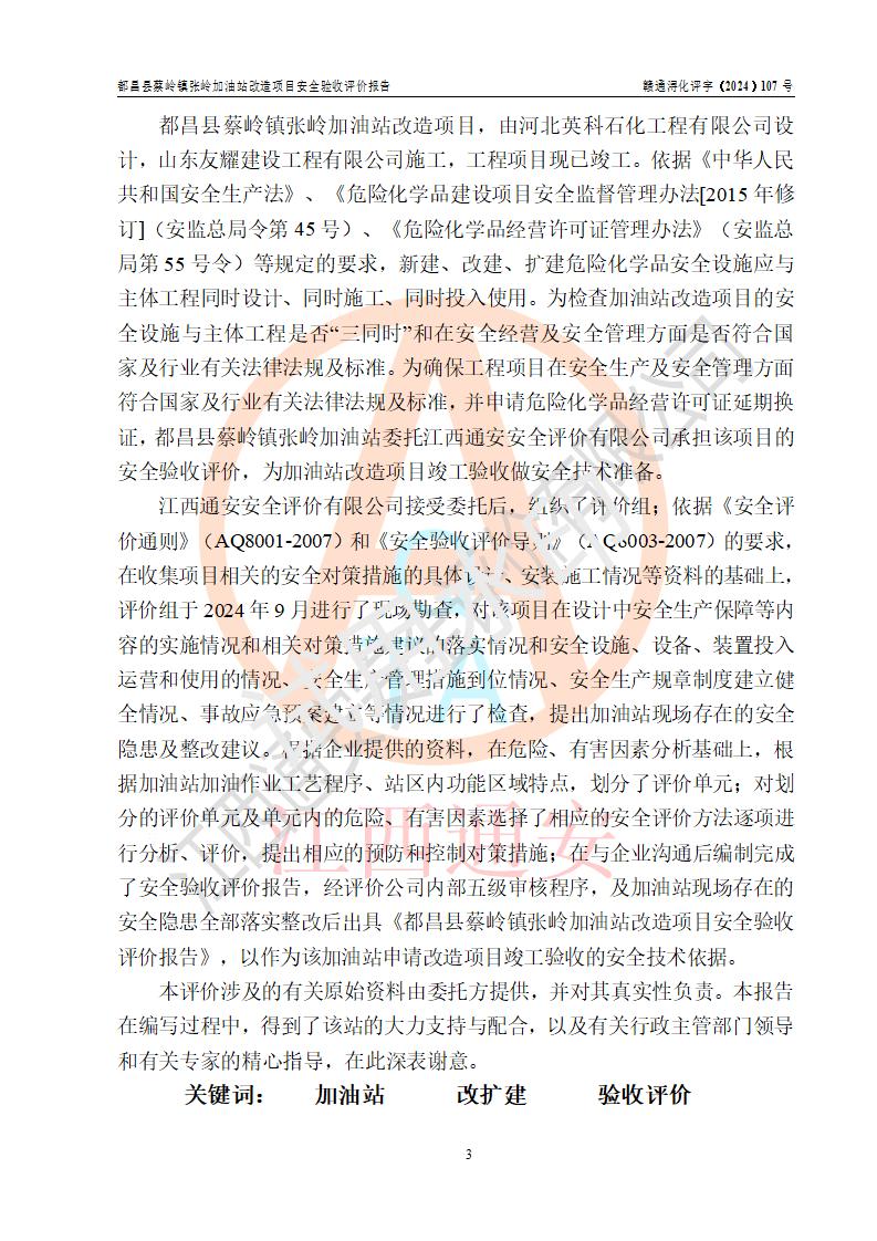 評價報告名稱 | 都昌縣蔡嶺鎮(zhèn)張嶺加油站改造項目安全驗收評價報告 | |||