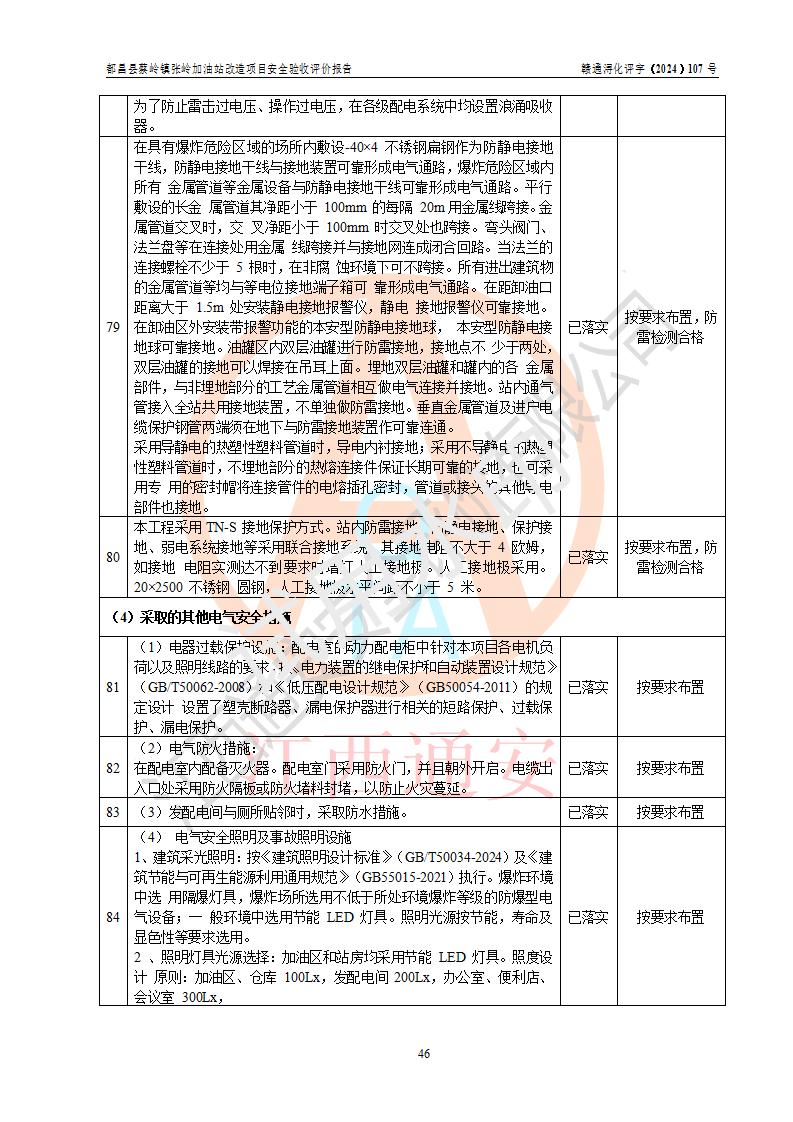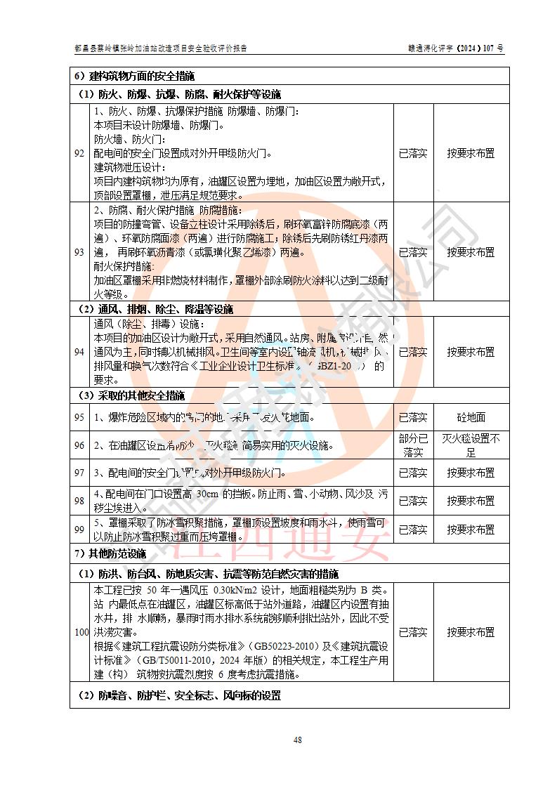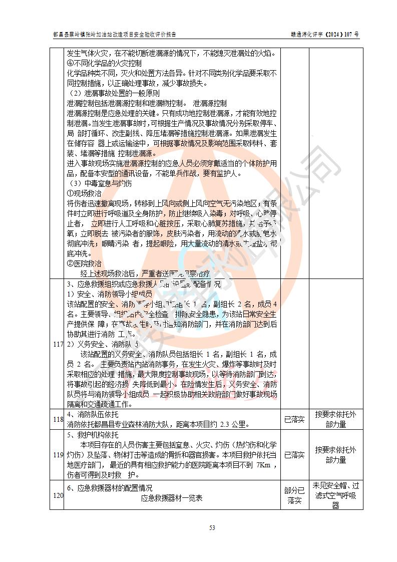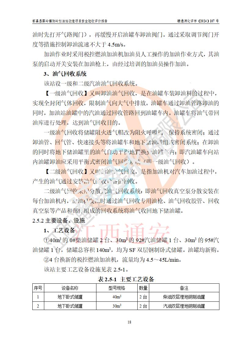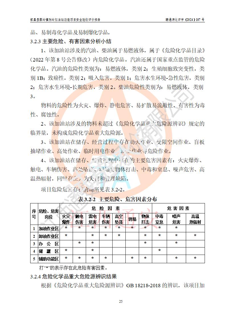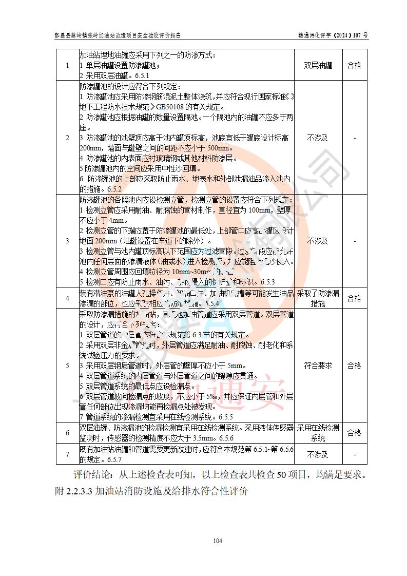 評價結論 | 都昌縣蔡嶺鎮(zhèn)張嶺加油站改造項目涉及的安全條件、安全生產(chǎn)條件、安全生產(chǎn)管理符合《危險化學品經(jīng)營許可證管理辦法》、《汽車加油加氣加氫站技術標準》等**有關法規(guī)、標準、規(guī)范要求,能滿足成品油零售經(jīng)營單位的安全條件,具備項目竣工驗收的條件。 | |||