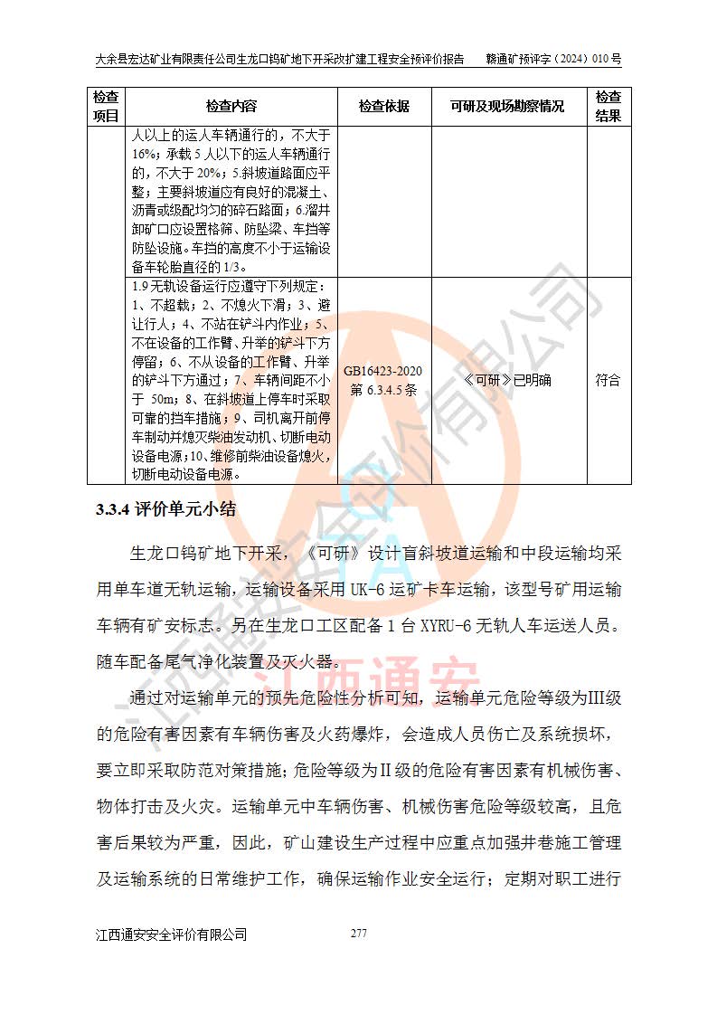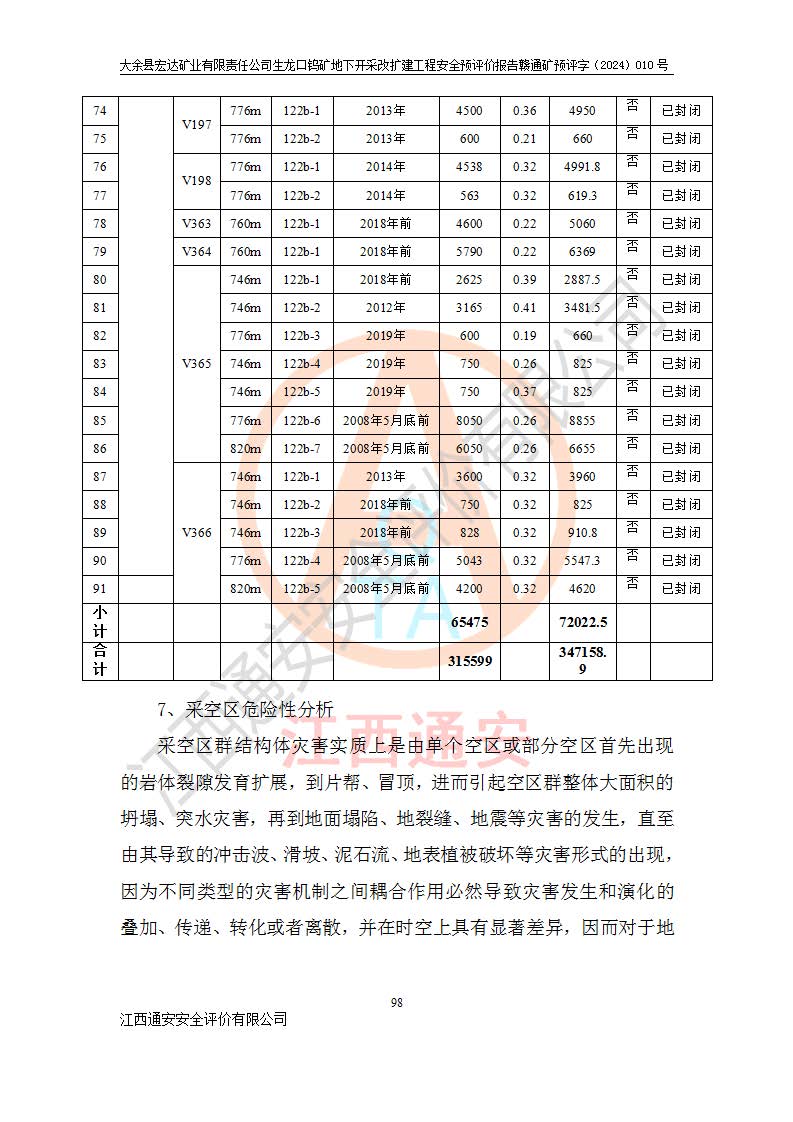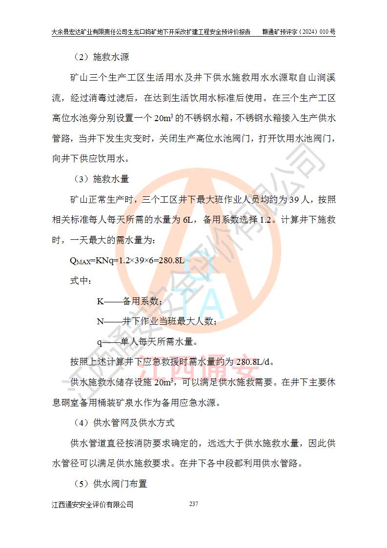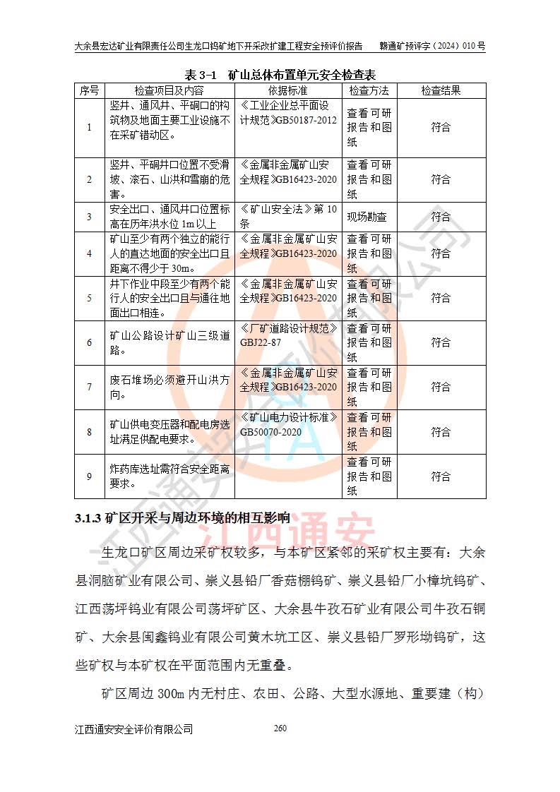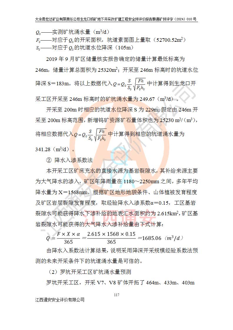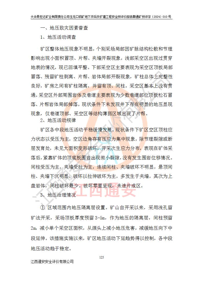 大余縣生龍口礦區(qū)鎢礦位于大余縣城北西 310°方位,距大余縣城直距 12 **,西接生龍口,北接蕩坪礦,南鄰黃木坑、西華山等礦區(qū),礦區(qū)正好是幾個(gè)礦區(qū)的銜接部位。隸屬大余縣浮江鄉(xiāng)管轄。其地理位置為:東經(jīng) 114°17′03″--114°20′11″;北緯 25°27′15″ --25 ° 28 ′ 10″ 。 礦 區(qū) 面 積 為5.97平方**。區(qū)內(nèi)交通較為方便,礦區(qū)東西兩側(cè)不遠(yuǎn)處均有公路通過(guò),西側(cè)為大余至崇義公路,東側(cè)為 大 余 至 蕩 坪 公路,通過(guò)這兩條公路均可向南與大余縣城與 323 國(guó)道相接,至贛州市區(qū)約100 **,往廣東省韶關(guān)贛韶高速約 150 **,向北達(dá)崇義縣城。 生龍口鎢礦建礦以前只有一些小規(guī)模的民采,2003年大余縣宏達(dá)礦業(yè)有限公司取得采礦權(quán),形成規(guī)模采礦,后期采礦證經(jīng)過(guò)多次延續(xù)與變更。生龍口鎢礦共設(shè)置了高棟上、羅坑、生龍口3個(gè)開(kāi)采工區(qū)。3個(gè)工區(qū)相距3**左右。 2024年9月江西晶楚工程技術(shù)有限公司編制完成了《大余縣宏達(dá)礦業(yè)有限責(zé)任公司生龍口鎢礦地下開(kāi)采改擴(kuò)建工程可行性研究報(bào)告》(以下簡(jiǎn)稱(chēng)《可研報(bào)告》)。2024年12月26日取得《江西省工業(yè)和信息化廳關(guān)于大余縣宏達(dá)礦業(yè)有限責(zé)任公司生龍口鎢礦地下開(kāi)采改擴(kuò)建工程核準(zhǔn)的批復(fù)》(贛工信有色〔2024〕49號(hào))。 根據(jù)《可研報(bào)告》,可研設(shè)計(jì)范圍為生龍口鎢礦礦區(qū)礦權(quán)范圍,平面范圍由15個(gè)拐點(diǎn)組成,開(kāi)采標(biāo)高范圍為746m~200m。本次開(kāi)采對(duì)象為開(kāi)采范圍內(nèi)的35條工業(yè)礦體,其中,大部分礦體以及接近地表處存在采空區(qū),為保護(hù)地表及井下安全作業(yè),需留設(shè)地表保安礦柱及采空區(qū)隔離礦柱;其中,高棟上工區(qū)V198、V197礦體因位于采空區(qū)后方,且資源量較少,暫不列為開(kāi)采對(duì)象;生龍口工區(qū)V98、V85、V84因利舊324m主平硐口,故作為保安礦柱,暫不予開(kāi)采??裳?*采用淺孔留礦嗣后充填法??裳?*采用平硐+盲斜坡道開(kāi)拓,一次性整體設(shè)計(jì),各工區(qū)礦石和廢石均通過(guò)溜井下放至相應(yīng)區(qū)段*低開(kāi)采中段、通過(guò)UK-6礦用自卸卡車(chē)裝載,利用內(nèi)部運(yùn)輸巷道和溜井運(yùn)至生龍口工區(qū)324m平硐(主運(yùn)輸巷道)集中出礦,各工區(qū)礦石、廢石分別運(yùn)至324平硐口附近的選礦廠和砂石骨料加工廠。井下中段**采用無(wú)軌運(yùn)輸。礦區(qū)采用分區(qū)通風(fēng)系統(tǒng)、每個(gè)工區(qū)采用單翼對(duì)角抽出機(jī)械式通風(fēng)方式;新風(fēng)主要從平硐口進(jìn)風(fēng),回風(fēng)井回風(fēng)。 本項(xiàng)目已經(jīng)符合編制安全預(yù)評(píng)價(jià)的前置條件,根據(jù)《中華人民共和國(guó)安全生產(chǎn)法》、《建設(shè)項(xiàng)目安全設(shè)施“三同時(shí)”監(jiān)督管理辦法》(**安全生產(chǎn)監(jiān)督管理局令第36號(hào))、《金屬非金屬礦山建設(shè)項(xiàng)目安全設(shè)施目錄》(**安全生產(chǎn)監(jiān)督管理總局令第75號(hào))和《**礦山安全監(jiān)察局關(guān)于進(jìn)一步加強(qiáng)非煤礦山安全生產(chǎn)行政許可工作的通知》(礦安〔2024〕70號(hào))的規(guī)定,大余縣宏達(dá)礦業(yè)有限責(zé)任公司2024年10月8日委托江西通安安全評(píng)價(jià)有限公司對(duì)其生龍口鎢礦地下開(kāi)采改擴(kuò)建工程進(jìn)行安全預(yù)評(píng)價(jià)。 |