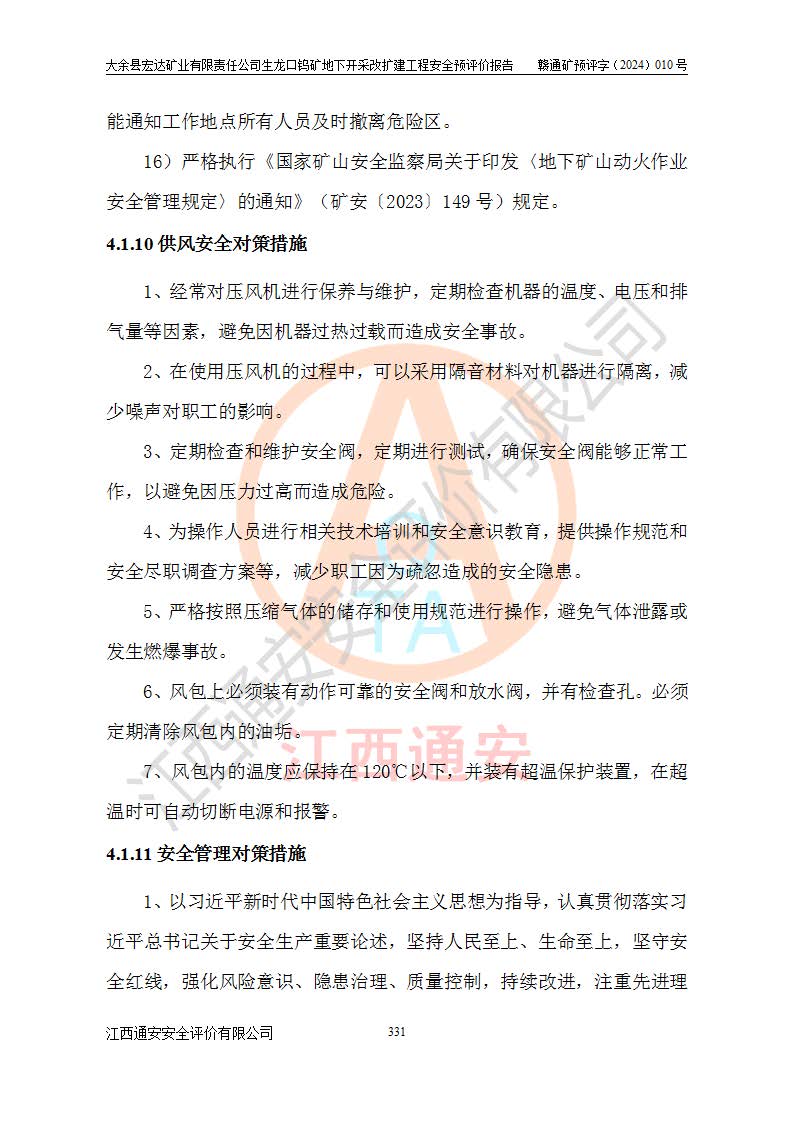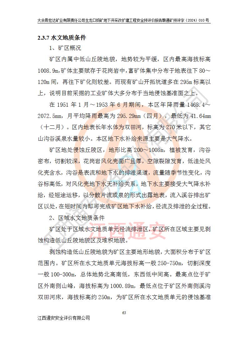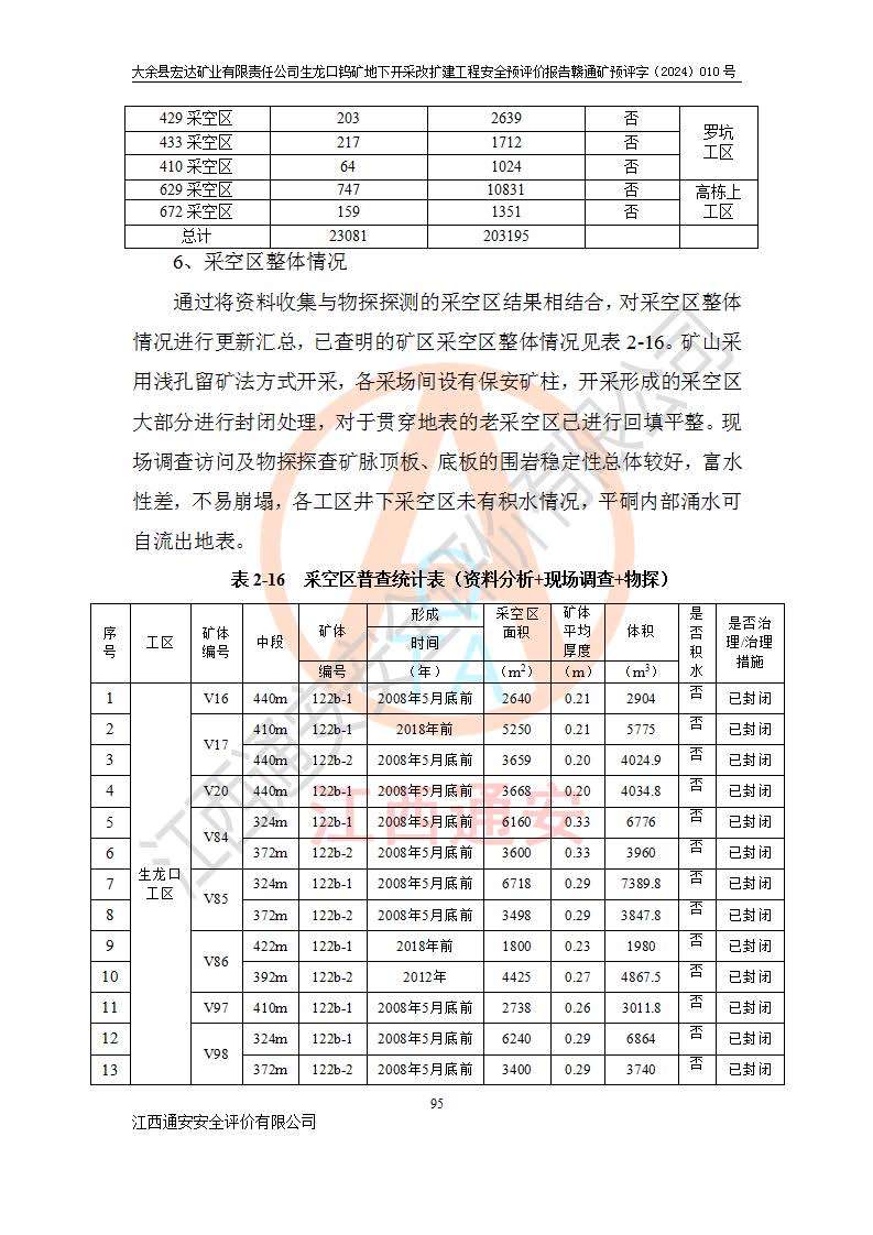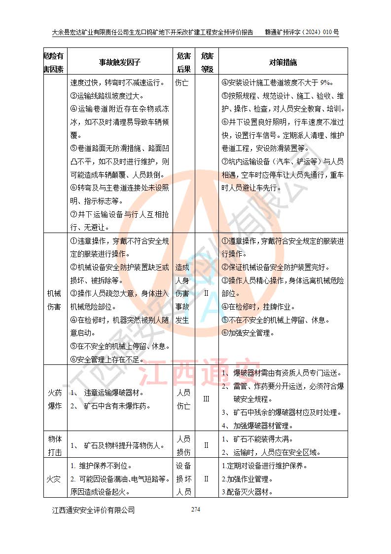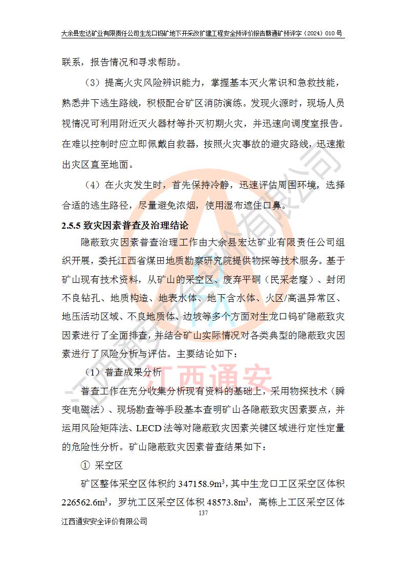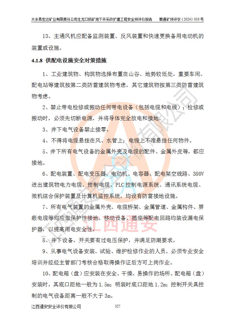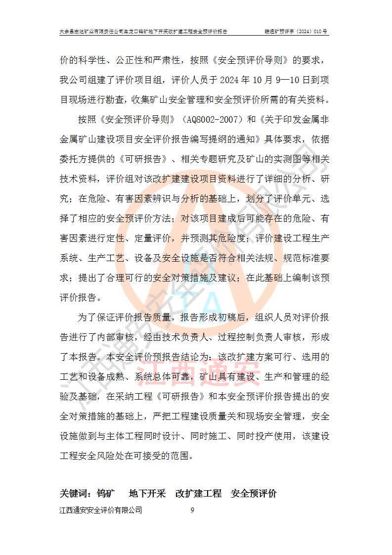 大余縣生龍口礦區(qū)鎢礦位于大余縣城北西 310°方位,距大余縣城直距 12 **,西接生龍口,北接蕩坪礦,南鄰黃木坑、西華山等礦區(qū),礦區(qū)正好是幾個(gè)礦區(qū)的銜接部位。隸屬大余縣浮江鄉(xiāng)管轄。其地理位置為:東經(jīng) 114°17′03″--114°20′11″;北緯 25°27′15″ --25 ° 28 ′ 10″ 。 礦 區(qū) 面 積 為5.97平方**。區(qū)內(nèi)交通較為方便,礦區(qū)東西兩側(cè)不遠(yuǎn)處均有公路通過(guò),西側(cè)為大余至崇義公路,東側(cè)為 大 余 至 蕩 坪 公路,通過(guò)這兩條公路均可向南與大余縣城與 323 國(guó)道相接,至贛州市區(qū)約100 **,往廣東省韶關(guān)贛韶高速約 150 **,向北達(dá)崇義縣城。 生龍口鎢礦建礦以前只有一些小規(guī)模的民采,2003年大余縣宏達(dá)礦業(yè)有限公司取得采礦權(quán),形成規(guī)模采礦,后期采礦證經(jīng)過(guò)多次延續(xù)與變更。生龍口鎢礦共設(shè)置了高棟上、羅坑、生龍口3個(gè)開(kāi)采工區(qū)。3個(gè)工區(qū)相距3**左右。 2024年9月江西晶楚工程技術(shù)有限公司編制完成了《大余縣宏達(dá)礦業(yè)有限責(zé)任公司生龍口鎢礦地下開(kāi)采改擴(kuò)建工程可行性研究報(bào)告》(以下簡(jiǎn)稱(chēng)《可研報(bào)告》)。2024年12月26日取得《江西省工業(yè)和信息化廳關(guān)于大余縣宏達(dá)礦業(yè)有限責(zé)任公司生龍口鎢礦地下開(kāi)采改擴(kuò)建工程核準(zhǔn)的批復(fù)》(贛工信有色〔2024〕49號(hào))。 根據(jù)《可研報(bào)告》,可研設(shè)計(jì)范圍為生龍口鎢礦礦區(qū)礦權(quán)范圍,平面范圍由15個(gè)拐點(diǎn)組成,開(kāi)采標(biāo)高范圍為746m~200m。本次開(kāi)采對(duì)象為開(kāi)采范圍內(nèi)的35條工業(yè)礦體,其中,大部分礦體以及接近地表處存在采空區(qū),為保護(hù)地表及井下安全作業(yè),需留設(shè)地表保安礦柱及采空區(qū)隔離礦柱;其中,高棟上工區(qū)V198、V197礦體因位于采空區(qū)后方,且資源量較少,暫不列為開(kāi)采對(duì)象;生龍口工區(qū)V98、V85、V84因利舊324m主平硐口,故作為保安礦柱,暫不予開(kāi)采??裳?*采用淺孔留礦嗣后充填法??裳?*采用平硐+盲斜坡道開(kāi)拓,一次性整體設(shè)計(jì),各工區(qū)礦石和廢石均通過(guò)溜井下放至相應(yīng)區(qū)段*低開(kāi)采中段、通過(guò)UK-6礦用自卸卡車(chē)裝載,利用內(nèi)部運(yùn)輸巷道和溜井運(yùn)至生龍口工區(qū)324m平硐(主運(yùn)輸巷道)集中出礦,各工區(qū)礦石、廢石分別運(yùn)至324平硐口附近的選礦廠和砂石骨料加工廠。井下中段**采用無(wú)軌運(yùn)輸。礦區(qū)采用分區(qū)通風(fēng)系統(tǒng)、每個(gè)工區(qū)采用單翼對(duì)角抽出機(jī)械式通風(fēng)方式;新風(fēng)主要從平硐口進(jìn)風(fēng),回風(fēng)井回風(fēng)。 本項(xiàng)目已經(jīng)符合編制安全預(yù)評(píng)價(jià)的前置條件,根據(jù)《中華人民共和國(guó)安全生產(chǎn)法》、《建設(shè)項(xiàng)目安全設(shè)施“三同時(shí)”監(jiān)督管理辦法》(**安全生產(chǎn)監(jiān)督管理局令第36號(hào))、《金屬非金屬礦山建設(shè)項(xiàng)目安全設(shè)施目錄》(**安全生產(chǎn)監(jiān)督管理總局令第75號(hào))和《**礦山安全監(jiān)察局關(guān)于進(jìn)一步加強(qiáng)非煤礦山安全生產(chǎn)行政許可工作的通知》(礦安〔2024〕70號(hào))的規(guī)定,大余縣宏達(dá)礦業(yè)有限責(zé)任公司2024年10月8日委托江西通安安全評(píng)價(jià)有限公司對(duì)其生龍口鎢礦地下開(kāi)采改擴(kuò)建工程進(jìn)行安全預(yù)評(píng)價(jià)。 |