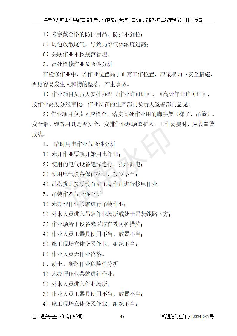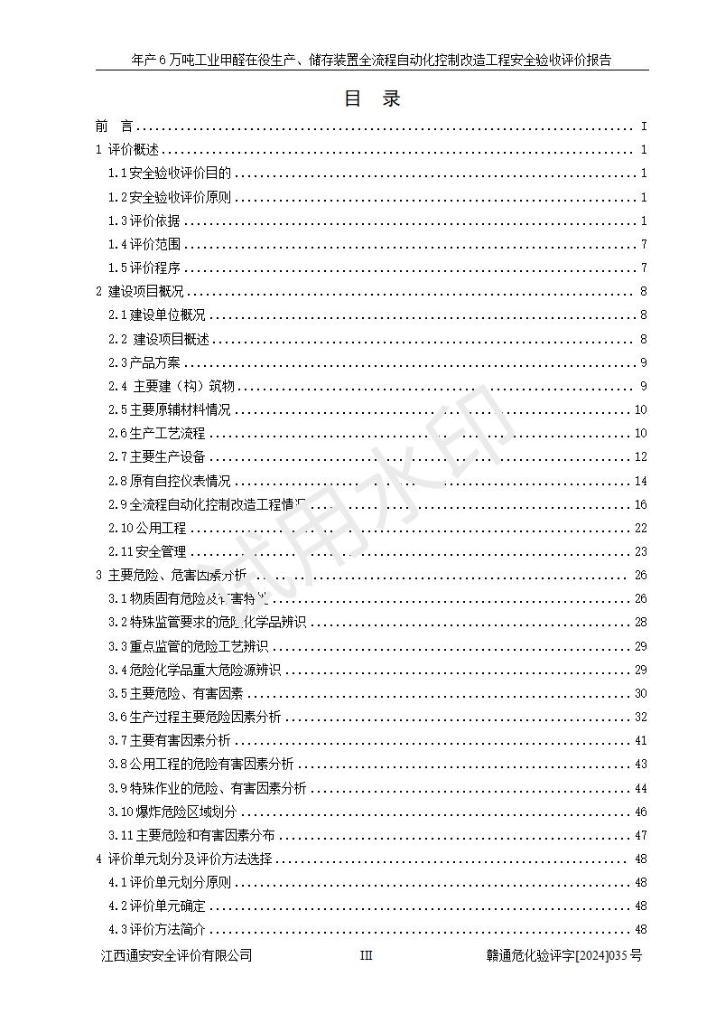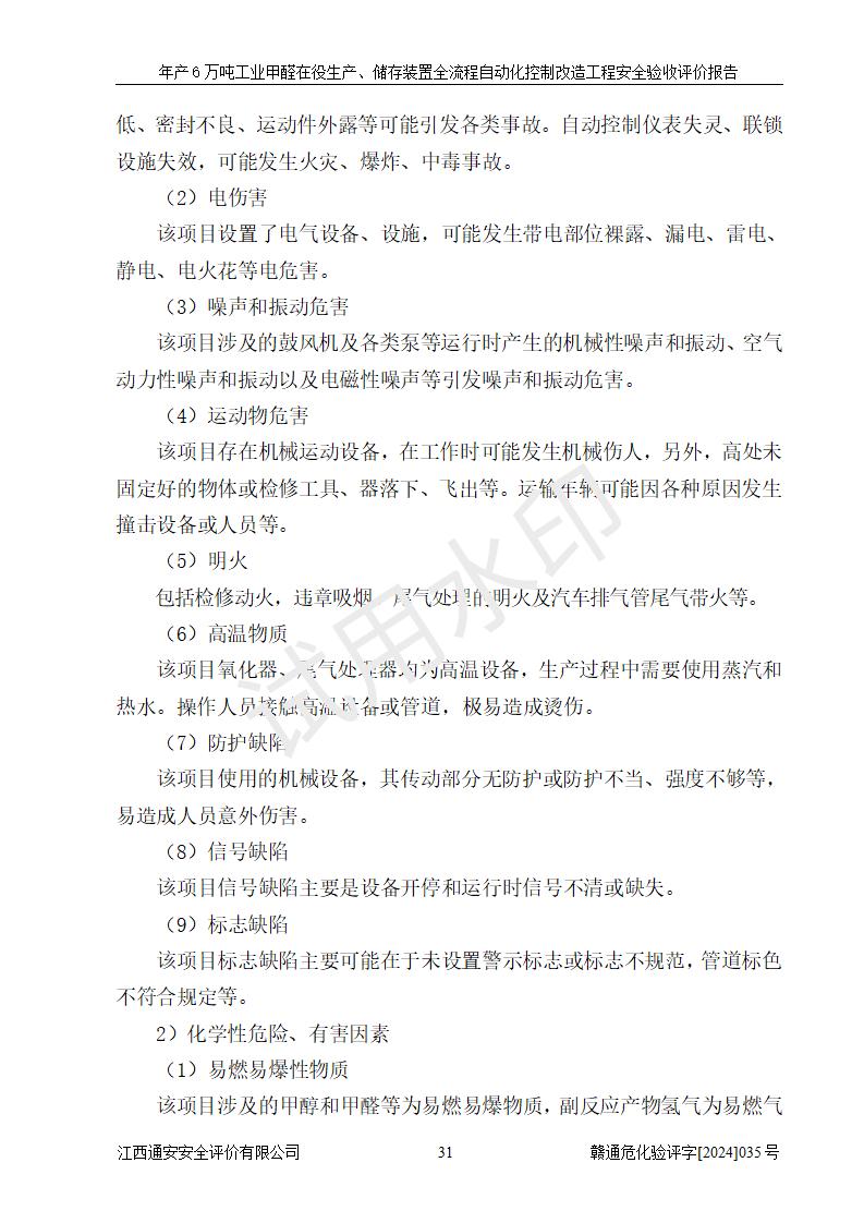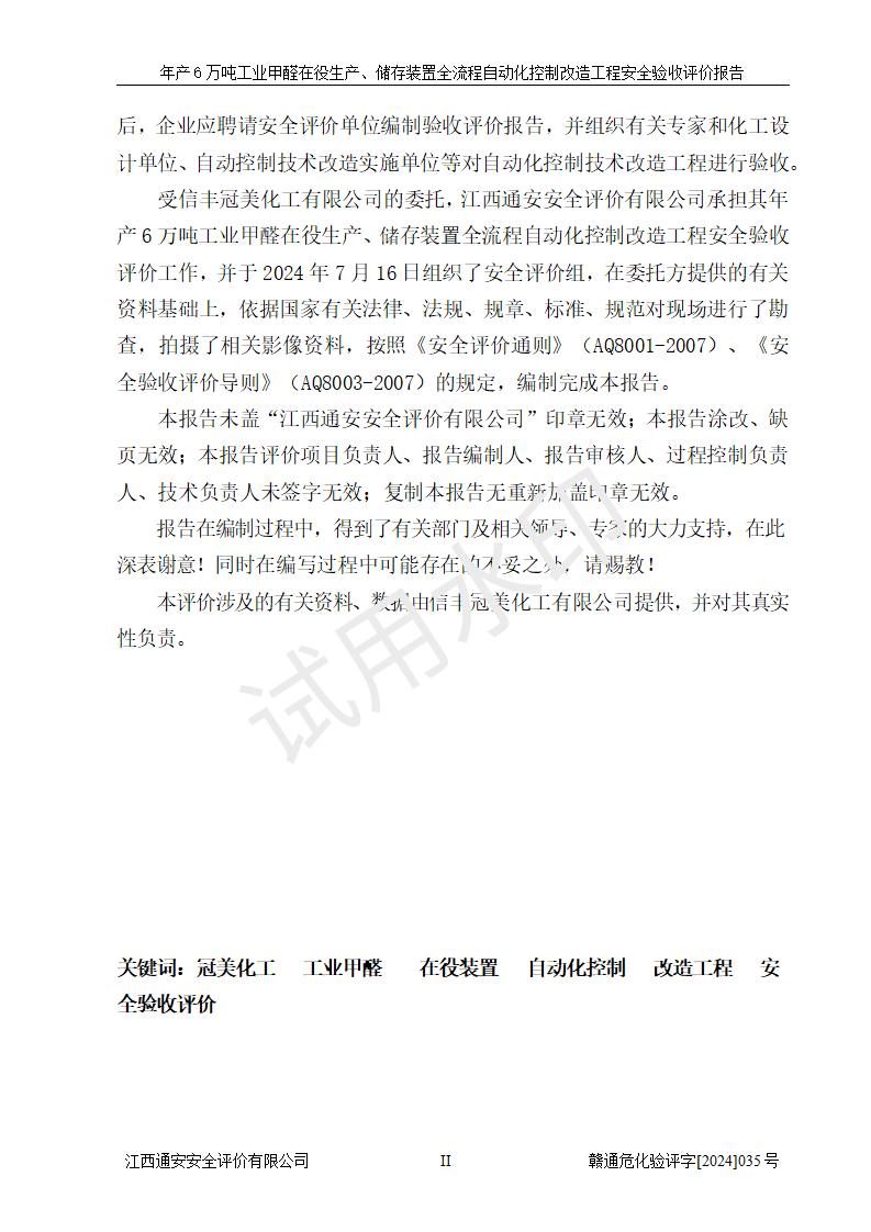 評(píng)價(jià)報(bào)告名稱 | 信豐冠美化工有限公司年產(chǎn)6萬(wàn)噸工業(yè)甲醛在役生產(chǎn)、儲(chǔ)存裝置全流程自動(dòng)化控制改造工程安全驗(yàn)收評(píng)價(jià)報(bào)告 | ||||||