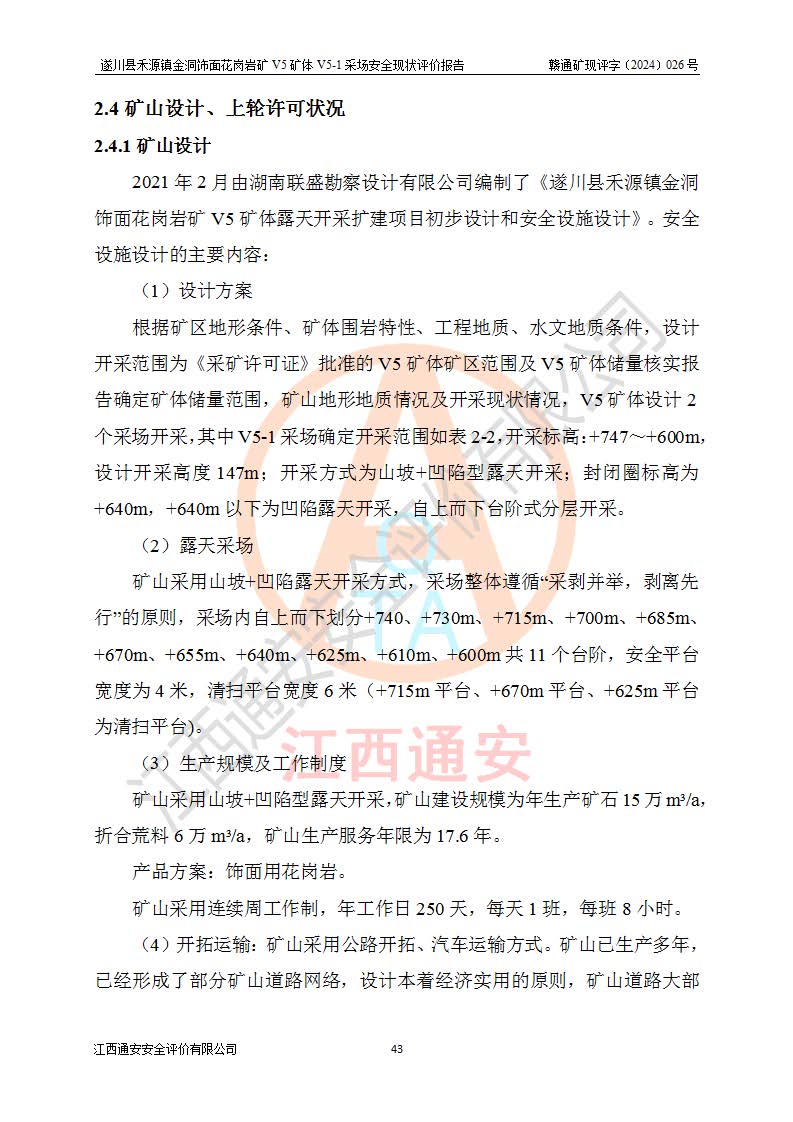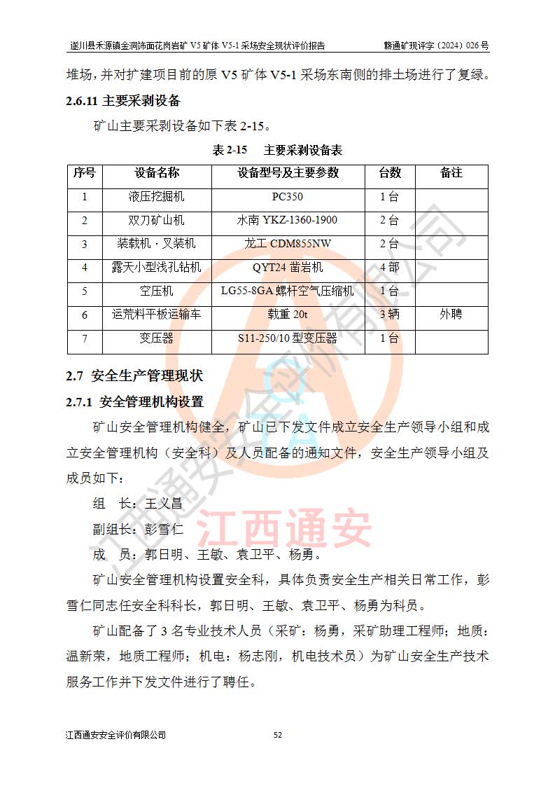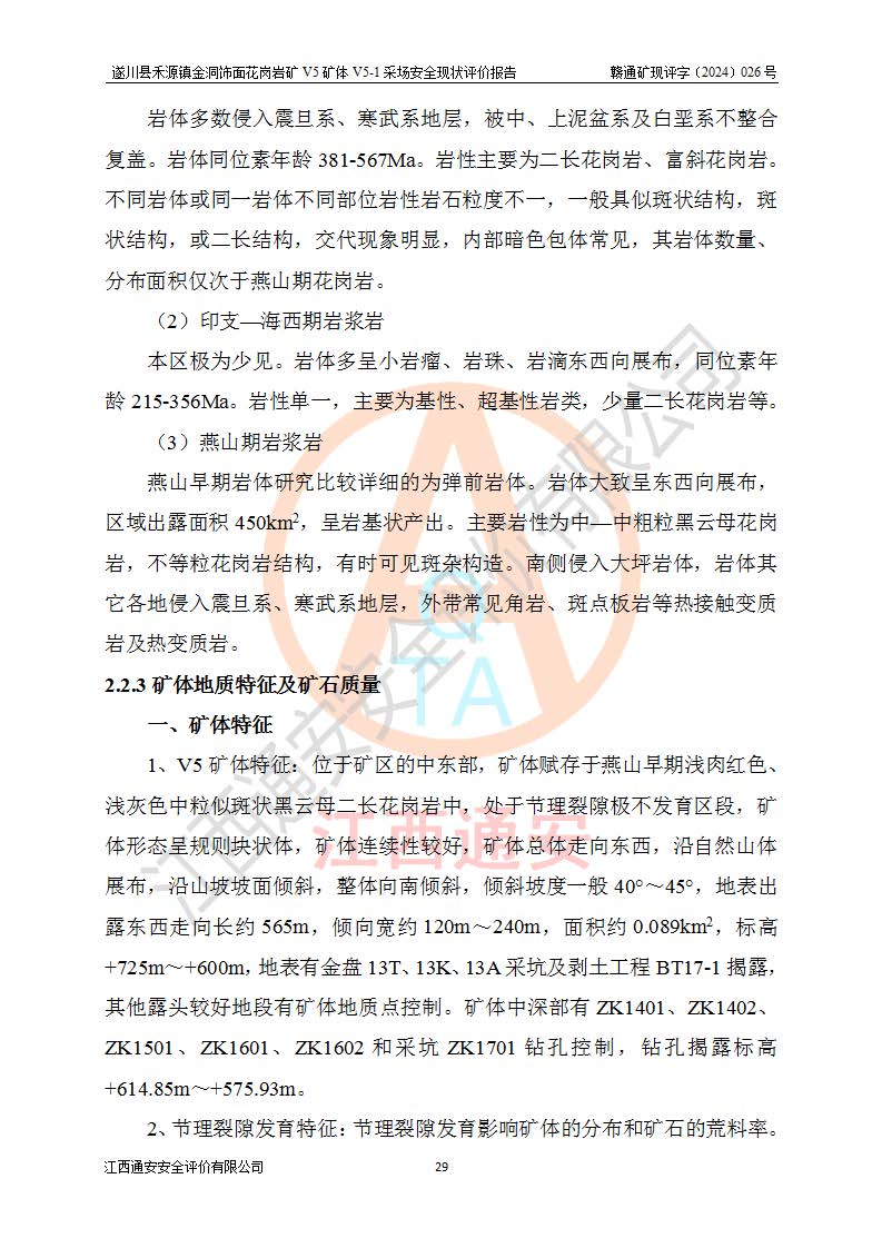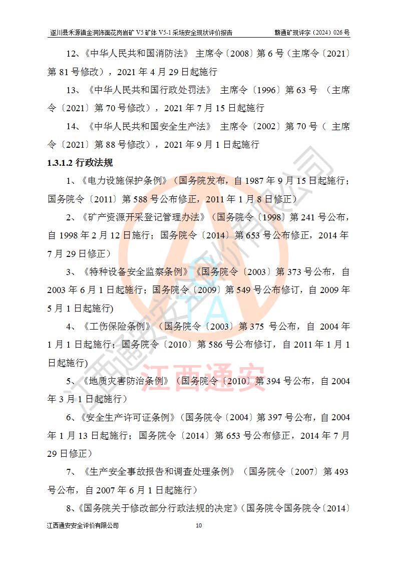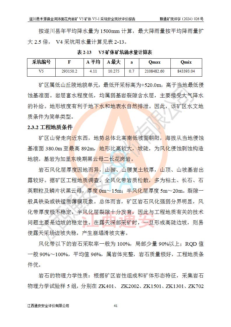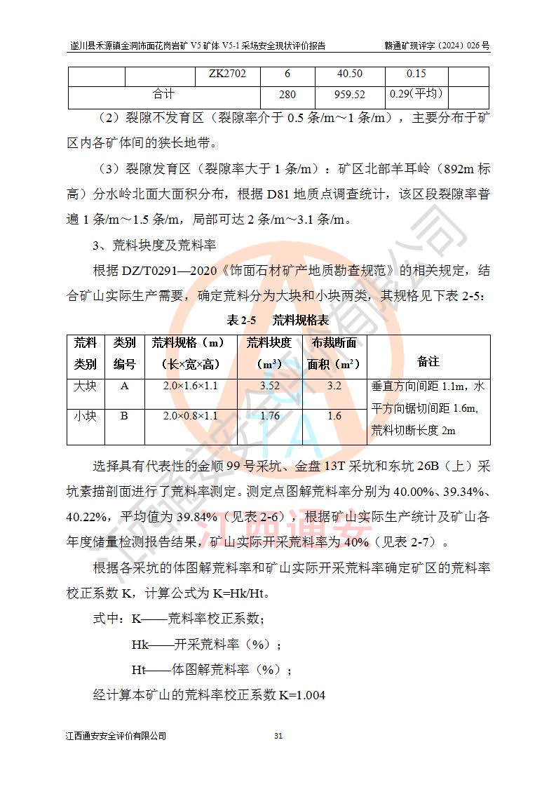 1、該評(píng)價(jià)項(xiàng)目中存在的主要危險(xiǎn)因素:火災(zāi),坍塌(滑坡),**傷害,機(jī)械傷害,觸電與雷擊,物體打擊,泥石流,起重傷害,高處墜落,淹溺,容器爆炸等危險(xiǎn)有害因素。 2、該評(píng)價(jià)項(xiàng)目中存在的有害因素包括:粉塵、噪聲與振動(dòng)、不良作業(yè)環(huán)境,如高溫、雷擊對(duì)礦山人員的傷害和其他不利的環(huán)境因素等。 3、該評(píng)價(jià)項(xiàng)目為非金屬露天礦山,無瓦斯和自燃發(fā)火危險(xiǎn),礦區(qū)范圍內(nèi)及周邊無較大水系,礦區(qū)水文地質(zhì)條件簡單。該礦山只是對(duì)飾面用石料進(jìn)行機(jī)械開采,不使用有毒有害危險(xiǎn)化學(xué)品藥劑。該評(píng)價(jià)項(xiàng)目使用的壓力容器為空壓機(jī)儲(chǔ)氣罐,其工作介質(zhì)為空氣,屬**性、非易燃介質(zhì)。綜合上述分析,本評(píng)價(jià)項(xiàng)目不存在重大危險(xiǎn)源。 上述主要危險(xiǎn)、有害因素在采取本報(bào)告第六章中提出的安全對(duì)策措施及建議后,能得到**控制。遂川縣禾源鎮(zhèn)金洞飾面花崗巖礦V5礦體V5-1采場(chǎng)設(shè)備、設(shè)施和場(chǎng)所符合**安全生產(chǎn)有關(guān)法律、法規(guī)、標(biāo)準(zhǔn)及規(guī)范的規(guī)定。礦山采用露天開采、公路開拓、汽車運(yùn)輸方式,安全生產(chǎn)條件一般,能滿足基本的安全生產(chǎn)活動(dòng);安全管理能滿足法規(guī)要求,礦山露天開采按照《安全設(shè)施設(shè)計(jì)》組織生產(chǎn)、具備安全生產(chǎn)條件。 |