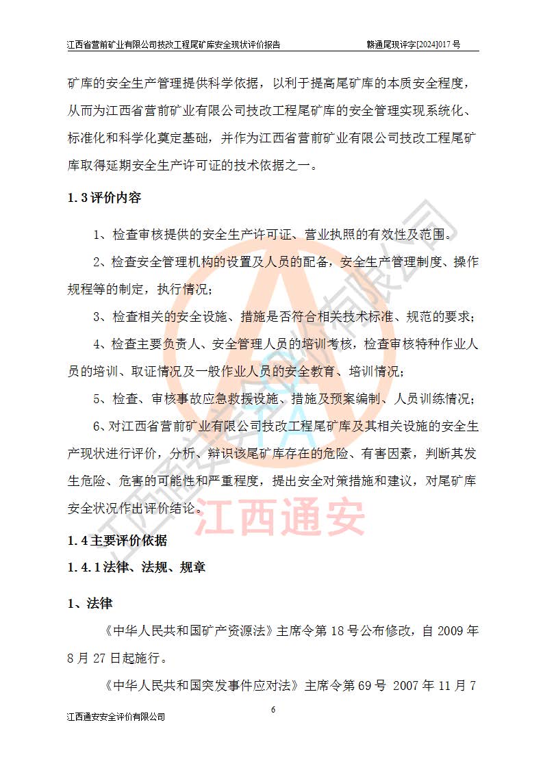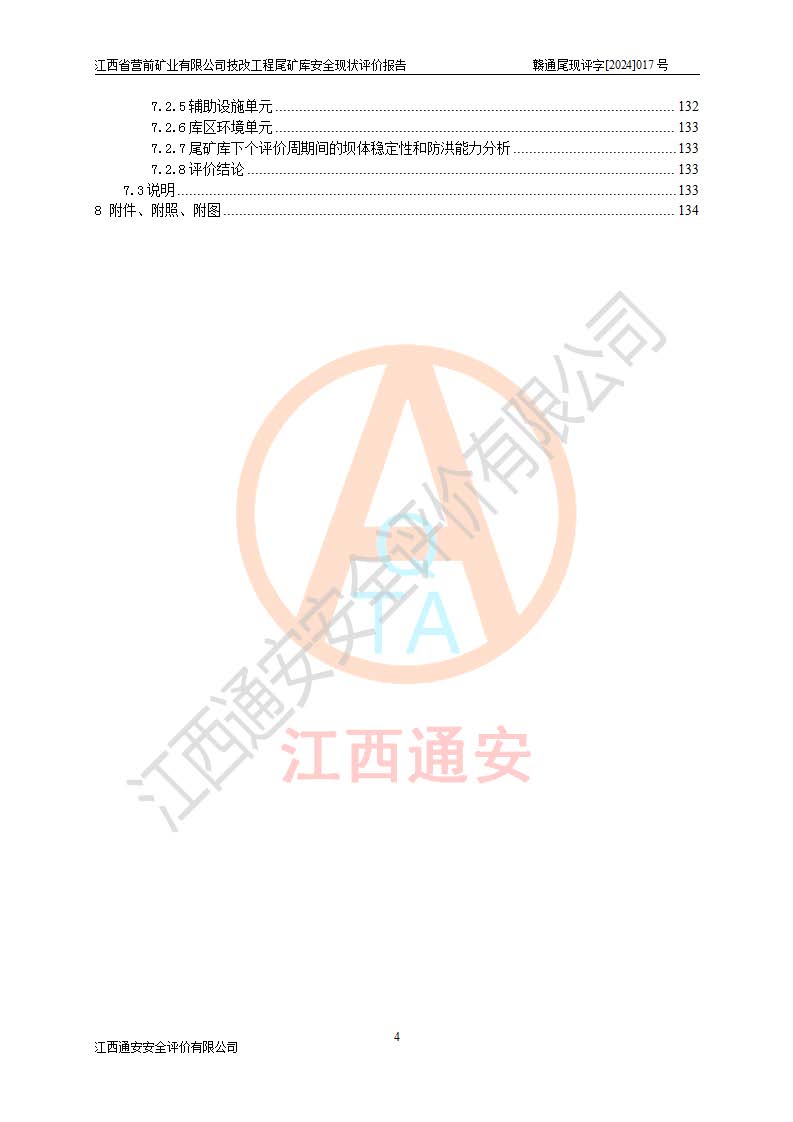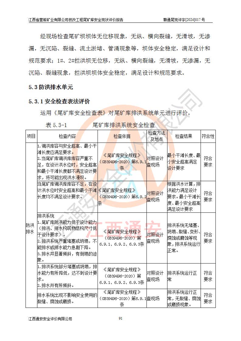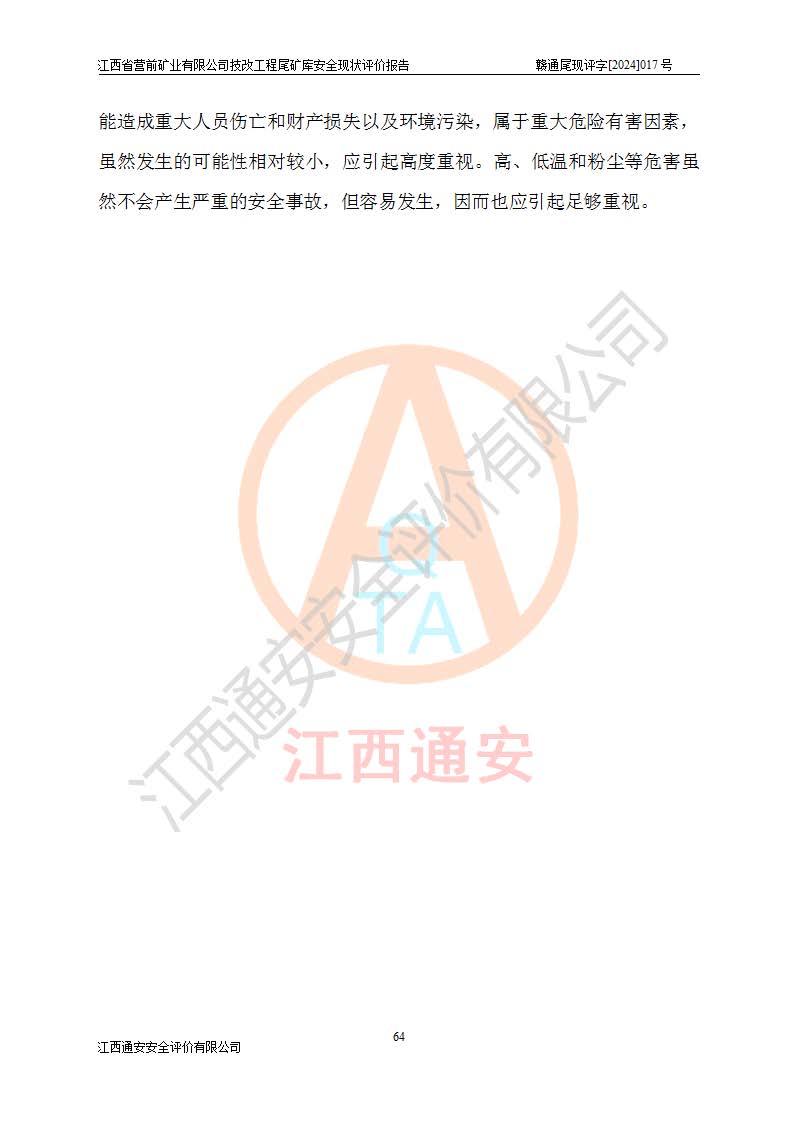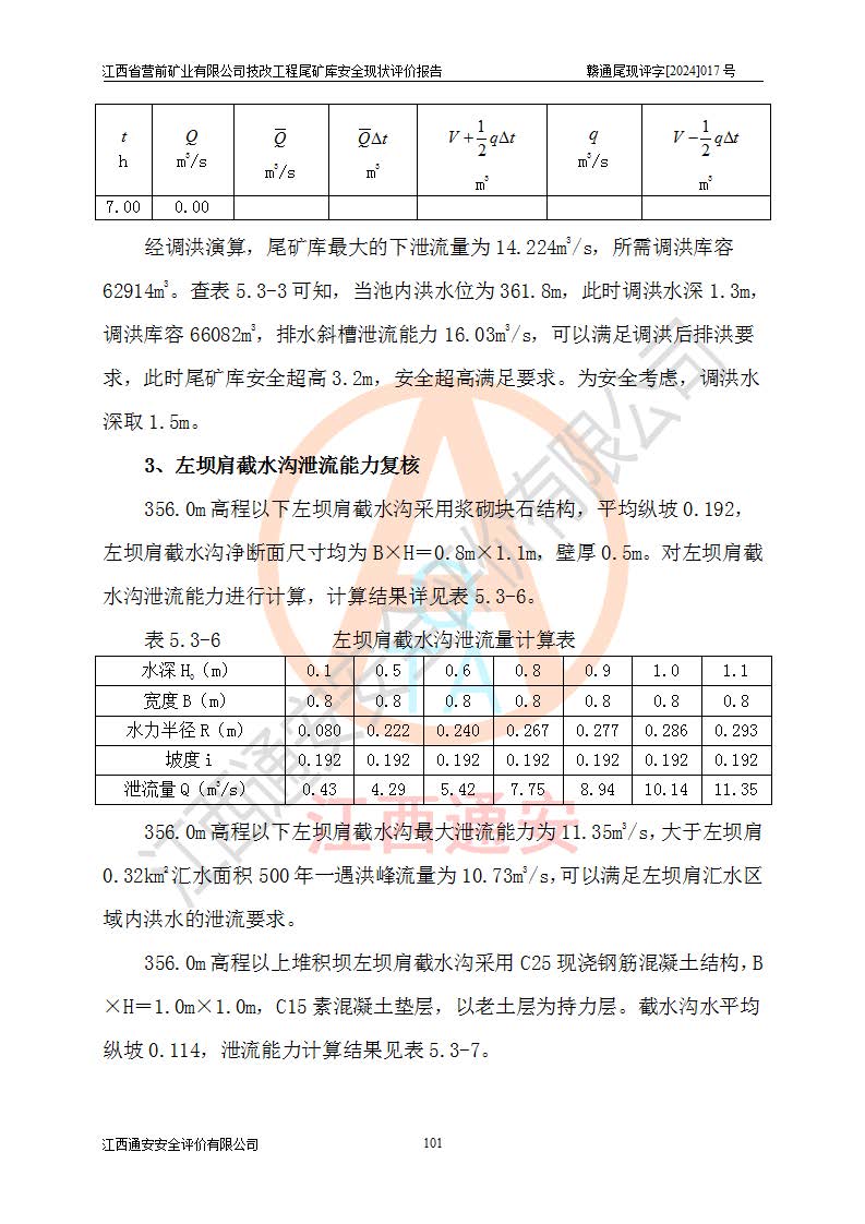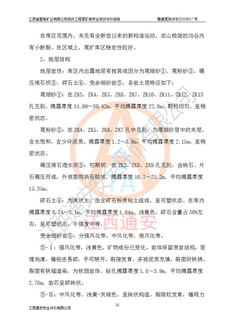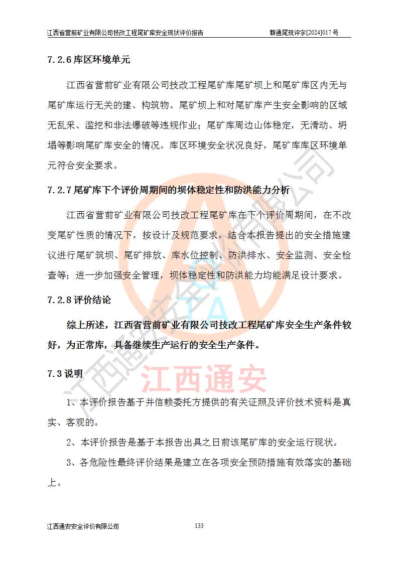 江西省營(yíng)前礦業(yè)有限公司于2003年12月16日成立,位于贛州市上猶縣營(yíng)前鎮(zhèn)焦里村境內(nèi),公司注冊(cè)資本10000萬(wàn)元,法定**人陳雅博,礦區(qū)地理坐標(biāo):東經(jīng)114°18′30″~114°19′00″,北緯25°52′35″~25°53′47″。公司經(jīng)營(yíng)范圍包括:鉛礦、鋅、鎢、銀地下開(kāi)采、銷(xiāo)售。 江西省營(yíng)前礦業(yè)有限公司技改工程尾礦庫(kù)位于焦里鎢銀鉛鋅礦區(qū),處于上猶縣水巖鄉(xiāng)井子村坑尾自然村境內(nèi),山谷型尾礦庫(kù),溝谷呈“V”字形展布,技改工程尾礦庫(kù)原由福建省冶金工業(yè)設(shè)計(jì)院設(shè)計(jì),后由金建工程設(shè)計(jì)有限公司對(duì)該尾礦庫(kù)進(jìn)行了加高擴(kuò)容設(shè)計(jì),加高擴(kuò)容后總庫(kù)容503.14萬(wàn)m3,壩高75.0m,為三等庫(kù)。尾礦庫(kù)主要由尾礦壩、庫(kù)外分洪系統(tǒng)(1#攔洪壩--1#分洪隧洞和2#攔洪壩--2#分洪隧洞--排水陡槽--消力池),庫(kù)內(nèi)排洪排水系統(tǒng)(排水斜槽—連接井—排水涵洞—排水隧洞—排水陡槽—消力池)等組成,尾礦壩壩型為初期壩+上游式堆積壩。 江西省營(yíng)前礦業(yè)有限公司技改工程尾礦庫(kù)于2021年12月30日取得江西省應(yīng)急管理廳版發(fā)的安全生產(chǎn)許可證,證書(shū)編號(hào)(贛)FM安許證字(2016)M1692號(hào),有限期從2022年1月18日到2025年1月17日,為三年期。依照《非煤礦礦山企業(yè)安全生產(chǎn)許可證延期換證工作》的通知,根據(jù)***《安全生產(chǎn)許可證條例》、《江西省安全生產(chǎn)條例》、《非煤礦山安全生產(chǎn)許可證實(shí)施辦法》、《江西省非煤礦礦山企業(yè)安全生產(chǎn)許可證辦法》規(guī)定的要求,受江西省營(yíng)前礦業(yè)有限公司委托,我公司承擔(dān)了技改工程尾礦庫(kù)延期換證安全現(xiàn)狀評(píng)價(jià)工作。 |