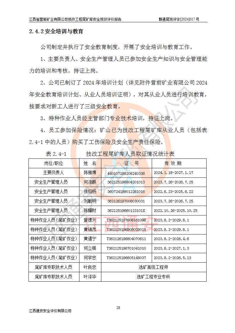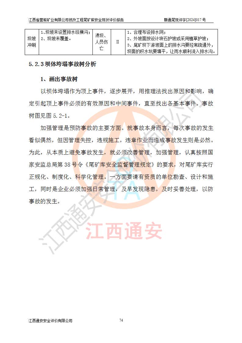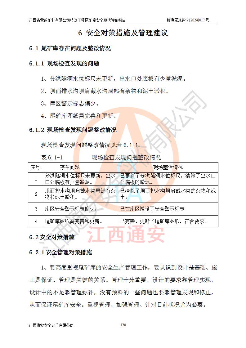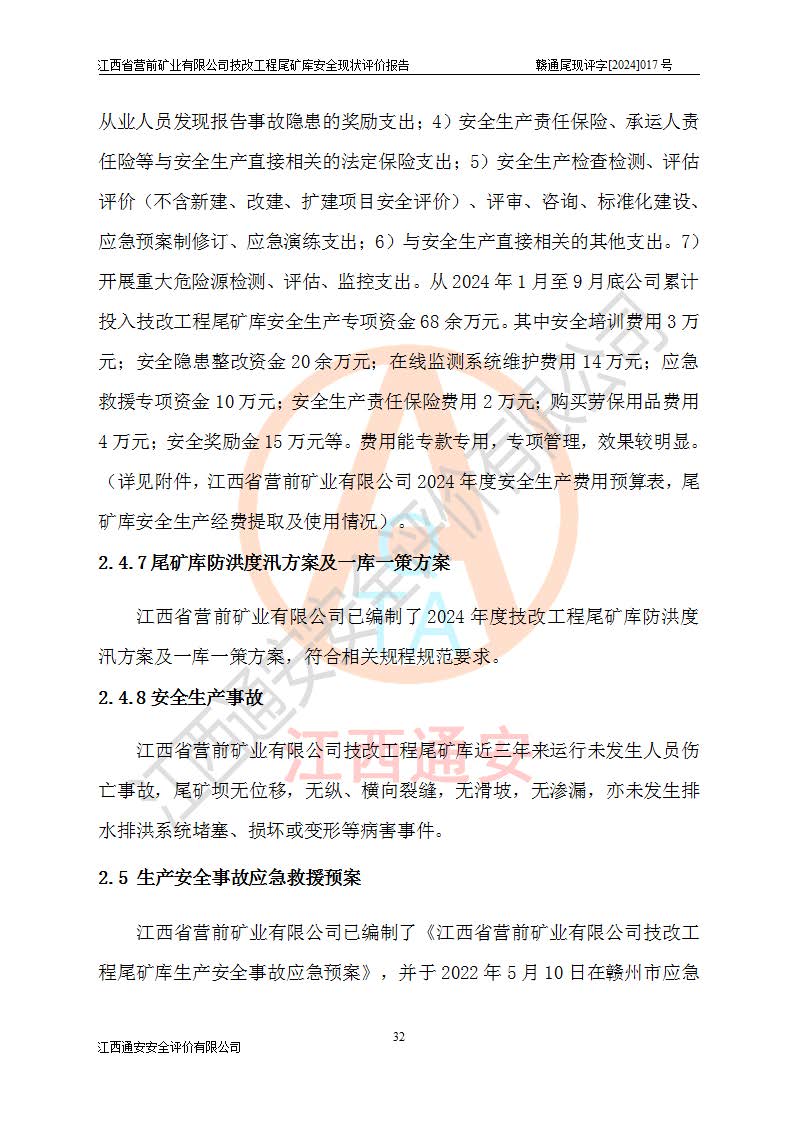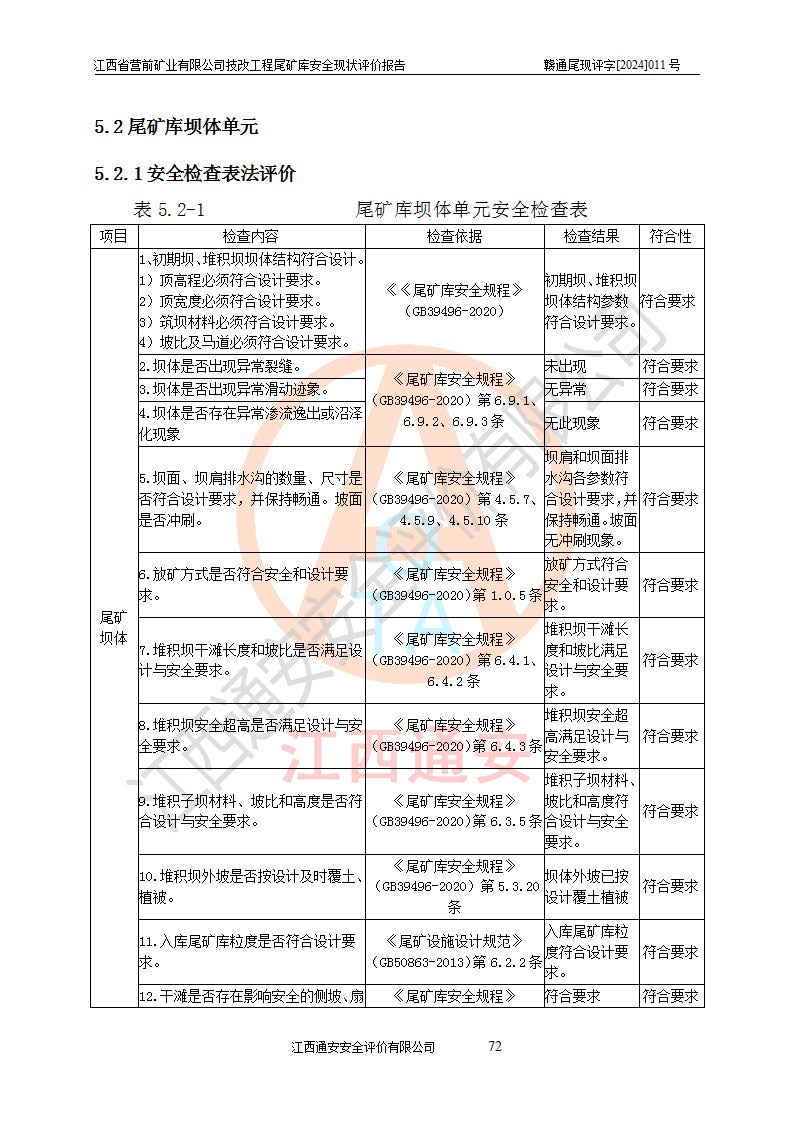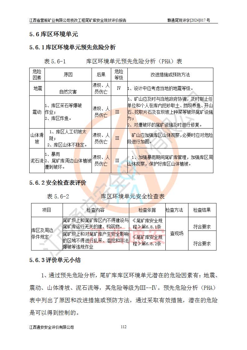 江西省營(yíng)前礦業(yè)有限公司于2003年12月16日成立,位于贛州市上猶縣營(yíng)前鎮(zhèn)焦里村境內(nèi),公司注冊(cè)資本10000萬(wàn)元,法定**人陳雅博,礦區(qū)地理坐標(biāo):東經(jīng)114°18′30″~114°19′00″,北緯25°52′35″~25°53′47″。公司經(jīng)營(yíng)范圍包括:鉛礦、鋅、鎢、銀地下開(kāi)采、銷(xiāo)售。 江西省營(yíng)前礦業(yè)有限公司技改工程尾礦庫(kù)位于焦里鎢銀鉛鋅礦區(qū),處于上猶縣水巖鄉(xiāng)井子村坑尾自然村境內(nèi),山谷型尾礦庫(kù),溝谷呈“V”字形展布,技改工程尾礦庫(kù)原由福建省冶金工業(yè)設(shè)計(jì)院設(shè)計(jì),后由金建工程設(shè)計(jì)有限公司對(duì)該尾礦庫(kù)進(jìn)行了加高擴(kuò)容設(shè)計(jì),加高擴(kuò)容后總庫(kù)容503.14萬(wàn)m3,壩高75.0m,為三等庫(kù)。尾礦庫(kù)主要由尾礦壩、庫(kù)外分洪系統(tǒng)(1#攔洪壩--1#分洪隧洞和2#攔洪壩--2#分洪隧洞--排水陡槽--消力池),庫(kù)內(nèi)排洪排水系統(tǒng)(排水斜槽—連接井—排水涵洞—排水隧洞—排水陡槽—消力池)等組成,尾礦壩壩型為初期壩+上游式堆積壩。 江西省營(yíng)前礦業(yè)有限公司技改工程尾礦庫(kù)于2021年12月30日取得江西省應(yīng)急管理廳版發(fā)的安全生產(chǎn)許可證,證書(shū)編號(hào)(贛)FM安許證字(2016)M1692號(hào),有限期從2022年1月18日到2025年1月17日,為三年期。依照《非煤礦礦山企業(yè)安全生產(chǎn)許可證延期換證工作》的通知,根據(jù)***《安全生產(chǎn)許可證條例》、《江西省安全生產(chǎn)條例》、《非煤礦山安全生產(chǎn)許可證實(shí)施辦法》、《江西省非煤礦礦山企業(yè)安全生產(chǎn)許可證辦法》規(guī)定的要求,受江西省營(yíng)前礦業(yè)有限公司委托,我公司承擔(dān)了技改工程尾礦庫(kù)延期換證安全現(xiàn)狀評(píng)價(jià)工作。 |
