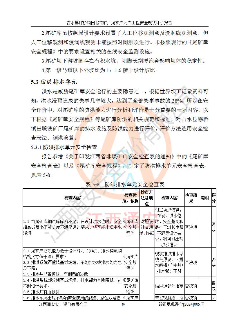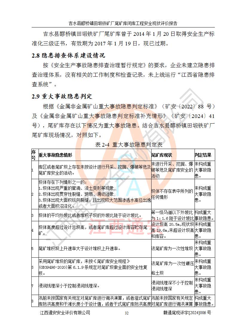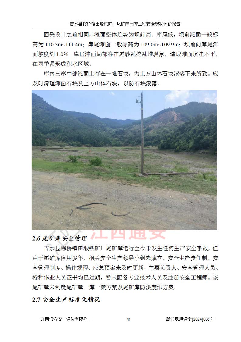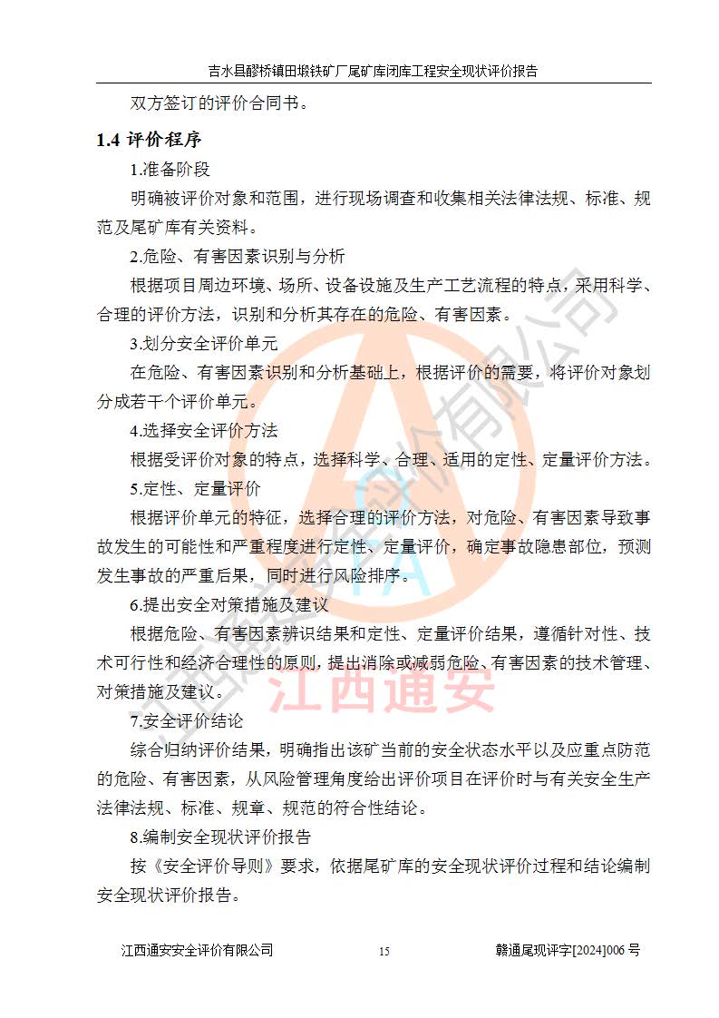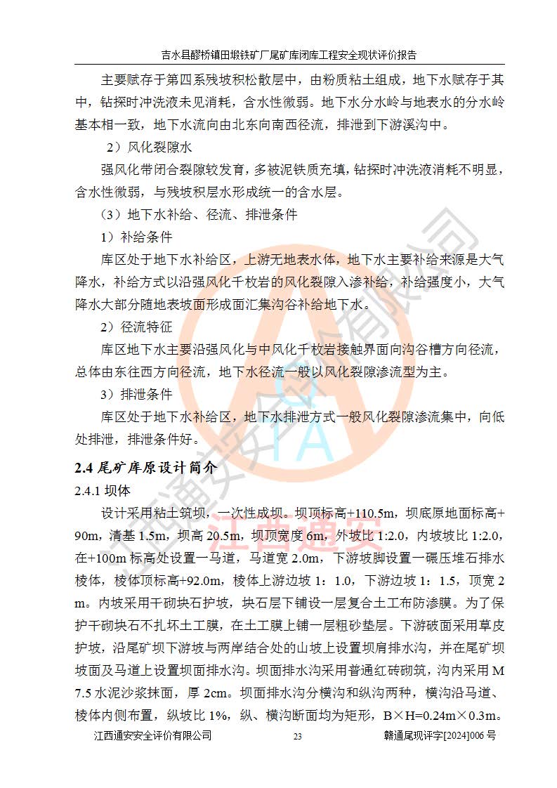 報(bào)告名稱 | 吉水縣醪橋鎮(zhèn)田塅鐵礦廠尾礦庫閉庫工程安全現(xiàn)狀評(píng)價(jià)報(bào)告 | ||||||