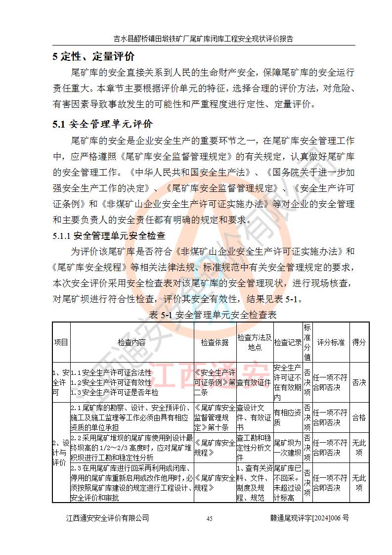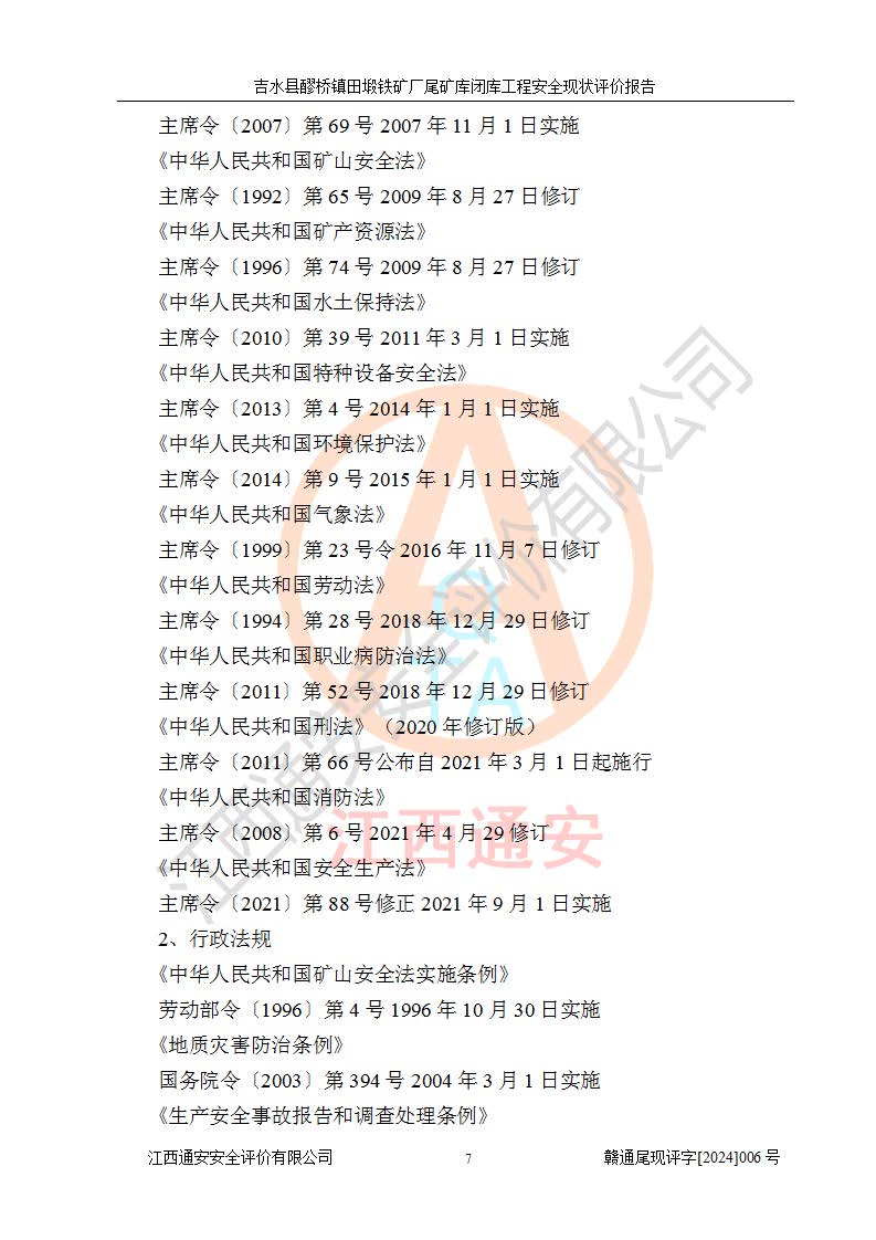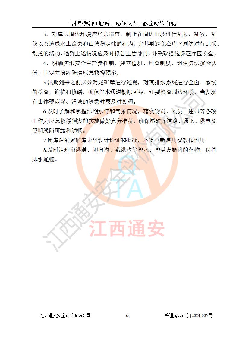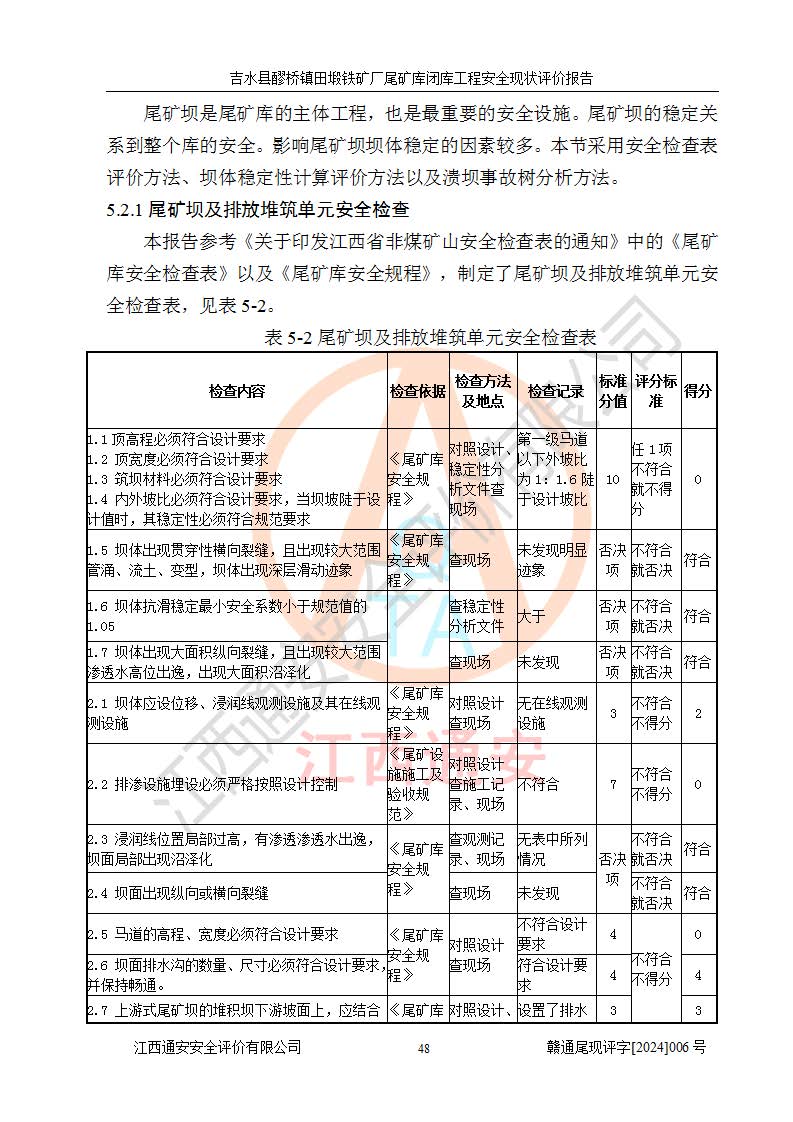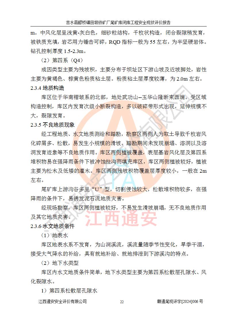 報(bào)告名稱 | 吉水縣醪橋鎮(zhèn)田塅鐵礦廠尾礦庫閉庫工程安全現(xiàn)狀評(píng)價(jià)報(bào)告 | ||||||