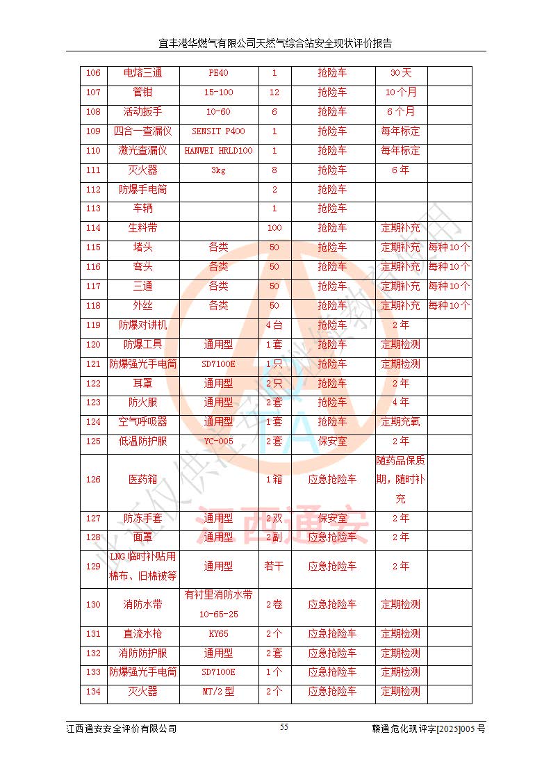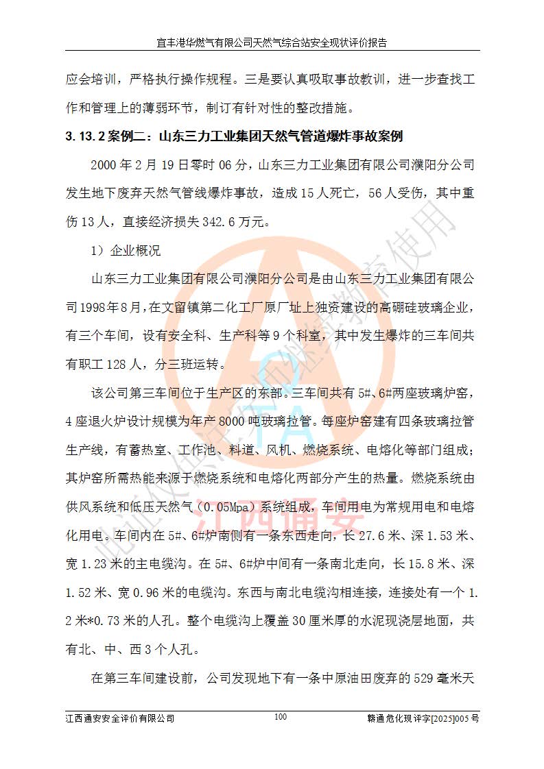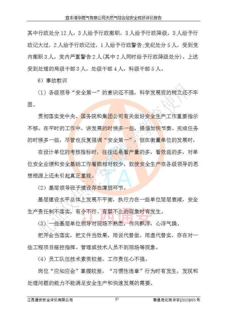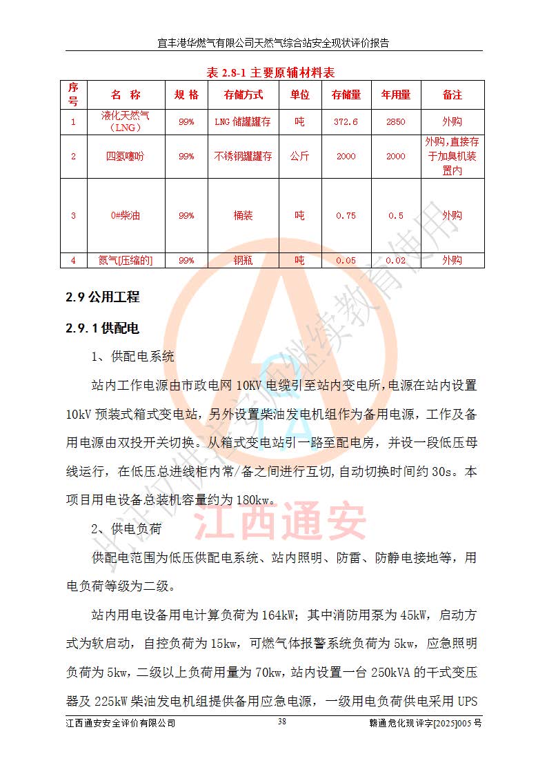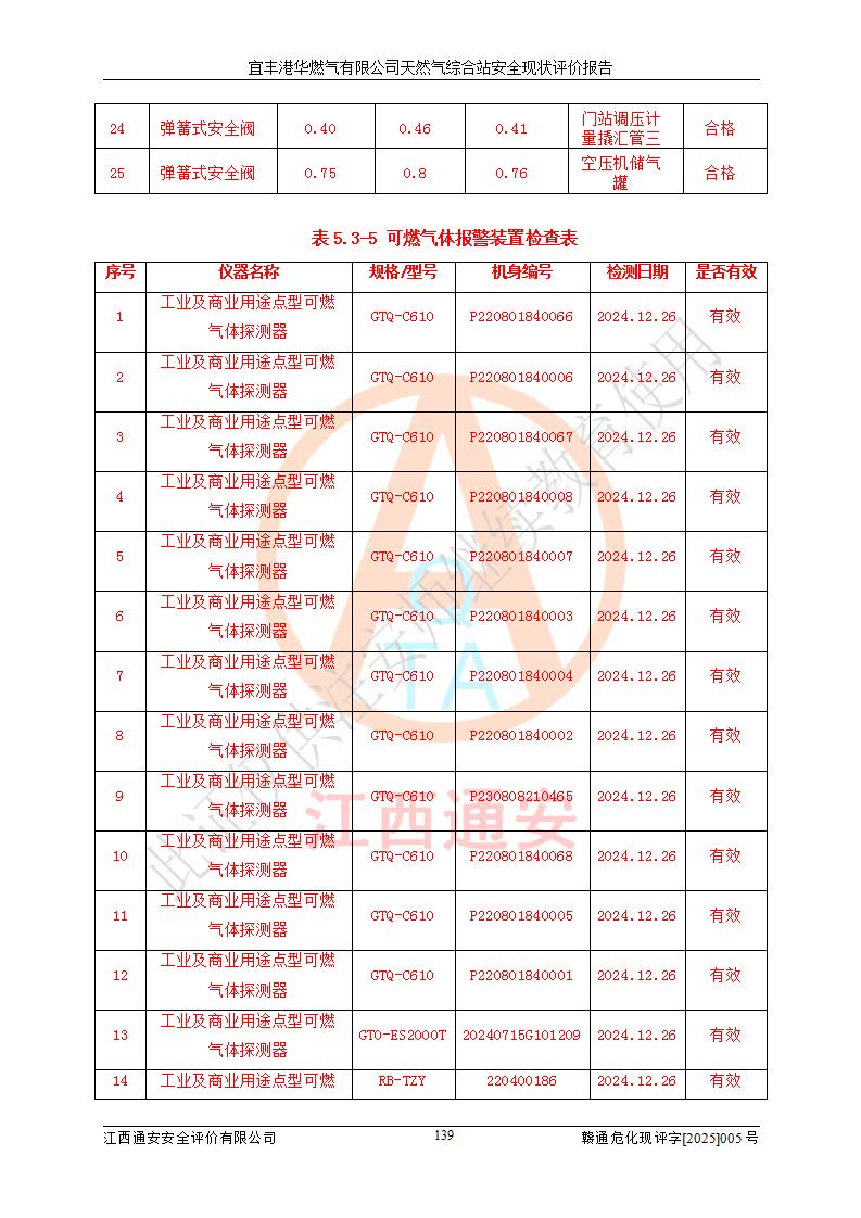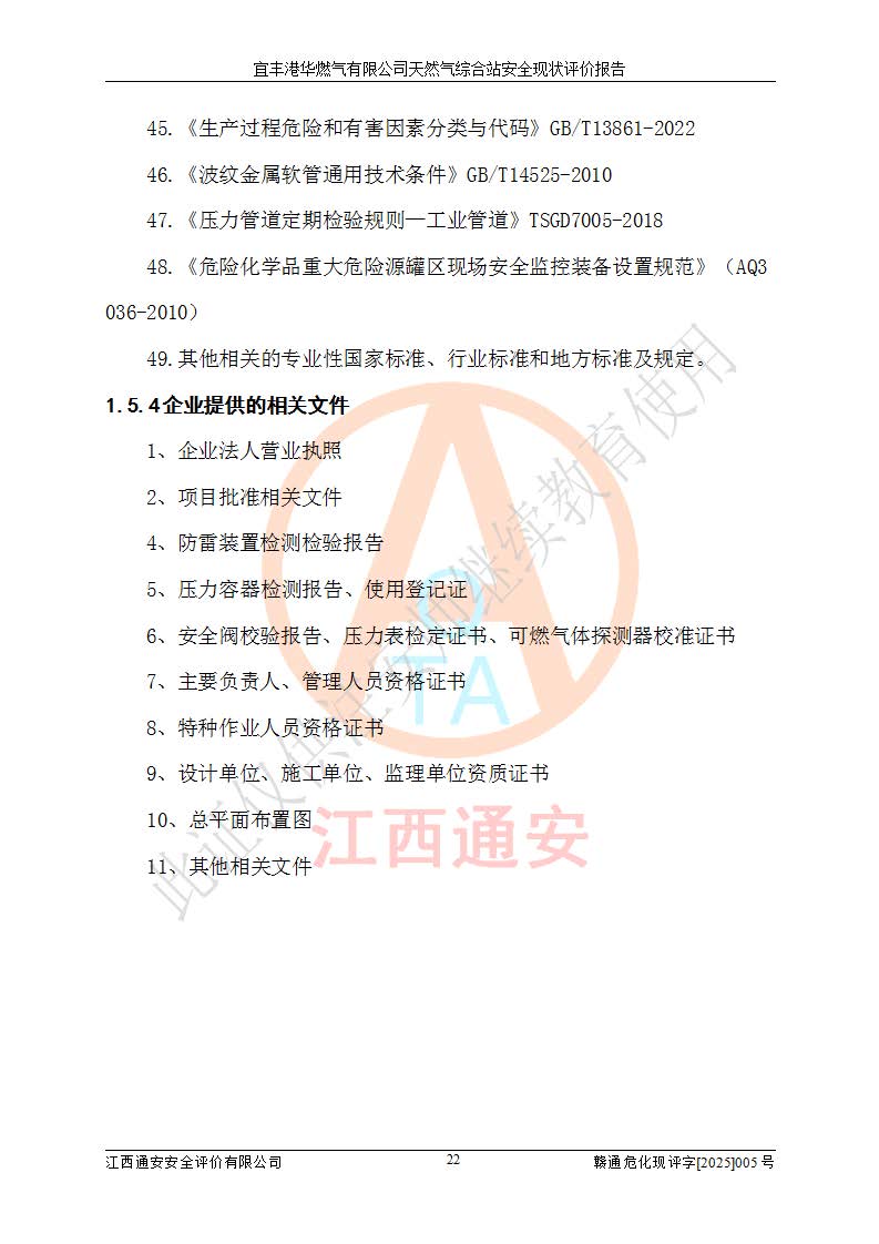 1、主要危險、危害因素辨識結(jié)果 宜豐港華燃氣有限公司天然氣綜合站在生產(chǎn)經(jīng)營過程中存在的主要危險有:火災(zāi)與爆炸、中毒窒息、觸電、機械傷害、物體打擊、**傷害、高處墜落、灼燙、低溫凍傷、容器爆炸、淹溺等,存在的主要危害因素有:化學(xué)因素、物理因素(噪聲、高溫等)等,同時存在人為失誤和管理缺陷。應(yīng)重點防范的主要危險為火災(zāi)與爆炸、容器爆炸。 2、危險化學(xué)品辨識結(jié)果 經(jīng)辨識,該儲配站涉及的天然氣、四氫噻吩及柴油屬于危險化學(xué)品,天然氣屬于重點監(jiān)管的危險化學(xué)品和特別管控危險化學(xué)品,不涉及監(jiān)控化學(xué)品、易制毒化學(xué)品、易制爆危險化學(xué)品、劇毒化學(xué)品和高毒物品等危險化學(xué)品。 3、危險化學(xué)品重大危險源辨識結(jié)果 根據(jù)《危險化學(xué)品重大危險源辨識》(GB18218-2018)和《危險化學(xué)品重大危險源監(jiān)督管理暫行規(guī)定》(2011)(40號令)(2015年 **安監(jiān)總局令第79號修訂)得出結(jié)論如下:該公司LNG儲罐區(qū)構(gòu)成三級重大危險源,其余生產(chǎn)單元及儲存單元不構(gòu)成危險化學(xué)品重大危險源。 4、重點監(jiān)管危險化工工藝辨識結(jié)果 根據(jù)《**安全監(jiān)管總局關(guān)于公布首批重點監(jiān)管的危險化學(xué)品名錄的通知》安監(jiān)總管三[2011]95號、《**安全監(jiān)管總局關(guān)于公布第二批重點監(jiān)管危險化學(xué)品名錄的通知》安監(jiān)總管三[2013]12號進行辨識,該天然氣儲配站不涉及重點監(jiān)管的危險化工工藝。 5、作業(yè)條件危險性分析結(jié)果: 液化天然氣的儲罐區(qū)、調(diào)壓計量氣化加臭區(qū)、卸車區(qū)、變配電、廠內(nèi)運輸、消防水池作業(yè)等單元。等單元危險程度均為“一般危險,需要注意”或“稍有危險,可以接受”級別。作業(yè)條件相對安全。 6、危險度評價結(jié)果:工藝裝置區(qū)等級為Ⅱ級,危險程度為中度危險。LNG儲罐區(qū)等級為Ⅰ級,危險程度為**危險。 7、事故后果預(yù)測結(jié)果:本報告采用中國安全生產(chǎn)科學(xué)研究院研發(fā)的重大危險源區(qū)域定量風(fēng)險評價(CASST-QRA)軟件對可能發(fā)生的危險化學(xué)品事故進行預(yù)測,宜豐港華燃氣有限公司天然氣綜合站LNG儲罐容器整體破裂,發(fā)生BLEVE災(zāi)害模式后果*大,*大死亡半徑為181m,重傷半徑為243m,輕傷半徑為448m。 8、多米諾效應(yīng)分析結(jié)果:該公司LNG儲罐發(fā)生容器整體破裂引發(fā)的BLEVE事故的多米諾半徑*大,為141m。 9、采用安全檢查表評價法對該儲配站周邊環(huán)境、總平面布置、站內(nèi)建構(gòu)筑物防火間距、站內(nèi)交通、LNG卸車、儲罐、氣化裝置、加臭裝置、調(diào)壓裝置、安全附件、工藝設(shè)備、管道、自動化控制等供配電、給排水、消防設(shè)施、供熱裝置、安全管理、“兩重點一重大”安全措施及安全管理進行定性評價,不符合項共2項,其他均符合**法律、法規(guī)、標準、規(guī)范的要求。 (1)企業(yè)對不符合項整改完成后,安全條件符合燃氣儲存經(jīng)營的安全要求。 (2)該儲配站涉及“兩重點一重大”,采取了首批重點監(jiān)管的危險化學(xué)品安全措施和應(yīng)急處置措施,站內(nèi)LNG罐區(qū)構(gòu)成三級重大危險源,采取的重大危險源安全技術(shù)和監(jiān)控措施符合相關(guān)要求。 (3)根據(jù)《燃氣經(jīng)營許可管理辦法》(建城〔2014〕167號發(fā)布,建城規(guī)〔2019〕2號修改)制成安全檢查表對該單位的經(jīng)營條件逐一檢查,檢查結(jié)果符合要求。 (4)根據(jù)《住房城鄉(xiāng)建設(shè)部關(guān)于印發(fā)《城鎮(zhèn)燃氣經(jīng)營安全重大隱患判定標準》的通知》(建城規(guī)[2023]4號)要求,對該項目重大隱患情況進行檢查,該站LNG罐完成整改后不涉及重大隱患。 評價結(jié)論 綜上所述,宜豐港華燃氣有限公司天然氣綜合站選址和總平面布置合理,建構(gòu)筑物間的防火間距、耐火等級等符合標準規(guī)范的要求,LNG卸車、儲存、加臭、氣化調(diào)壓計量等裝置采用成熟的工藝和設(shè)備,本質(zhì)安全程度較高;公司制定了安全管理制度和操作規(guī)程,人員經(jīng)培訓(xùn)合格后上崗,主要負責(zé)人、安全管理人員及特種作業(yè)人員均取得了相應(yīng)的考核合格資格證書,能按照法律法規(guī)要求開展安全生產(chǎn)管理工作。公司對現(xiàn)場存在事故危險的設(shè)施和場所采取了合理可行的防護措施和科學(xué)的管理,使生產(chǎn)過程中的危險有害因素能得到**控制。該項目安全設(shè)施符合**現(xiàn)行有關(guān)法律、法規(guī)、標準的要求。企業(yè)對現(xiàn)場存在的安全問題進行了整改,主要的安全缺陷消除。 綜合結(jié)論:宜豐港華燃氣有限公司天然氣綜合站的安全條件符合燃氣安全運行要求。 |