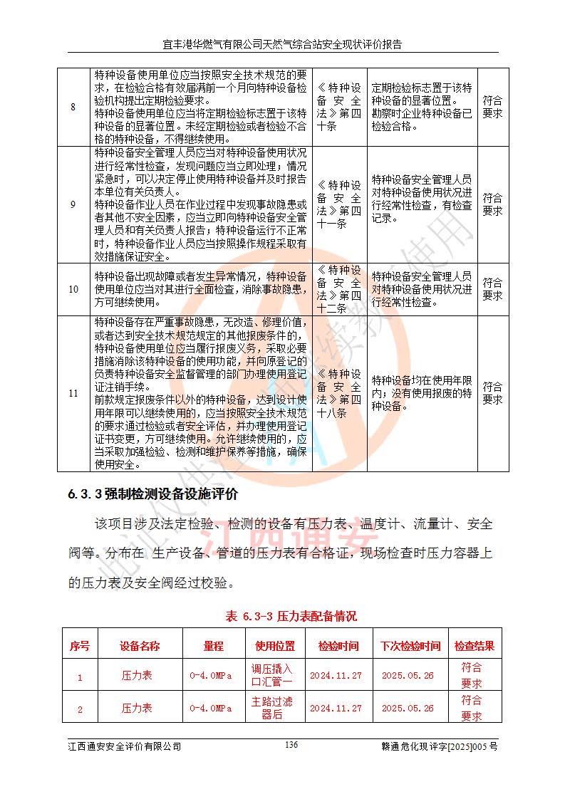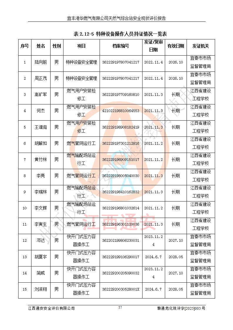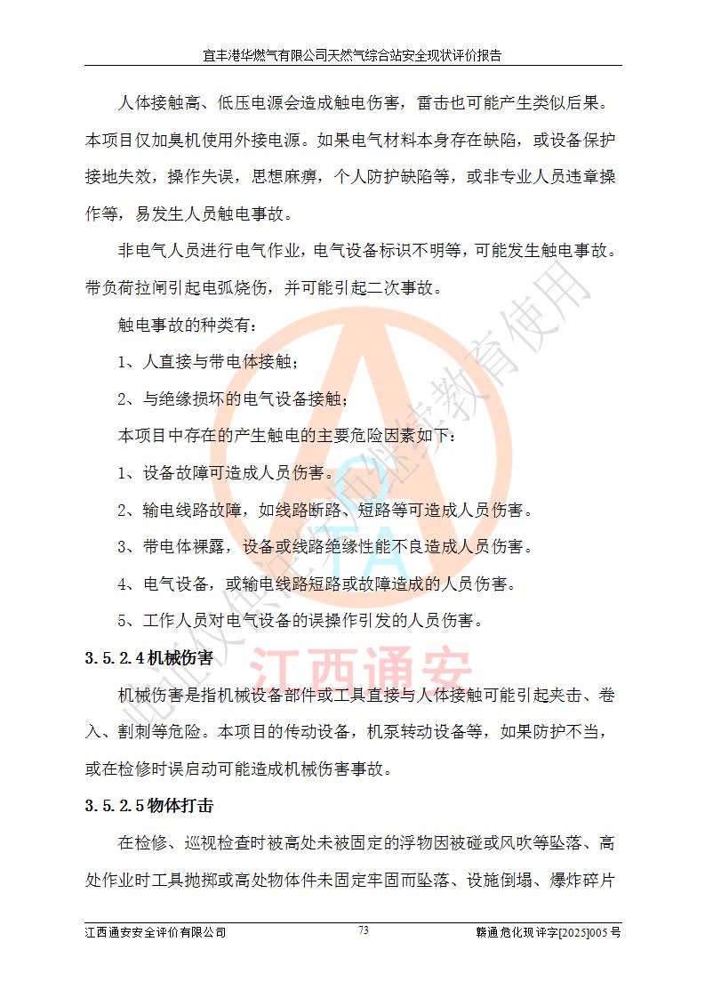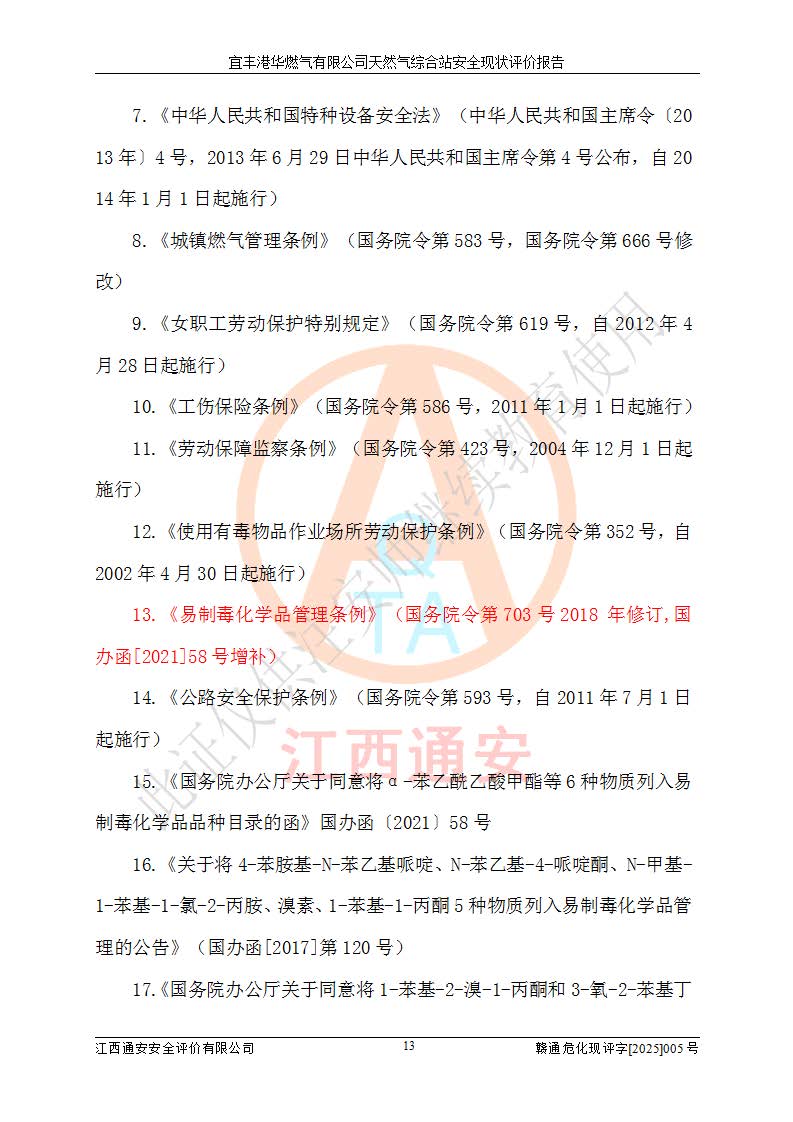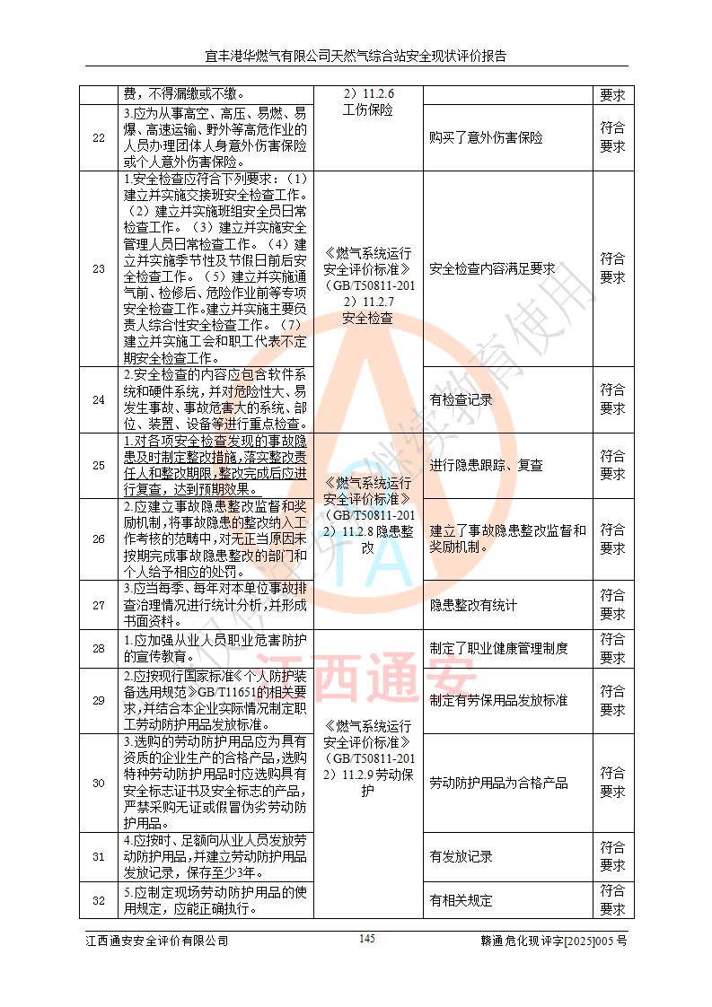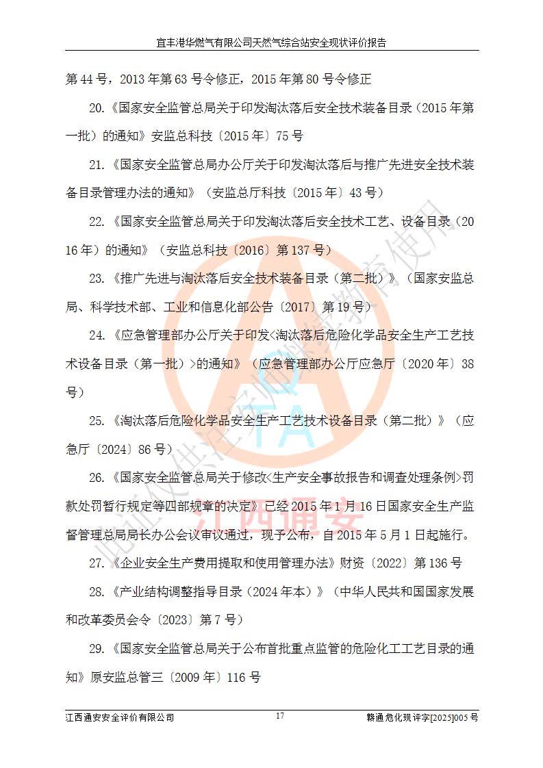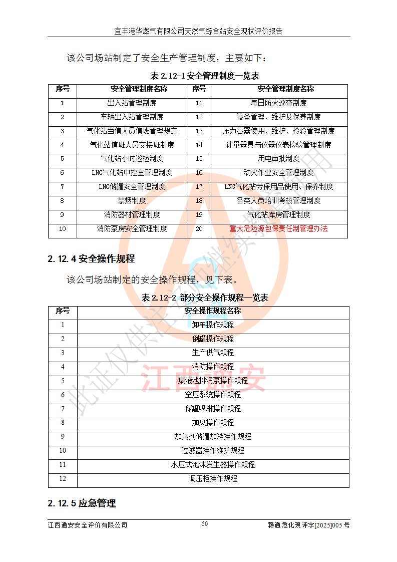 1、主要危險、危害因素辨識結(jié)果 宜豐港華燃氣有限公司天然氣綜合站在生產(chǎn)經(jīng)營過程中存在的主要危險有:火災(zāi)與爆炸、中毒窒息、觸電、機械傷害、物體打擊、**傷害、高處墜落、灼燙、低溫凍傷、容器爆炸、淹溺等,存在的主要危害因素有:化學(xué)因素、物理因素(噪聲、高溫等)等,同時存在人為失誤和管理缺陷。應(yīng)重點防范的主要危險為火災(zāi)與爆炸、容器爆炸。 2、危險化學(xué)品辨識結(jié)果 經(jīng)辨識,該儲配站涉及的天然氣、四氫噻吩及柴油屬于危險化學(xué)品,天然氣屬于重點監(jiān)管的危險化學(xué)品和特別管控危險化學(xué)品,不涉及監(jiān)控化學(xué)品、易制毒化學(xué)品、易制爆危險化學(xué)品、劇毒化學(xué)品和高毒物品等危險化學(xué)品。 3、危險化學(xué)品重大危險源辨識結(jié)果 根據(jù)《危險化學(xué)品重大危險源辨識》(GB18218-2018)和《危險化學(xué)品重大危險源監(jiān)督管理暫行規(guī)定》(2011)(40號令)(2015年 **安監(jiān)總局令第79號修訂)得出結(jié)論如下:該公司LNG儲罐區(qū)構(gòu)成三級重大危險源,其余生產(chǎn)單元及儲存單元不構(gòu)成危險化學(xué)品重大危險源。 4、重點監(jiān)管危險化工工藝辨識結(jié)果 根據(jù)《**安全監(jiān)管總局關(guān)于公布首批重點監(jiān)管的危險化學(xué)品名錄的通知》安監(jiān)總管三[2011]95號、《**安全監(jiān)管總局關(guān)于公布第二批重點監(jiān)管危險化學(xué)品名錄的通知》安監(jiān)總管三[2013]12號進行辨識,該天然氣儲配站不涉及重點監(jiān)管的危險化工工藝。 5、作業(yè)條件危險性分析結(jié)果: 液化天然氣的儲罐區(qū)、調(diào)壓計量氣化加臭區(qū)、卸車區(qū)、變配電、廠內(nèi)運輸、消防水池作業(yè)等單元。等單元危險程度均為“一般危險,需要注意”或“稍有危險,可以接受”級別。作業(yè)條件相對安全。 6、危險度評價結(jié)果:工藝裝置區(qū)等級為Ⅱ級,危險程度為中度危險。LNG儲罐區(qū)等級為Ⅰ級,危險程度為**危險。 7、事故后果預(yù)測結(jié)果:本報告采用中國安全生產(chǎn)科學(xué)研究院研發(fā)的重大危險源區(qū)域定量風(fēng)險評價(CASST-QRA)軟件對可能發(fā)生的危險化學(xué)品事故進行預(yù)測,宜豐港華燃氣有限公司天然氣綜合站LNG儲罐容器整體破裂,發(fā)生BLEVE災(zāi)害模式后果*大,*大死亡半徑為181m,重傷半徑為243m,輕傷半徑為448m。 8、多米諾效應(yīng)分析結(jié)果:該公司LNG儲罐發(fā)生容器整體破裂引發(fā)的BLEVE事故的多米諾半徑*大,為141m。 9、采用安全檢查表評價法對該儲配站周邊環(huán)境、總平面布置、站內(nèi)建構(gòu)筑物防火間距、站內(nèi)交通、LNG卸車、儲罐、氣化裝置、加臭裝置、調(diào)壓裝置、安全附件、工藝設(shè)備、管道、自動化控制等供配電、給排水、消防設(shè)施、供熱裝置、安全管理、“兩重點一重大”安全措施及安全管理進行定性評價,不符合項共2項,其他均符合**法律、法規(guī)、標準、規(guī)范的要求。 (1)企業(yè)對不符合項整改完成后,安全條件符合燃氣儲存經(jīng)營的安全要求。 (2)該儲配站涉及“兩重點一重大”,采取了首批重點監(jiān)管的危險化學(xué)品安全措施和應(yīng)急處置措施,站內(nèi)LNG罐區(qū)構(gòu)成三級重大危險源,采取的重大危險源安全技術(shù)和監(jiān)控措施符合相關(guān)要求。 (3)根據(jù)《燃氣經(jīng)營許可管理辦法》(建城〔2014〕167號發(fā)布,建城規(guī)〔2019〕2號修改)制成安全檢查表對該單位的經(jīng)營條件逐一檢查,檢查結(jié)果符合要求。 (4)根據(jù)《住房城鄉(xiāng)建設(shè)部關(guān)于印發(fā)《城鎮(zhèn)燃氣經(jīng)營安全重大隱患判定標準》的通知》(建城規(guī)[2023]4號)要求,對該項目重大隱患情況進行檢查,該站LNG罐完成整改后不涉及重大隱患。 評價結(jié)論 綜上所述,宜豐港華燃氣有限公司天然氣綜合站選址和總平面布置合理,建構(gòu)筑物間的防火間距、耐火等級等符合標準規(guī)范的要求,LNG卸車、儲存、加臭、氣化調(diào)壓計量等裝置采用成熟的工藝和設(shè)備,本質(zhì)安全程度較高;公司制定了安全管理制度和操作規(guī)程,人員經(jīng)培訓(xùn)合格后上崗,主要負責(zé)人、安全管理人員及特種作業(yè)人員均取得了相應(yīng)的考核合格資格證書,能按照法律法規(guī)要求開展安全生產(chǎn)管理工作。公司對現(xiàn)場存在事故危險的設(shè)施和場所采取了合理可行的防護措施和科學(xué)的管理,使生產(chǎn)過程中的危險有害因素能得到**控制。該項目安全設(shè)施符合**現(xiàn)行有關(guān)法律、法規(guī)、標準的要求。企業(yè)對現(xiàn)場存在的安全問題進行了整改,主要的安全缺陷消除。 綜合結(jié)論:宜豐港華燃氣有限公司天然氣綜合站的安全條件符合燃氣安全運行要求。 |