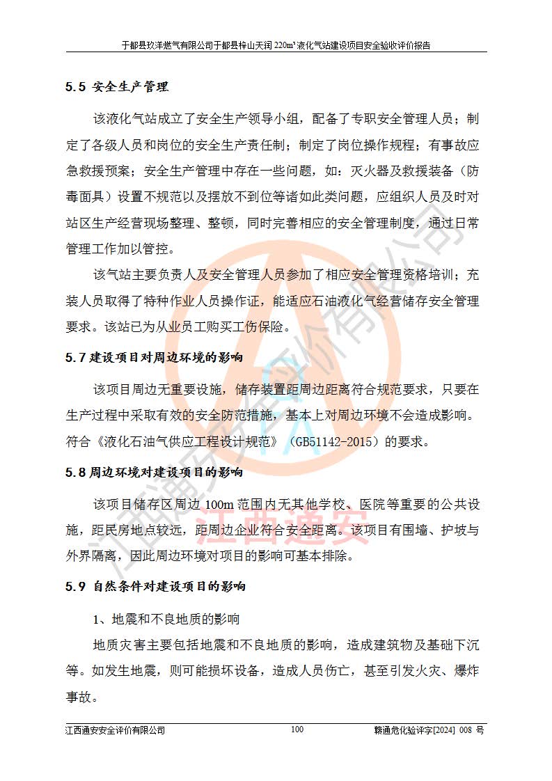 項(xiàng)目名稱 | 于都縣玖洋燃?xì)庥邢薰居诙伎h梓山天潤220m3液化氣站建設(shè)項(xiàng)目安全驗(yàn)收評價(jià)報(bào)告 | ||||