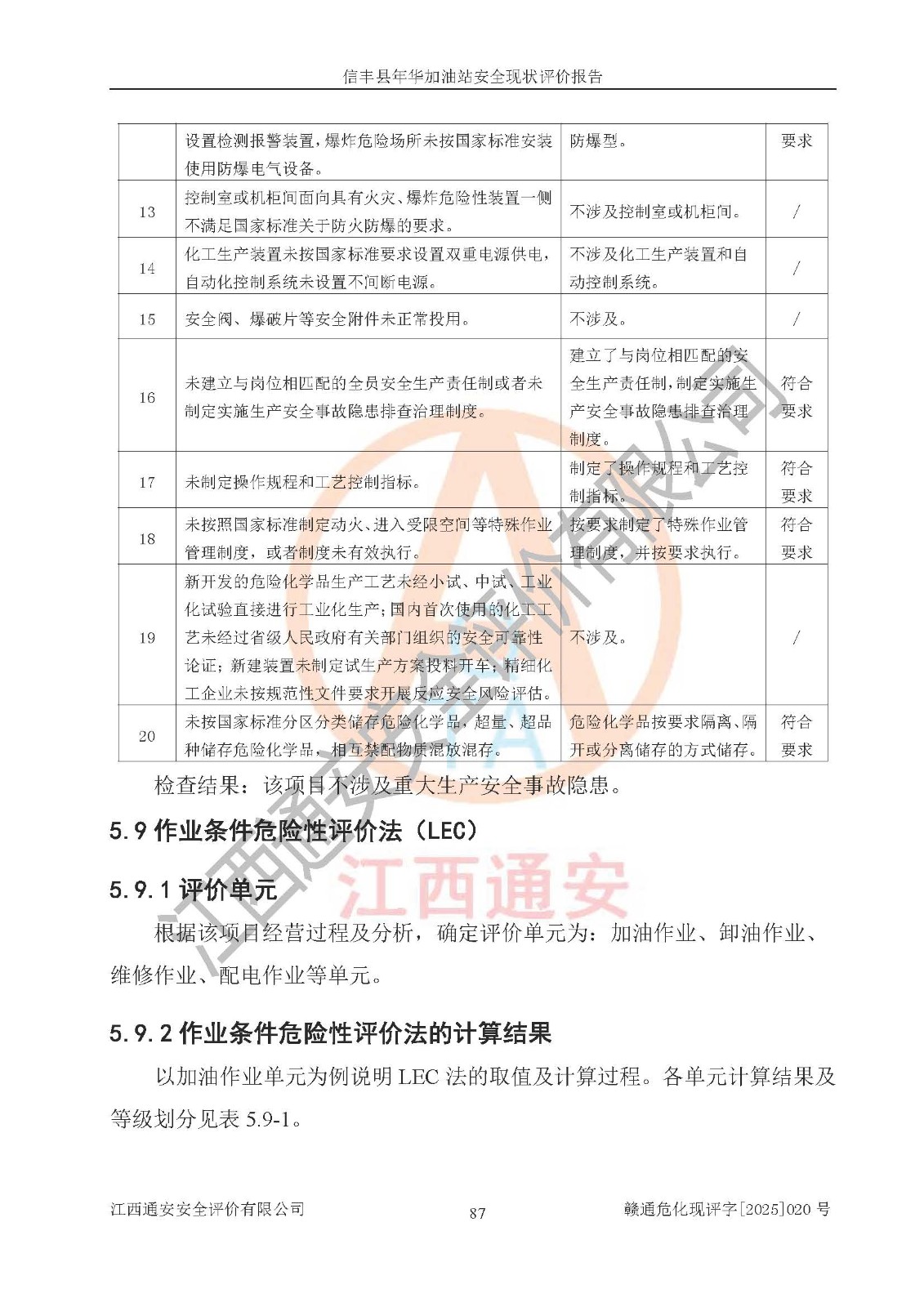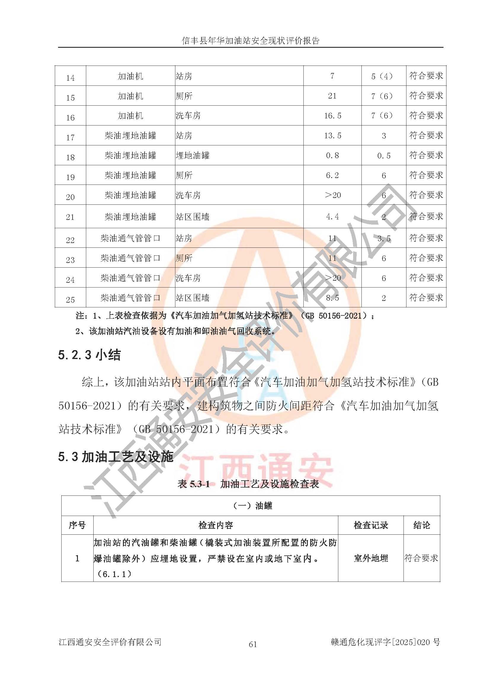 評(píng)價(jià)結(jié)論 | 信豐縣年華加油站安全現(xiàn)狀符合危險(xiǎn)化學(xué)品經(jīng)營(yíng)安全條件。 | |||