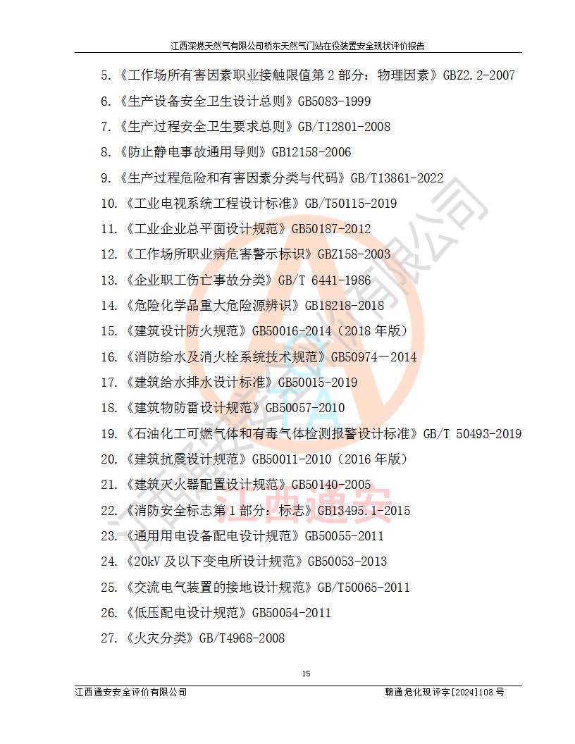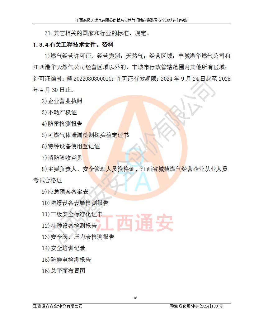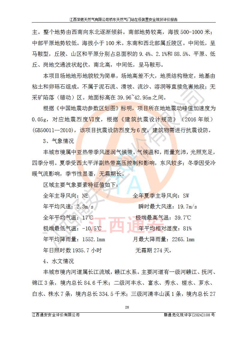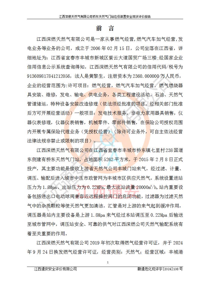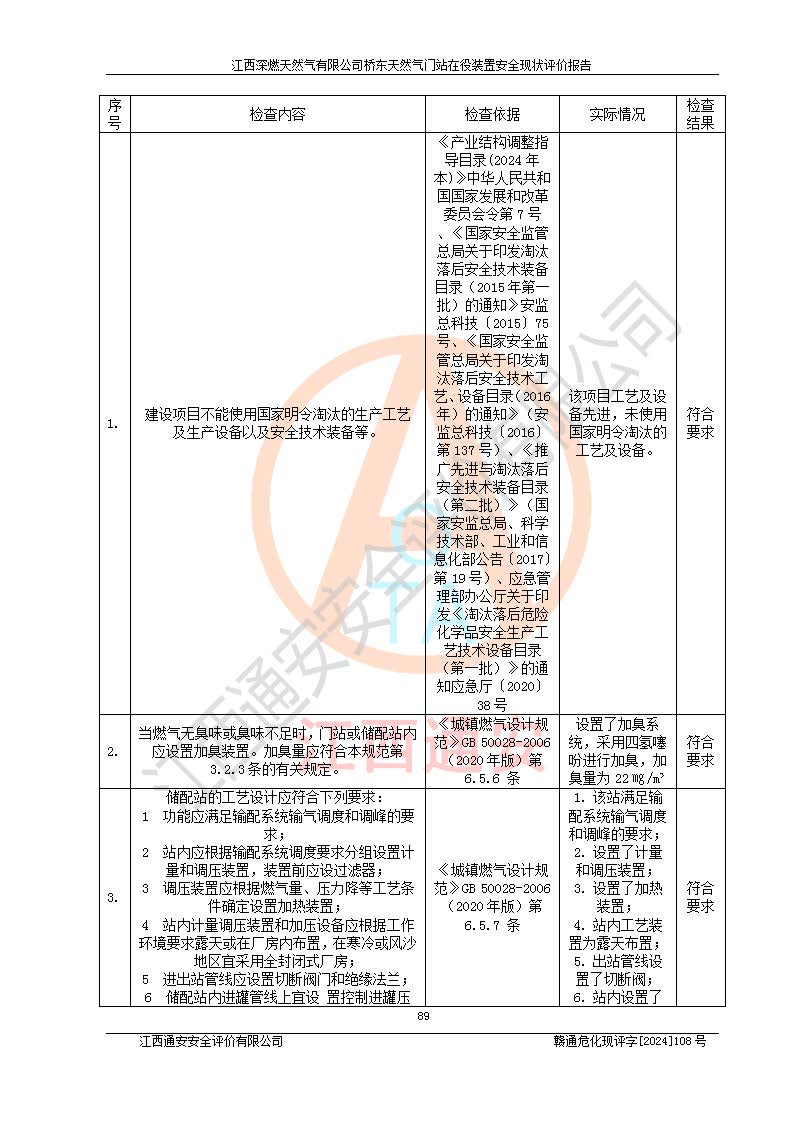 項(xiàng)目名稱(chēng) | 江西深燃天然氣有限公司橋東天然氣門(mén)站在役裝置安全現(xiàn)狀評(píng)價(jià)報(bào)告 | ||||