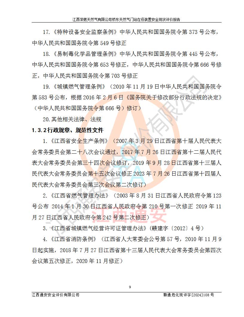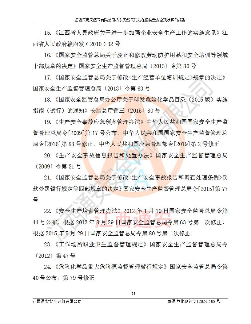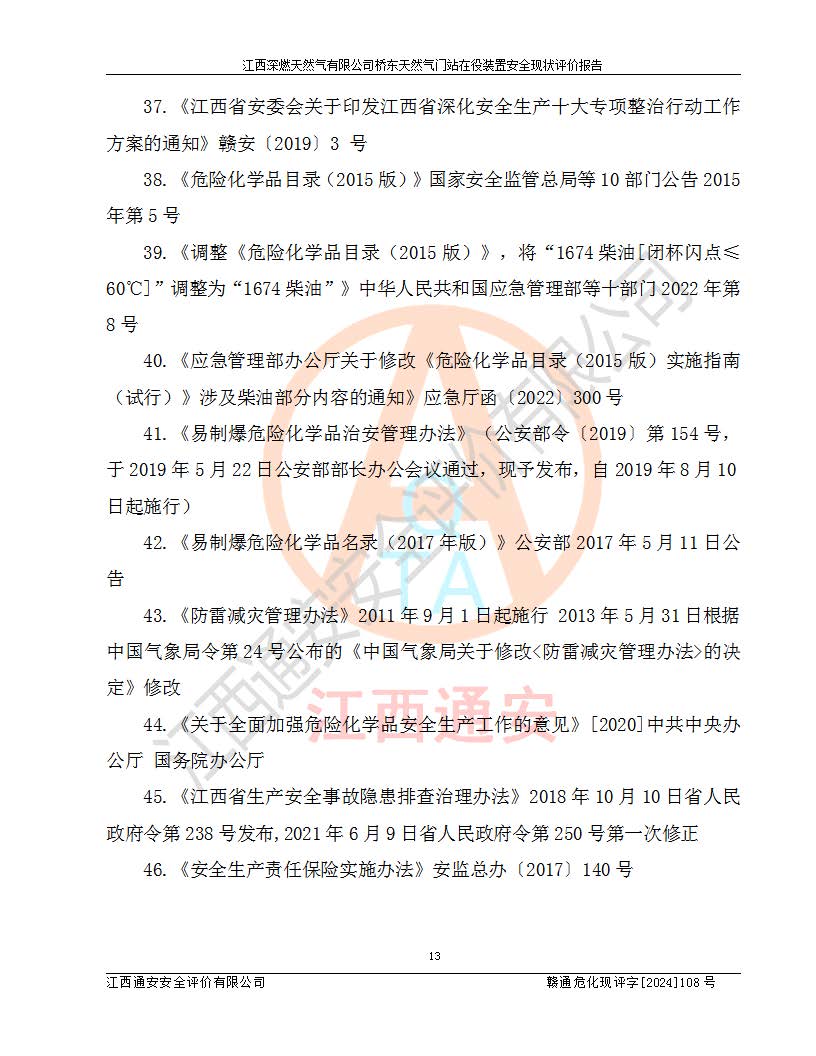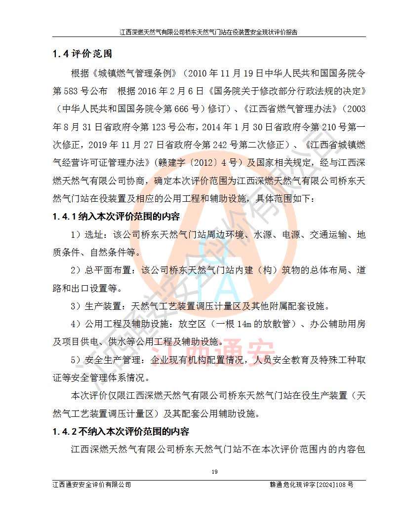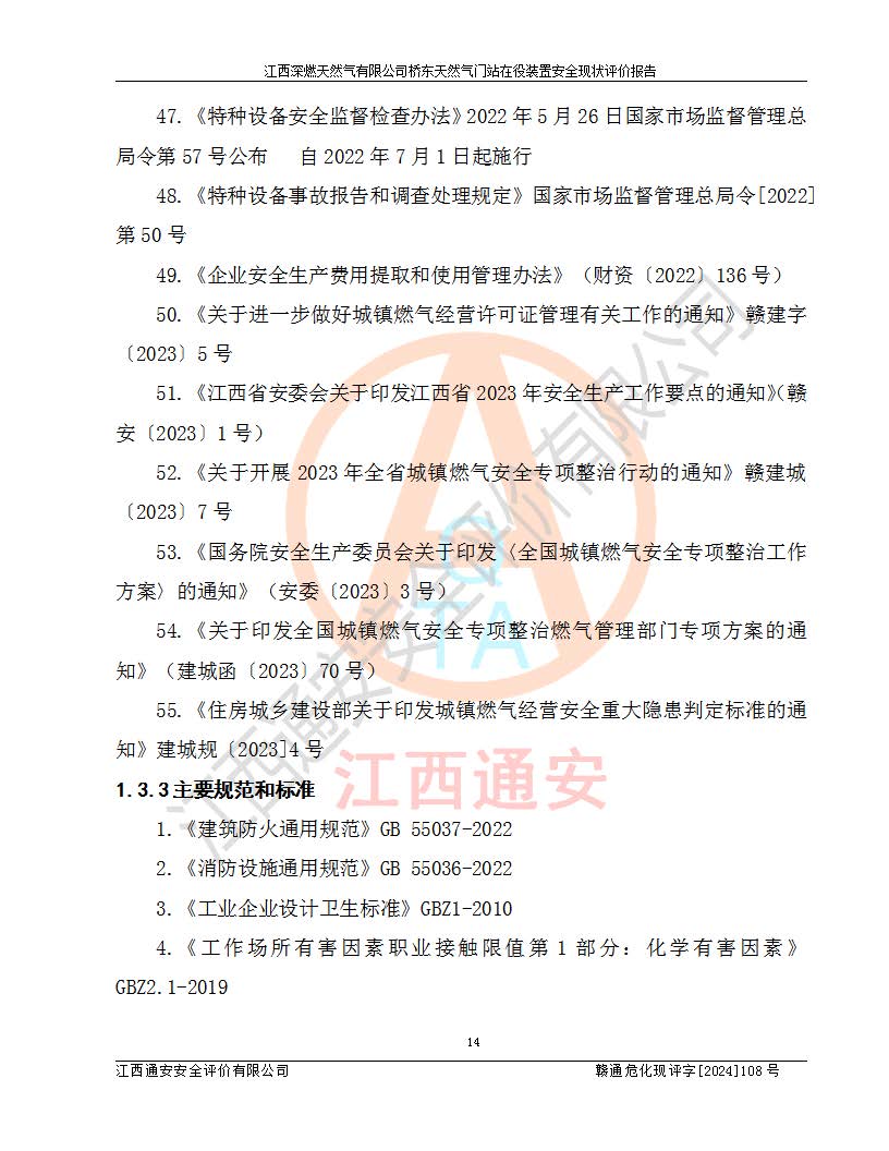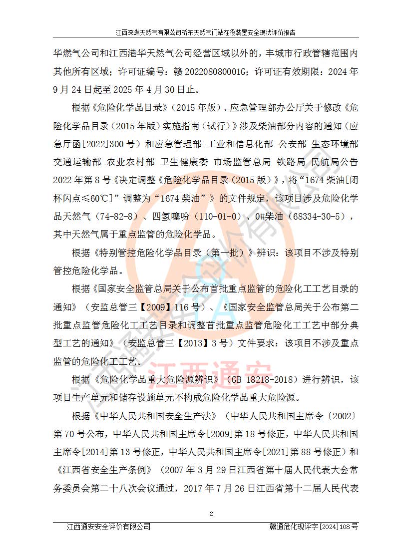 項(xiàng)目名稱(chēng) | 江西深燃天然氣有限公司橋東天然氣門(mén)站在役裝置安全現(xiàn)狀評(píng)價(jià)報(bào)告 | ||||