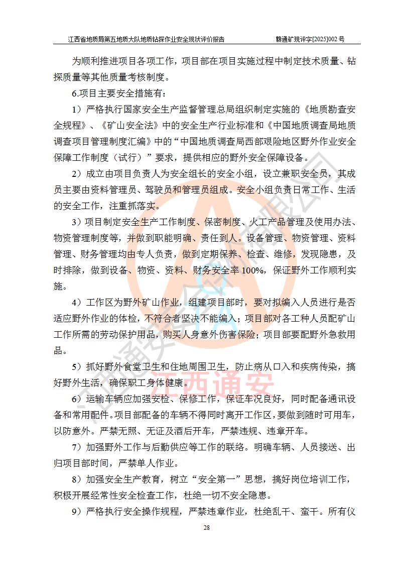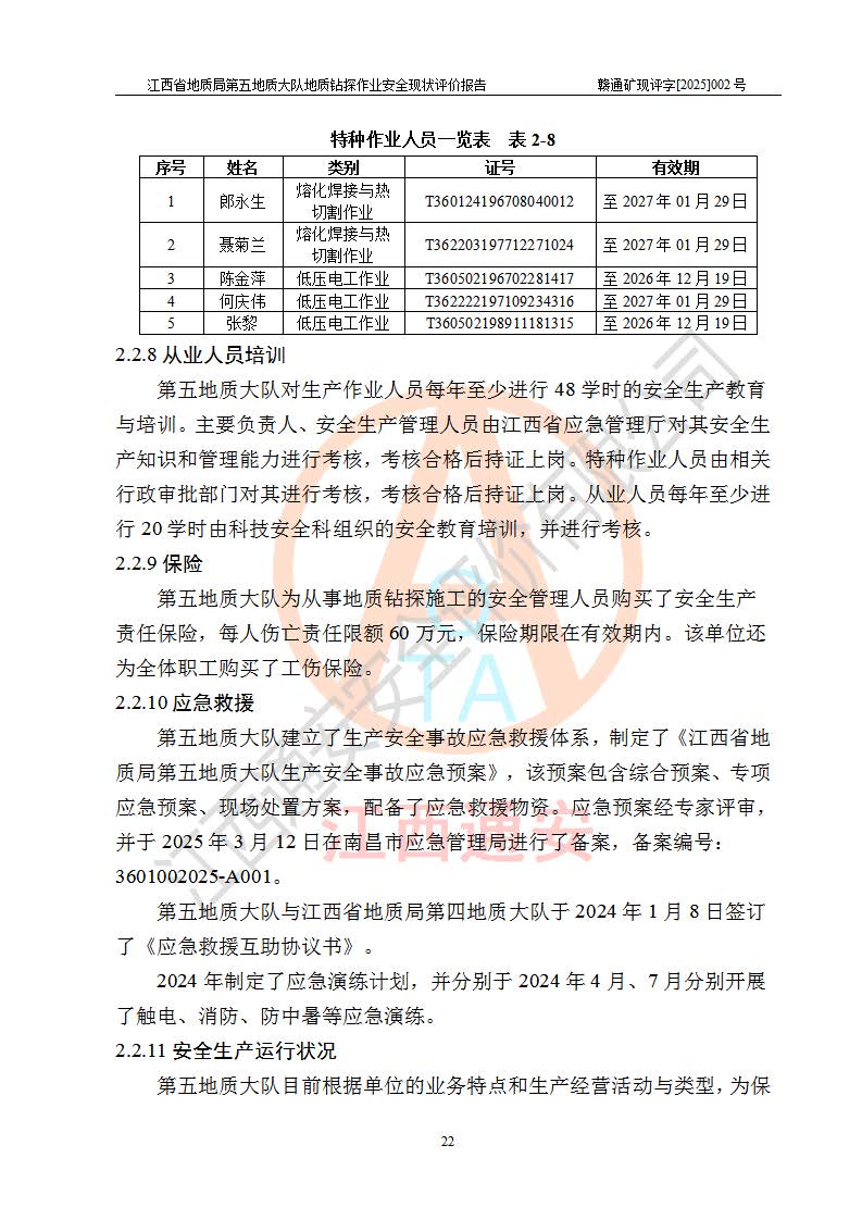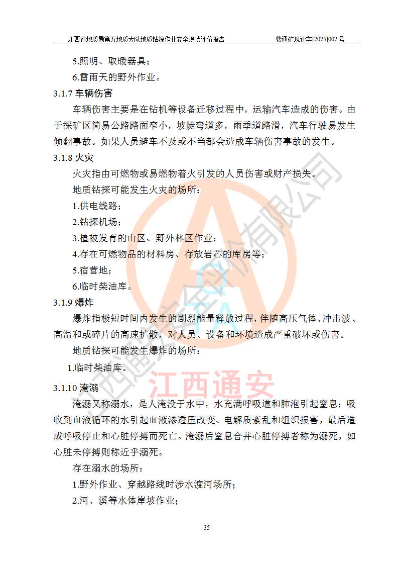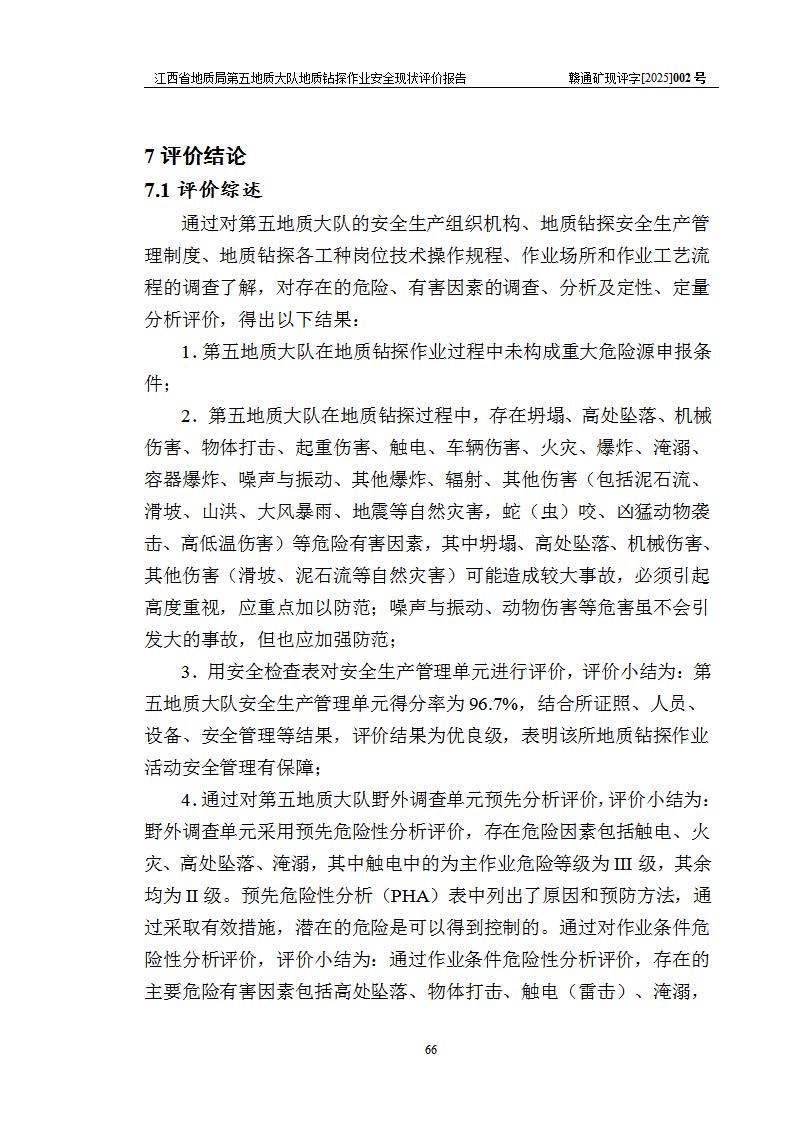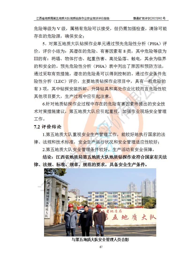 報(bào)告名稱 | 江西省地質(zhì)局第五地質(zhì)大隊(duì)地質(zhì)鉆探作業(yè)安全現(xiàn)狀評價(jià)報(bào)告 | |||||