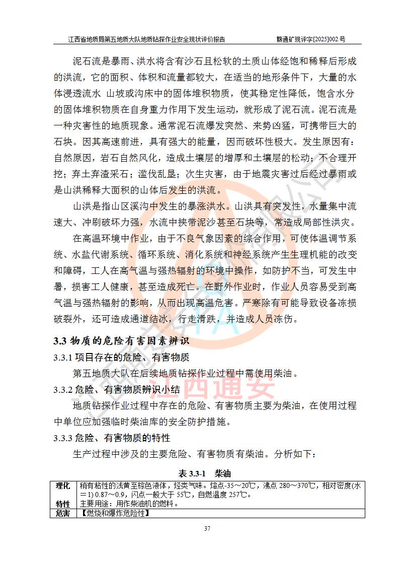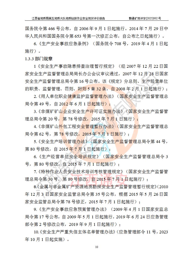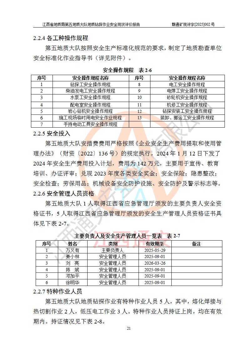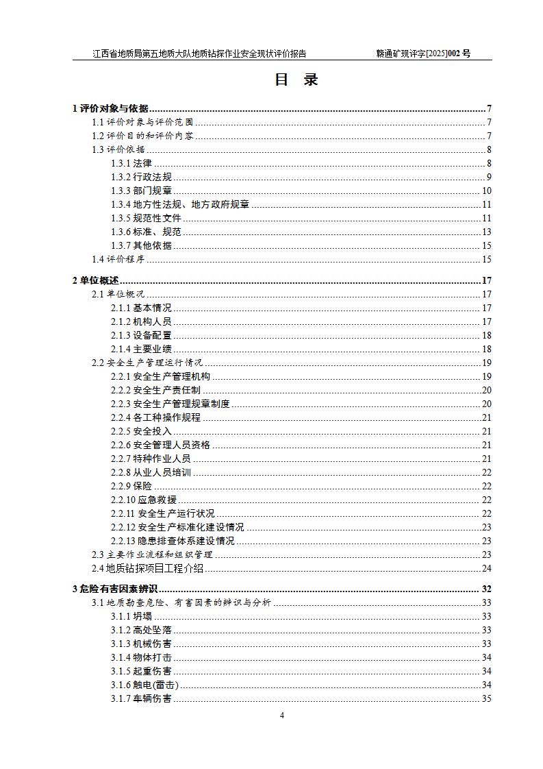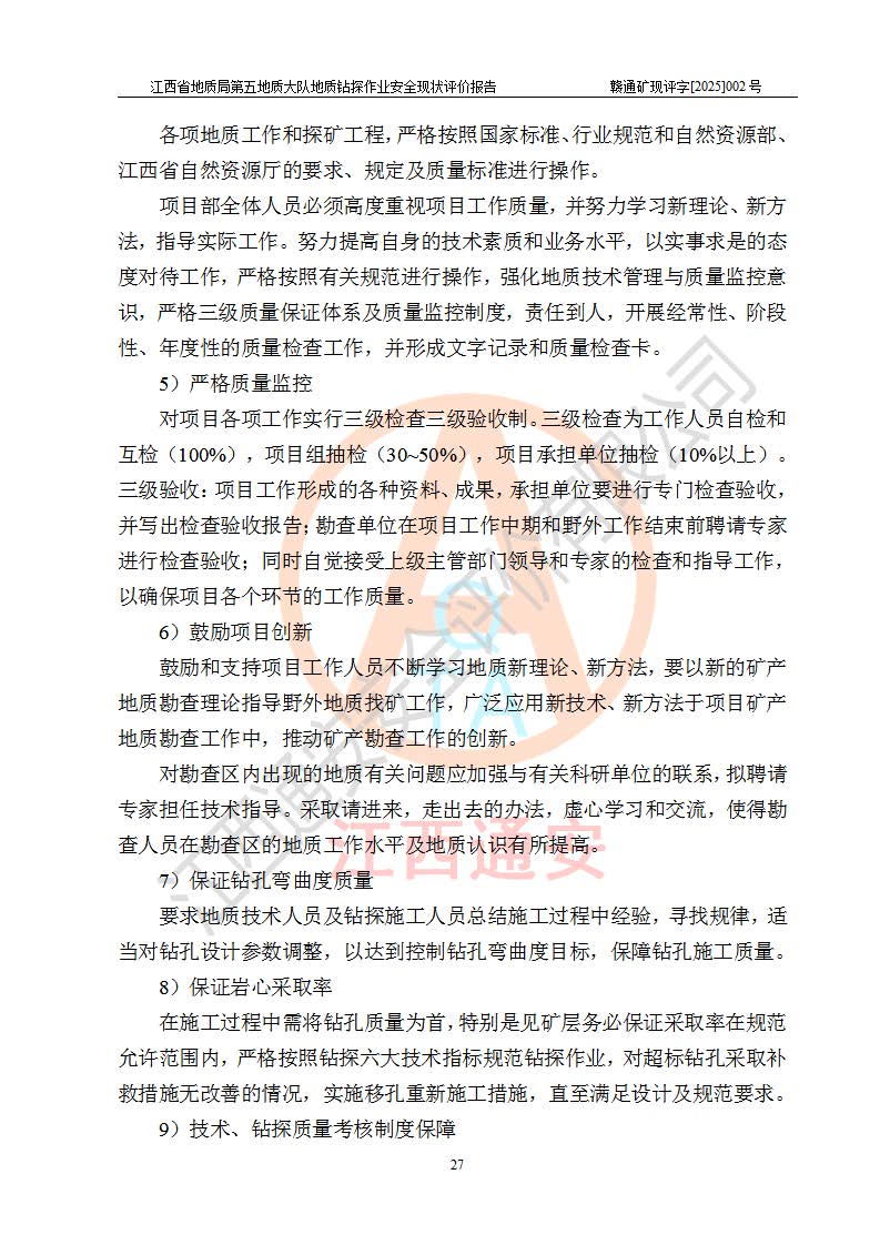 報(bào)告名稱 | 江西省地質(zhì)局第五地質(zhì)大隊(duì)地質(zhì)鉆探作業(yè)安全現(xiàn)狀評價(jià)報(bào)告 | |||||